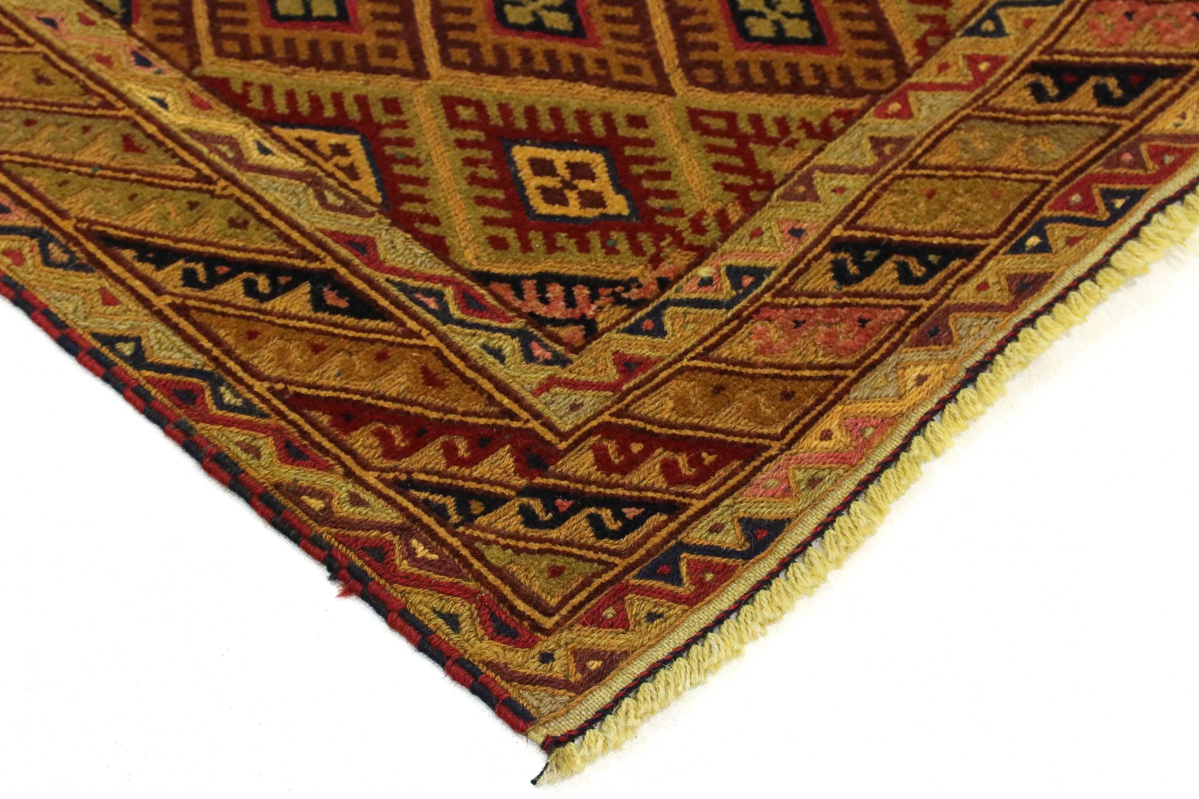 Deze handgeweven kilim Afghan is prachtig door de veelzijdige kleuren en het typische patroon. Het is handgeweven in Afghanistan van 100% schapenwol. Het is ongetwijfeld robuuster en duurzamer dan machinaal vervaardigde tapijten. Daarnaast heeft deze kelim een ​​heel eigen karakter. Een uniek stuk voor jou en je huis dat je nooit meer zult vinden.