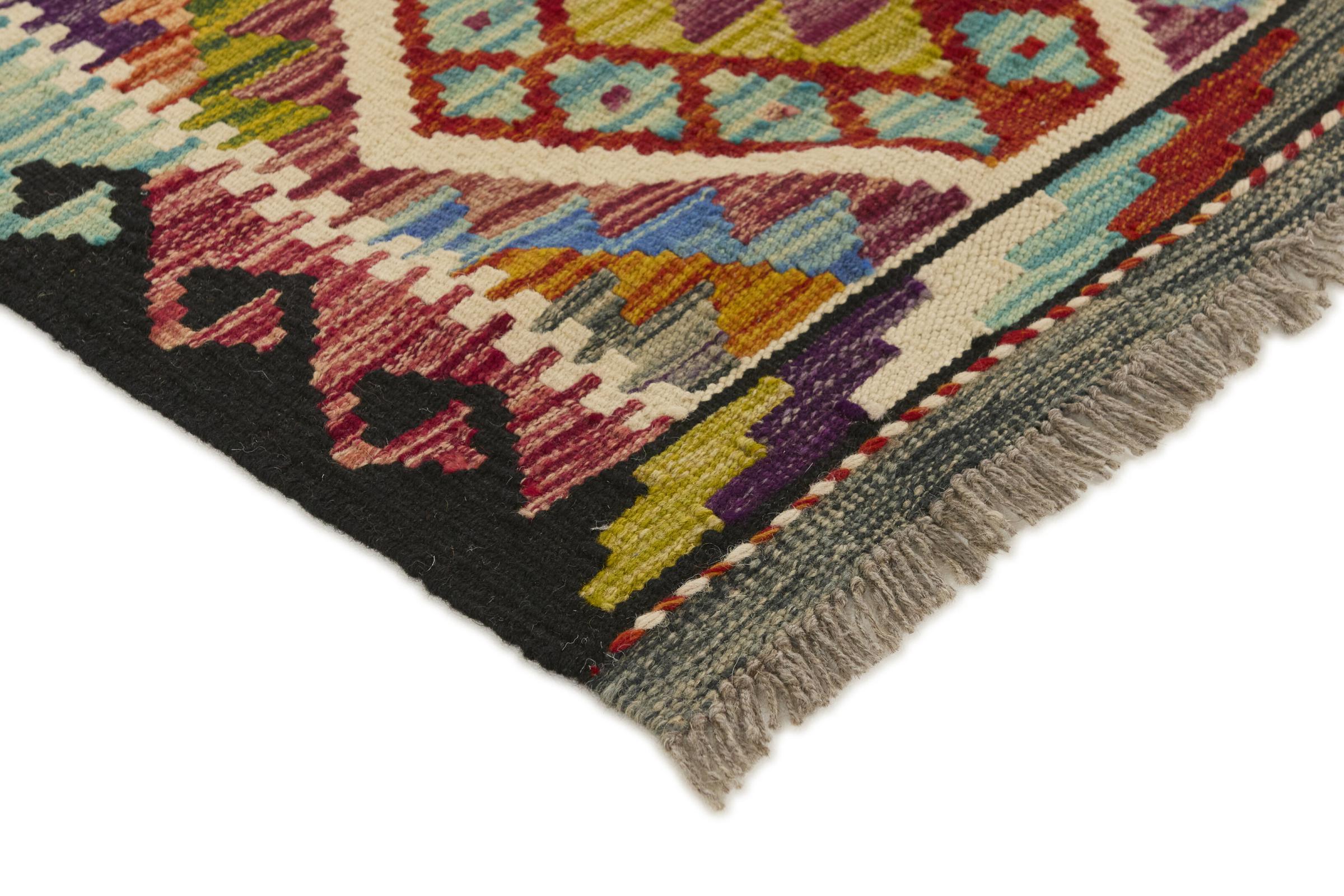 Deze handgeweven kilim Afghan is prachtig door de veelzijdige kleuren en het typische patroon. Het is handgeweven in Afghanistan van 100% schapenwol. Het is ongetwijfeld robuuster en duurzamer dan machinaal vervaardigde tapijten. Daarnaast heeft deze kelim een ​​heel eigen karakter. Een uniek stuk voor jou en je huis dat je nooit meer zult vinden.