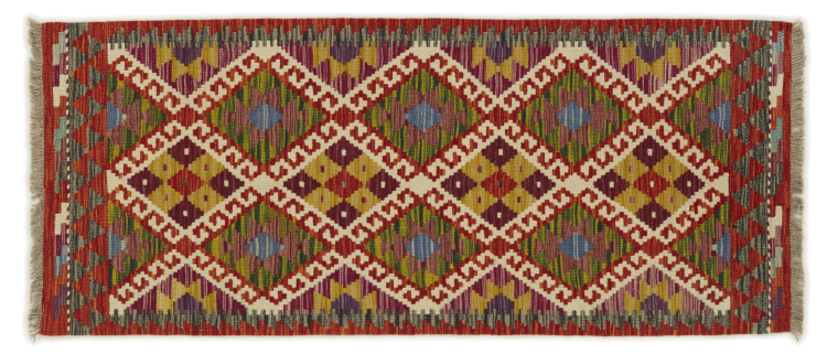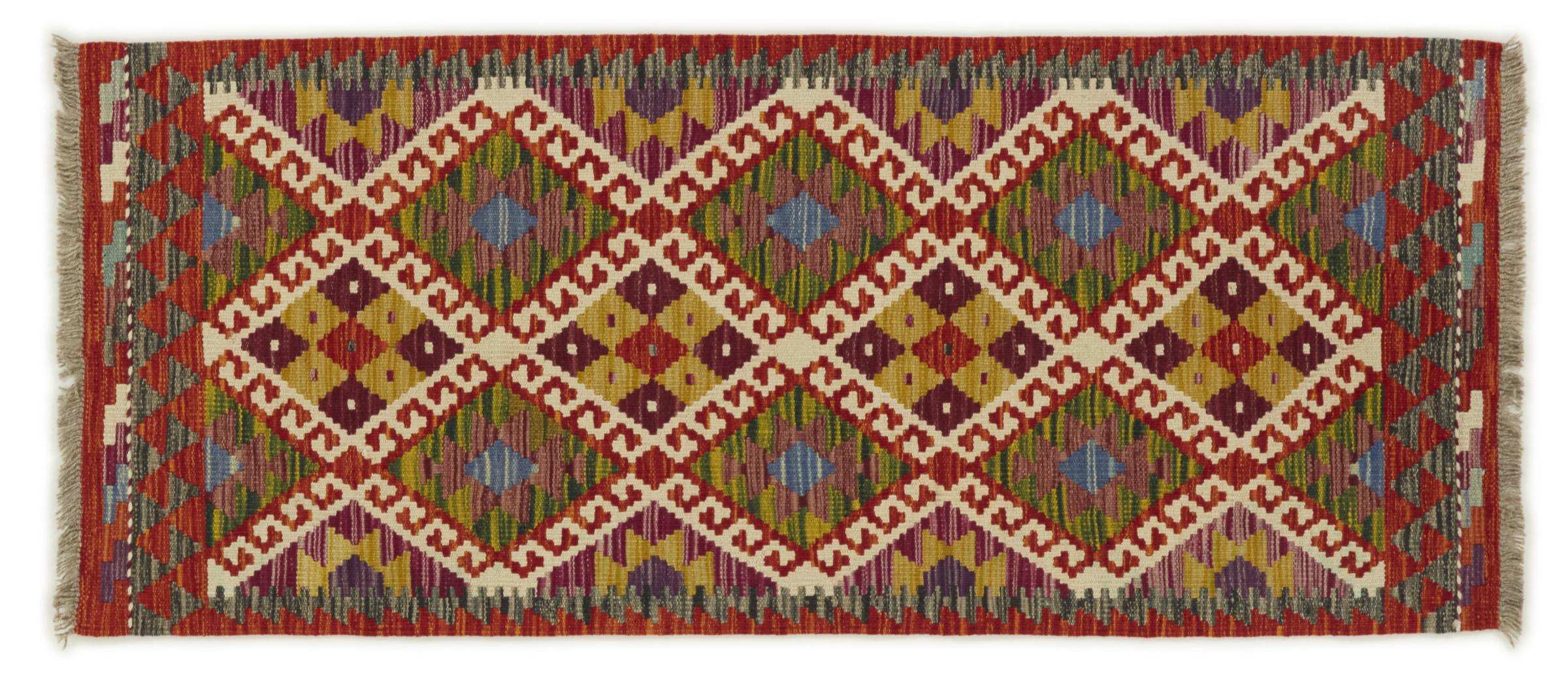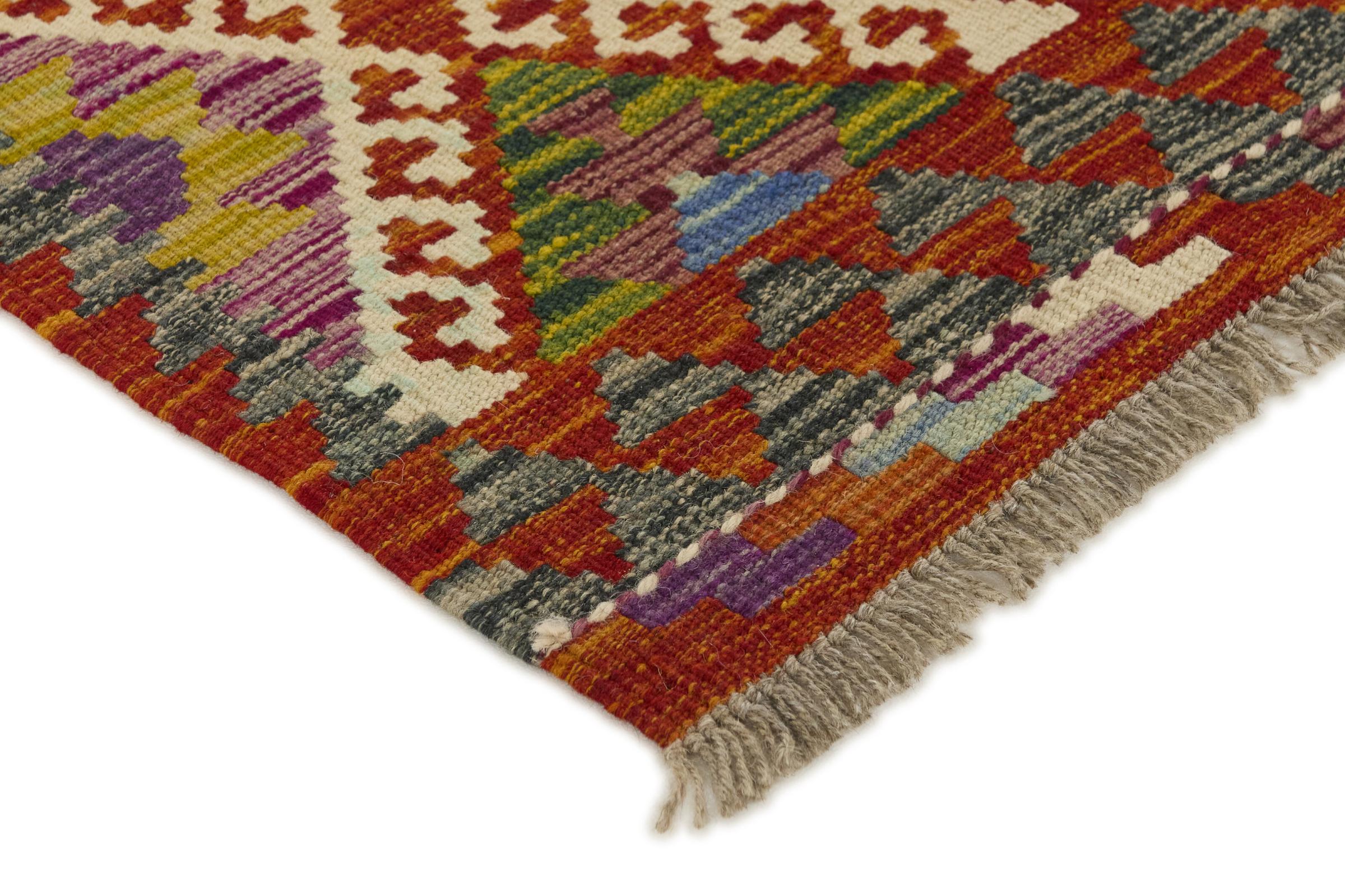 Deze handgeweven kilim Afghan is prachtig door de veelzijdige kleuren en het typische patroon. Het is handgeweven in Afghanistan van 100% schapenwol. Het is ongetwijfeld robuuster en duurzamer dan machinaal vervaardigde tapijten. Daarnaast heeft deze kelim een ​​heel eigen karakter. Een uniek stuk voor jou en je huis dat je nooit meer zult vinden.