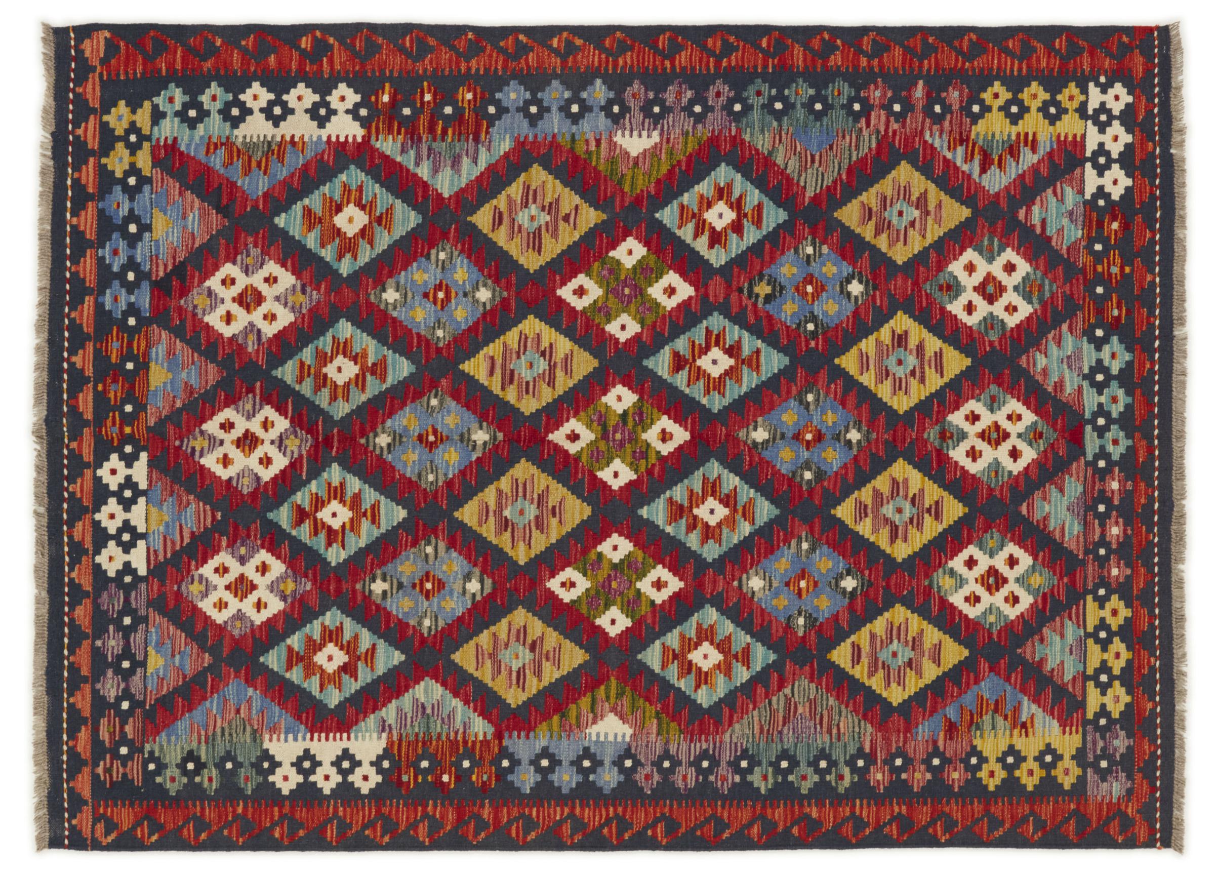 Deze handgeweven kilim Afghan is prachtig door de veelzijdige kleuren en het typische patroon. Het is handgeweven in Afghanistan van 100% schapenwol. Het is ongetwijfeld robuuster en duurzamer dan machinaal vervaardigde tapijten. Daarnaast heeft deze kelim een ​​heel eigen karakter. Een uniek stuk voor jou en je huis dat je nooit meer zult vinden.