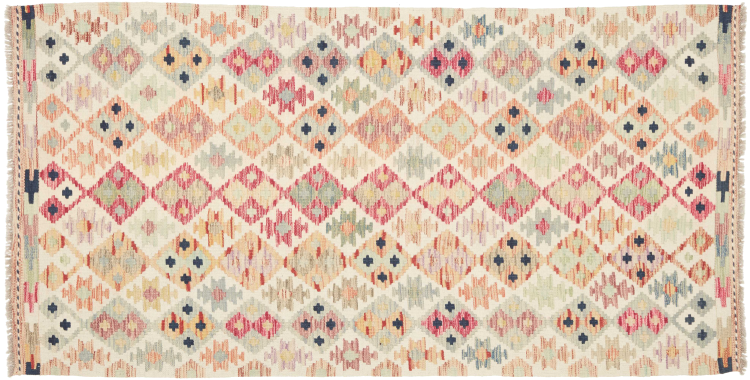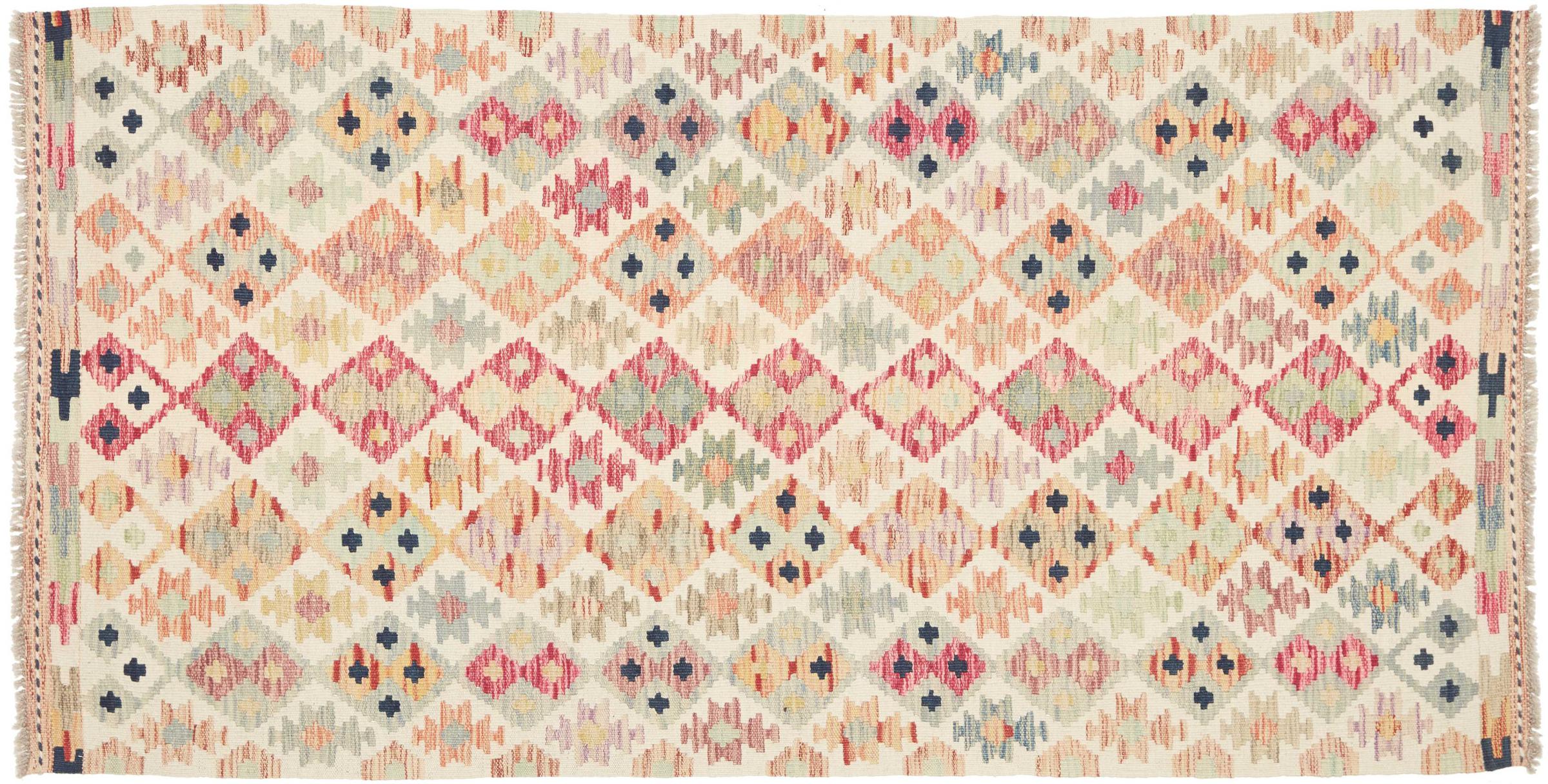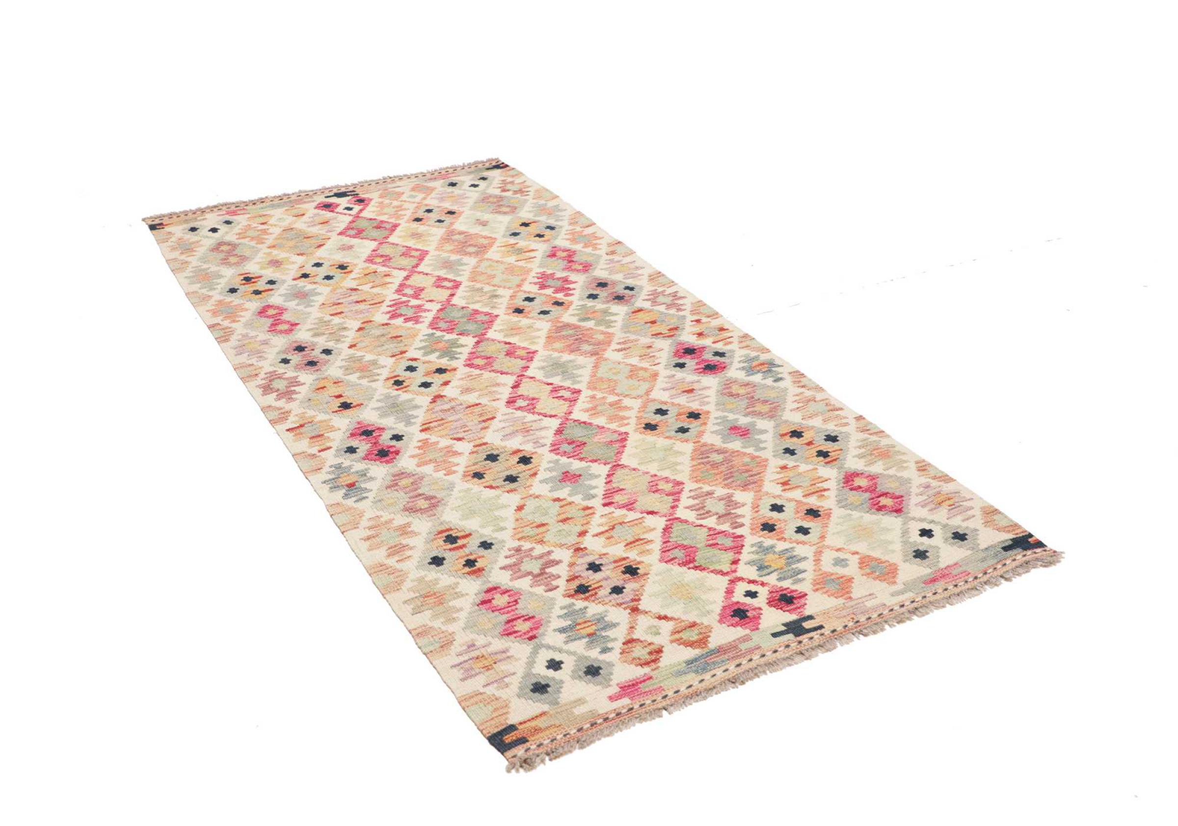 Deze handgeweven kilim Afghan is prachtig door de veelzijdige kleuren en het typische patroon. Het is handgeweven in Afghanistan van 100% schapenwol. Het is ongetwijfeld robuuster en duurzamer dan machinaal vervaardigde tapijten. Daarnaast heeft deze kelim een ​​heel eigen karakter. Een uniek stuk voor jou en je huis dat je nooit meer zult vinden.