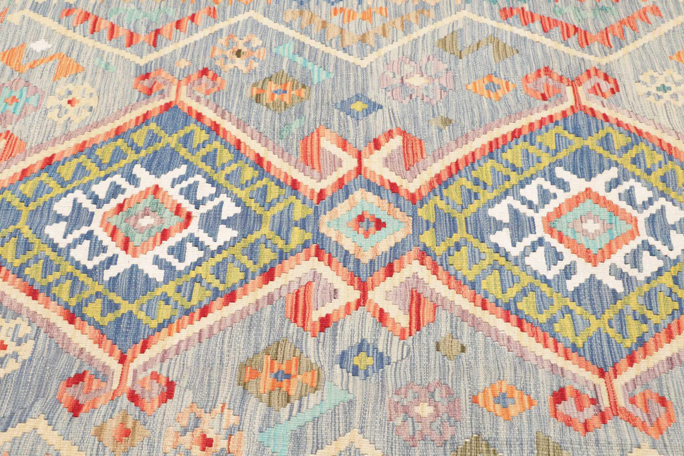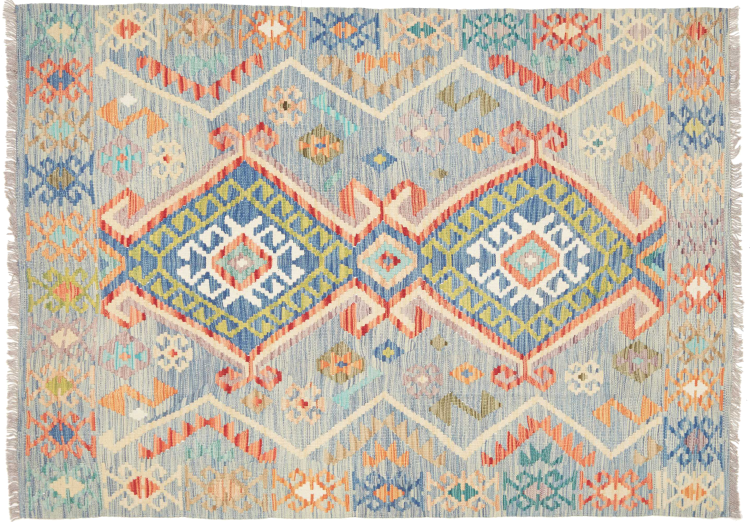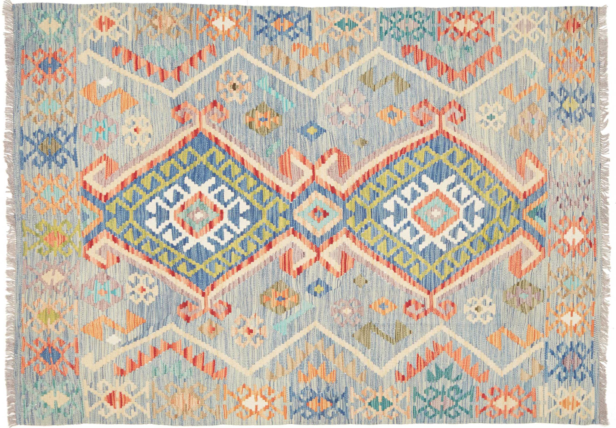 Deze handgeweven kilim Afghan is prachtig door de veelzijdige kleuren en het typische patroon. Het is handgeweven in Afghanistan van 100% schapenwol. Het is ongetwijfeld robuuster en duurzamer dan machinaal vervaardigde tapijten. Daarnaast heeft deze kelim een ​​heel eigen karakter. Een uniek stuk voor jou en je huis dat je nooit meer zult vinden.