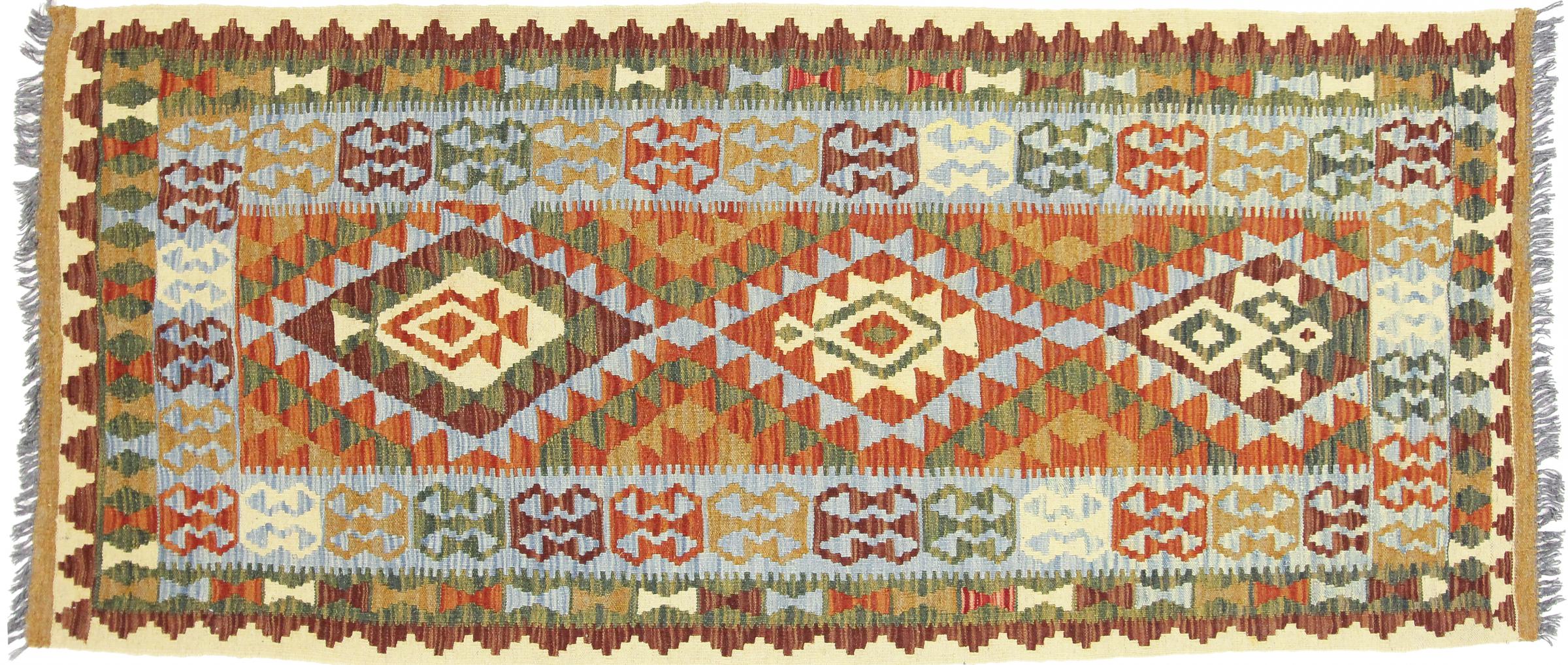 Deze kilim tapijten tonen een doorslaggevend verschil met handgeknoopte tapijten - ze worden met de hand geweven. Ze hebben dus geen hoge stapel wol en zijn vaak vlakker en ruwer dan geknoopte wollen tapijten. Het maken ervan is minder uitgebreid en dus zijn ze meestal veel goedkoper. Een voordeel is dat kilimtapijt ook veel lichter is en van voren en van achteren kan worden gelegd. Handgeweven kelims komen oorspronkelijk uit het voormalige Perzië en worden nu ook vaak in Afghanistan gemaakt. Ze hebben vrij eenvoudige, rechtlijnige patronen, die te danken zijn aan hun weeftechniek.