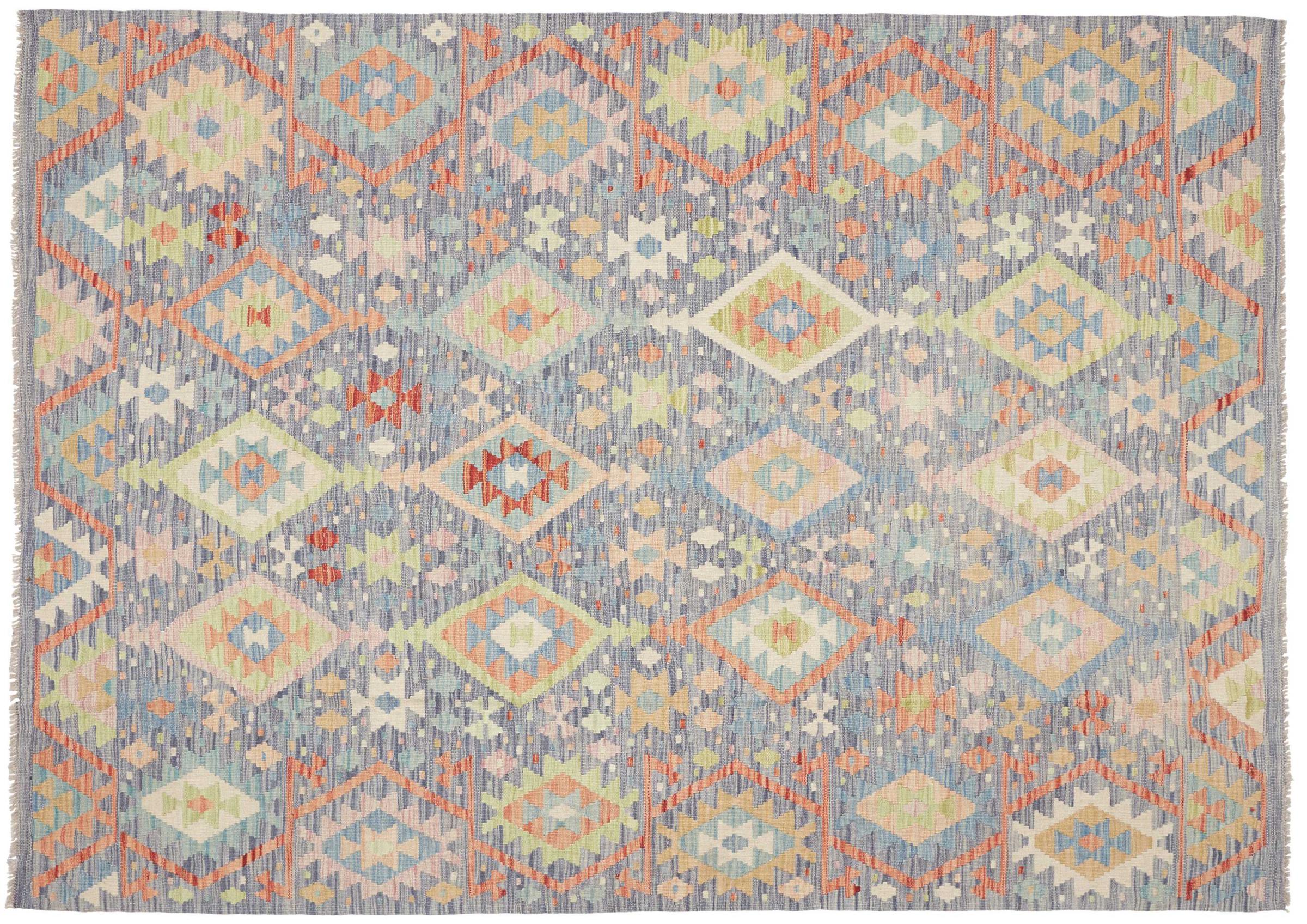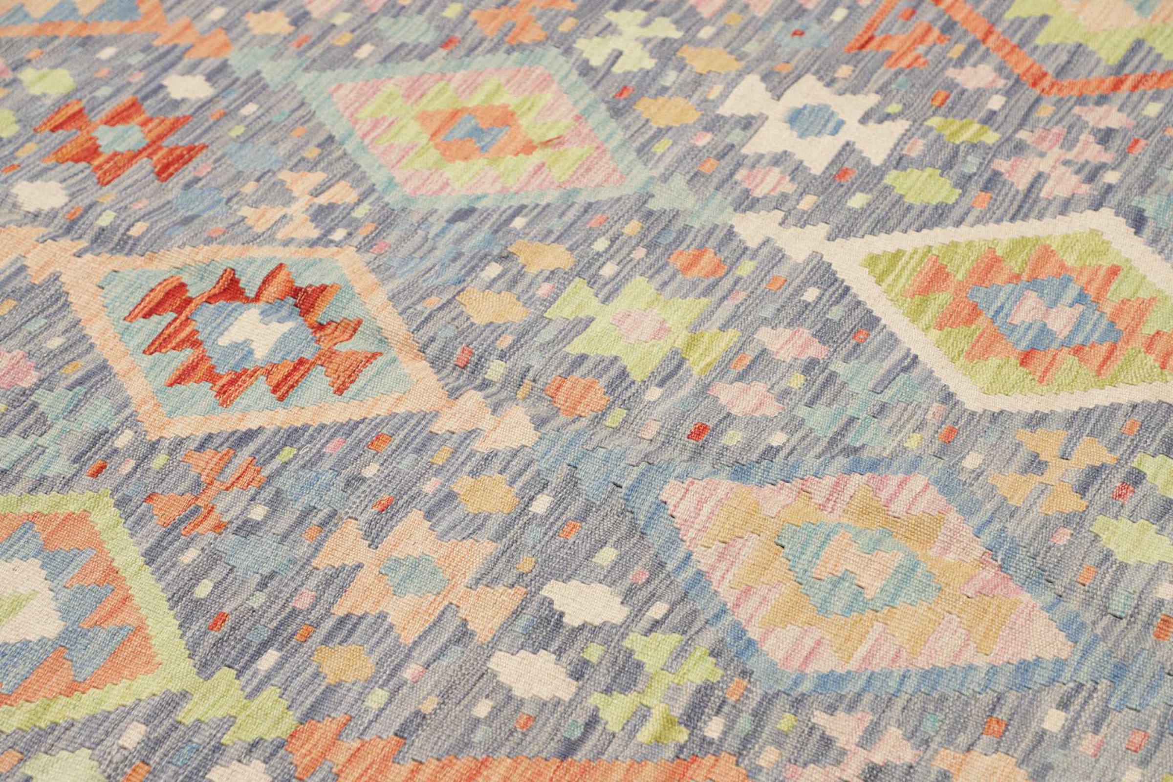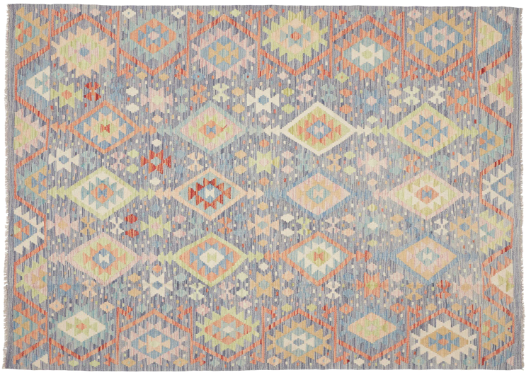 Deze handgeweven kilim Afghan is prachtig door de veelzijdige kleuren en het typische patroon. Het is handgeweven in Afghanistan van 100% schapenwol. Het is ongetwijfeld robuuster en duurzamer dan machinaal vervaardigde tapijten. Daarnaast heeft deze kelim een ​​heel eigen karakter. Een uniek stuk voor jou en je huis dat je nooit meer zult vinden.