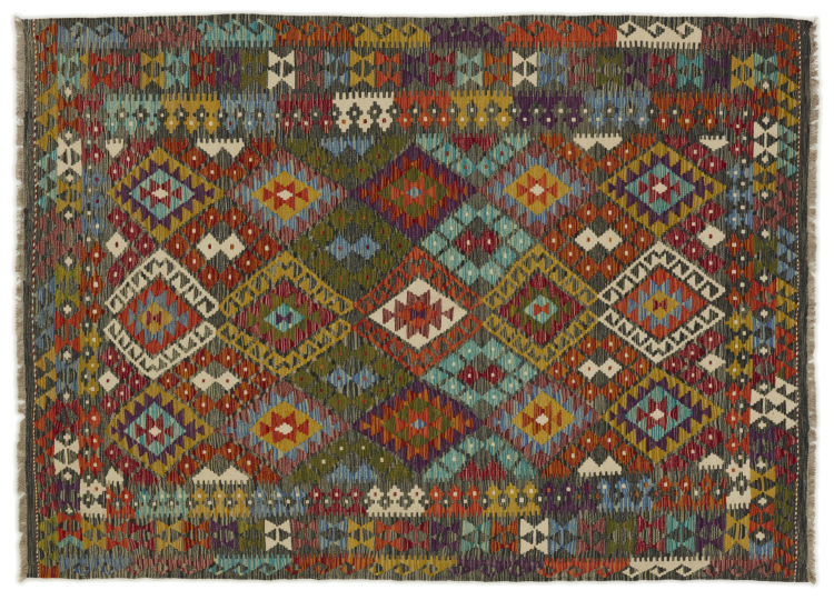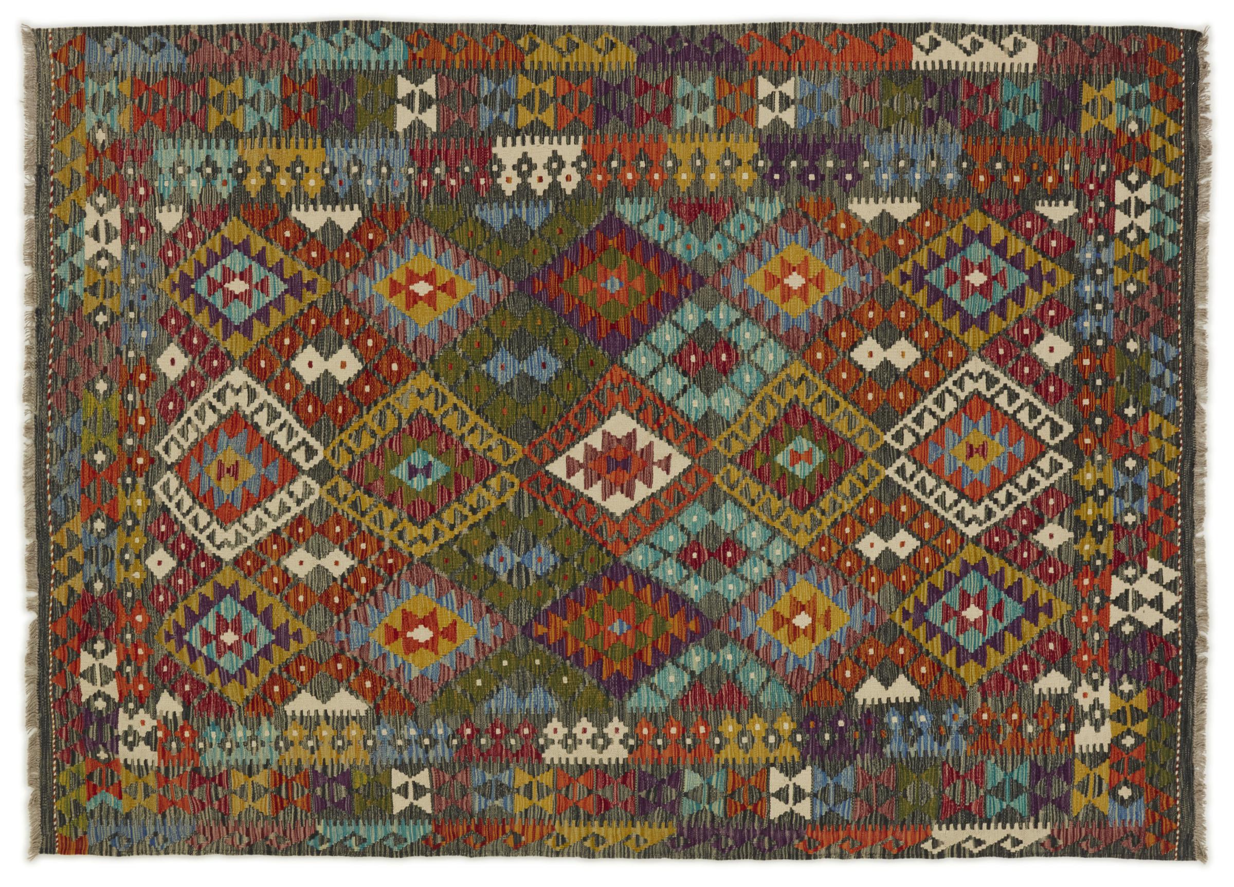 Deze handgeweven kilim Afghan is prachtig door de veelzijdige kleuren en het typische patroon. Het is handgeweven in Afghanistan van 100% schapenwol. Het is ongetwijfeld robuuster en duurzamer dan machinaal vervaardigde tapijten. Daarnaast heeft deze kelim een ​​heel eigen karakter. Een uniek stuk voor jou en je huis dat je nooit meer zult vinden.