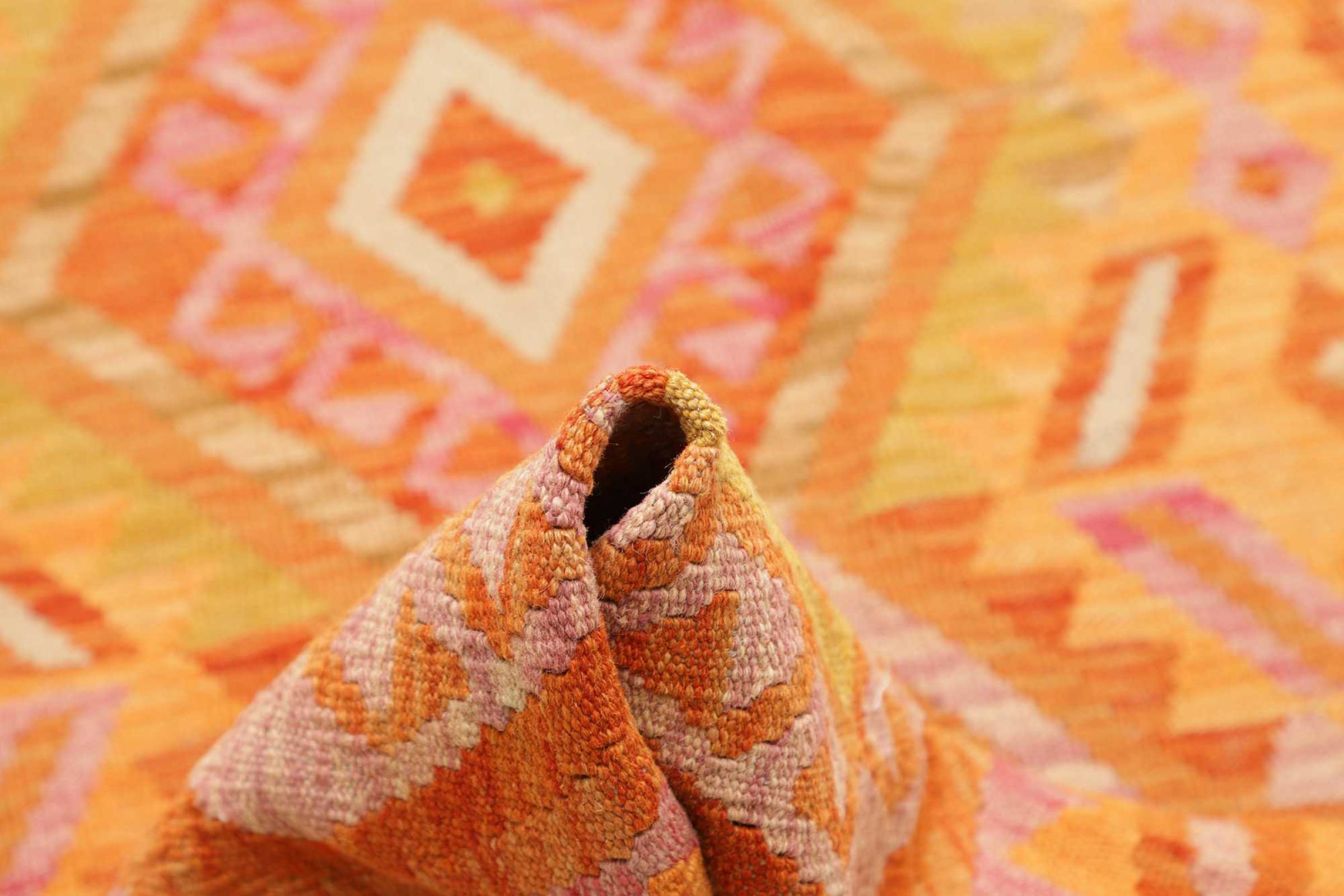 Deze handgeweven kilim Afghan is prachtig door de veelzijdige kleuren en het typische patroon. Het is handgeweven in Afghanistan van 100% schapenwol. Het is ongetwijfeld robuuster en duurzamer dan machinaal vervaardigde tapijten. Daarnaast heeft deze kelim een ​​heel eigen karakter. Een uniek stuk voor jou en je huis dat je nooit meer zult vinden.