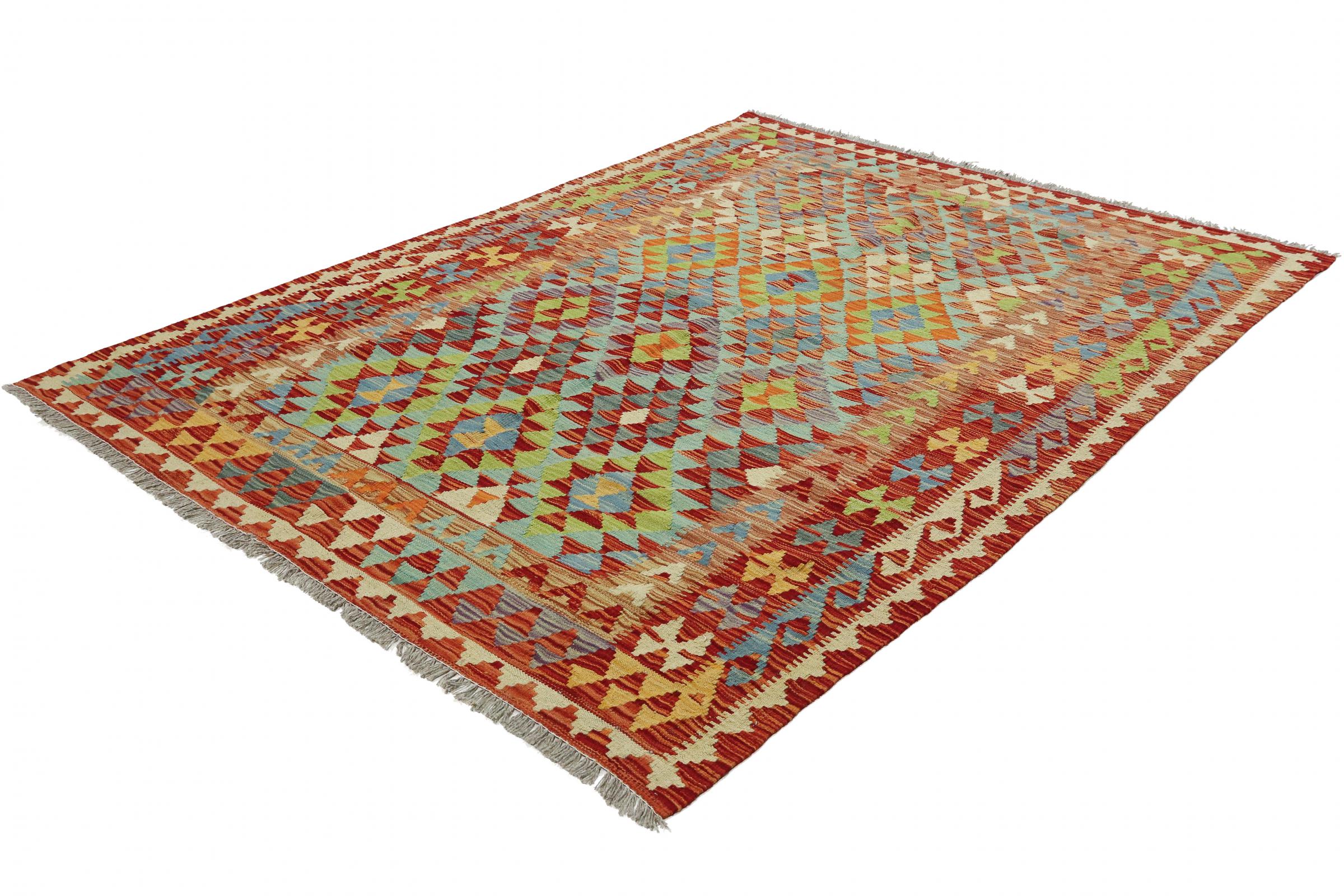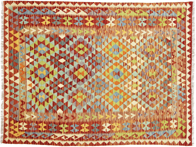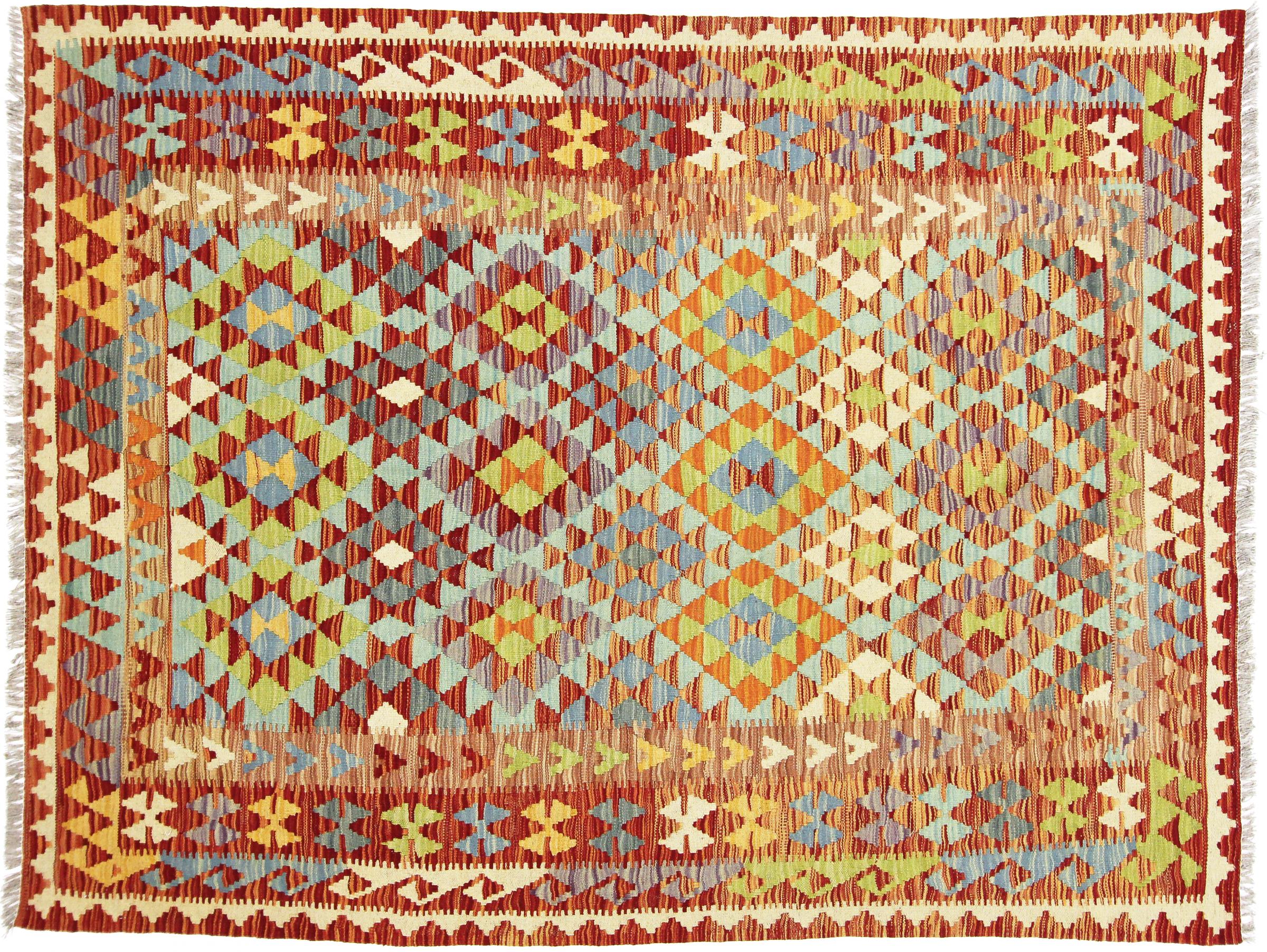 Tapijt ID: 73588008978819 Grootte: 207x158 cm Dikte: ap. 3 mm Verwerking: Handgeweven Pool: Wol Schering: Wol Oorsprong: Afghanistan Leeftijd: Nieuw Gewicht: ap. 5 kg Ook wel bekend als Kilim, Qilim, Chilim, Afgan, Afghán Op voorraad: Uniek