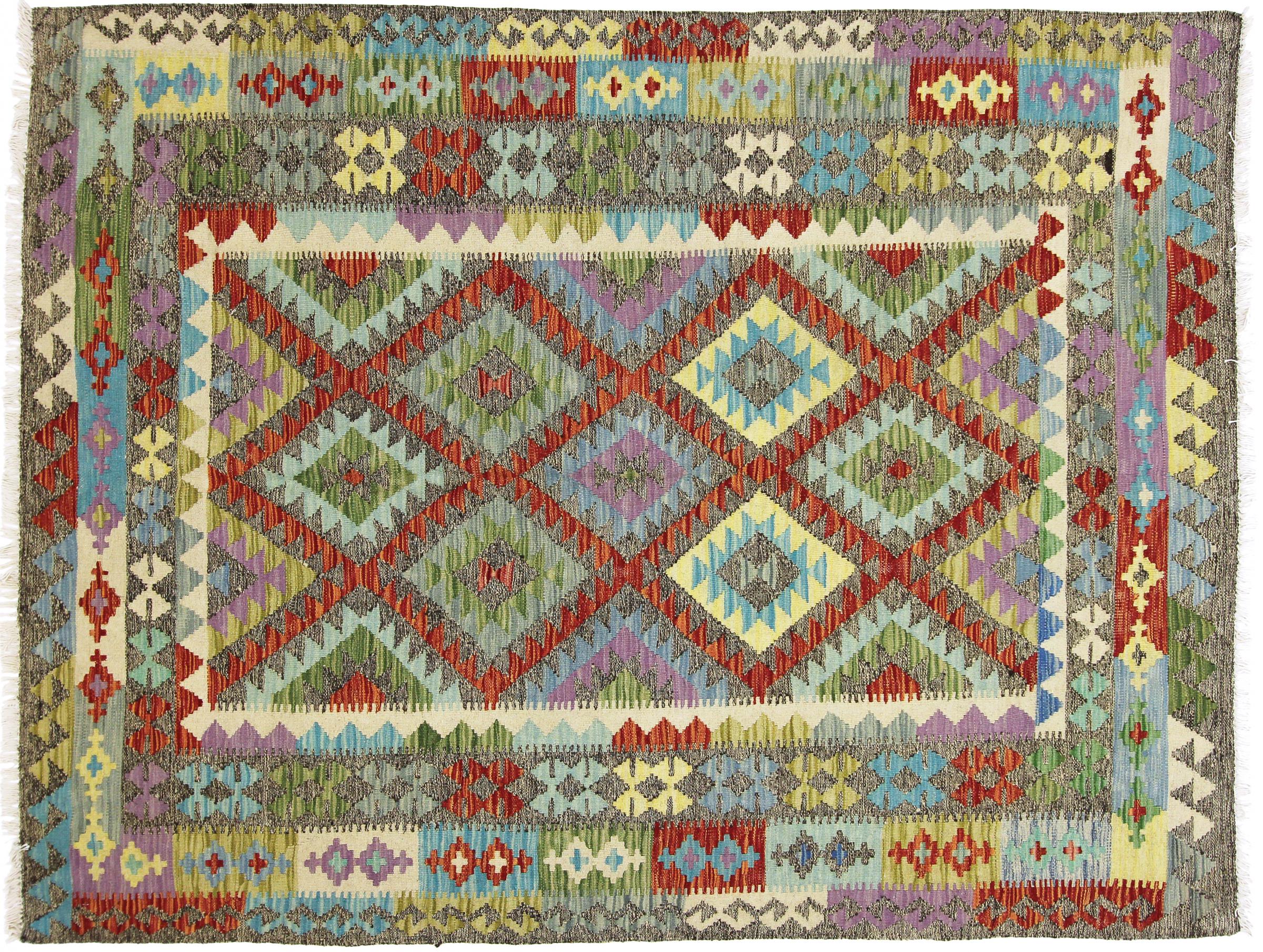 Tapijt ID: 73640004454116 Grootte: 209x161 cm Dikte: ap. 3 mm Verwerking: Handgeweven Pool: Wol Schering: Wol Oorsprong: Afghanistan Leeftijd: Nieuw Gewicht: ap. 5 kg Ook wel bekend als Kilim, Qilim, Chilim, Afgan, Afghán Op voorraad: Uniek