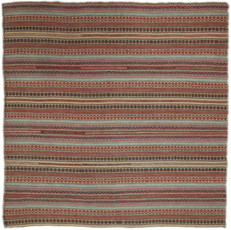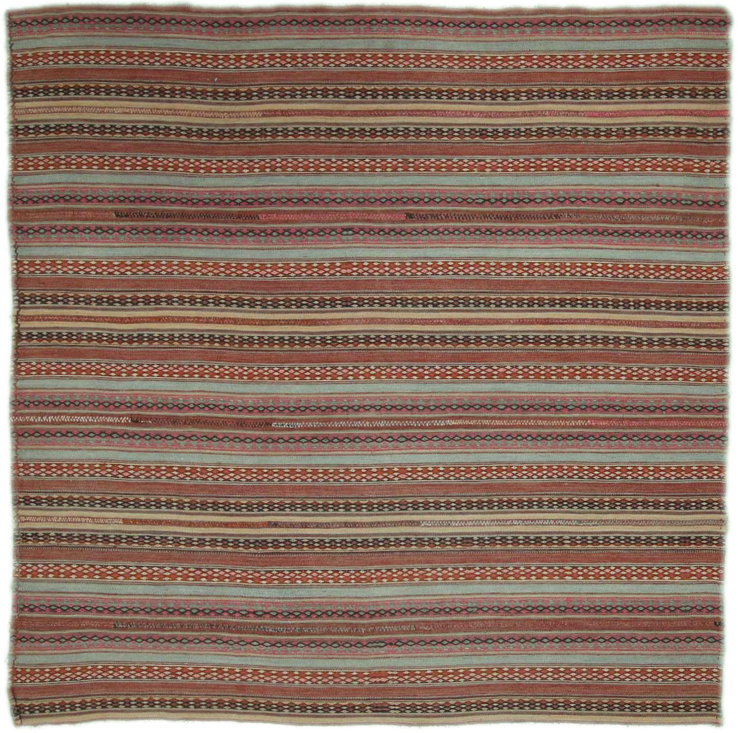 Dit tapijt is met de hand gemaakt op een weefgetouw als plat weefgetouw. Flatweave is de term die wordt gebruikt om tapijten zonder pool te beschrijven. Zoals de naam al belooft, zijn deze tapijten geweven en niet geknoopt. Dit resulteert in een vlak tapijt met een gestructureerd oppervlak. Platweefsels zijn niet zo zacht en meestal dunner dan geknoopte tapijten. Tegelijkertijd zijn ze veel minder complex te vervaardigen en kunnen ze meestal aan beide zijden (voor- en achterkant) worden gelegd. Hun patronen zijn meestal geometrisch, wat wordt bepaald door de stof.