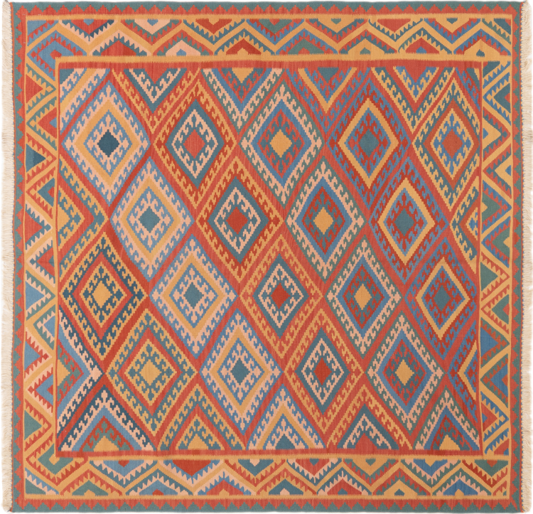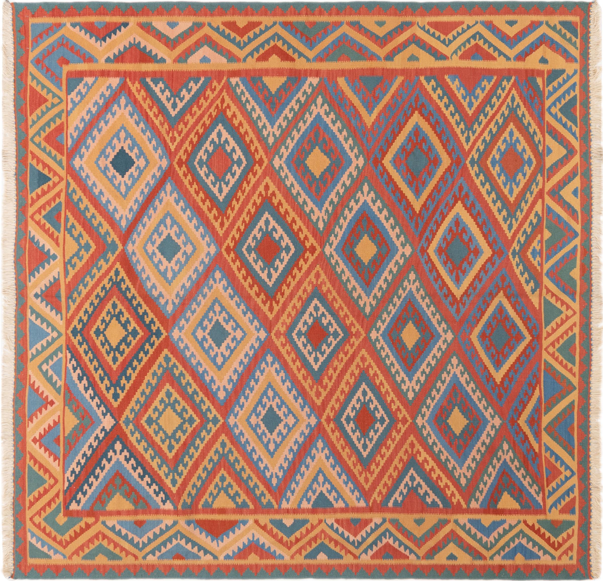 Tapijt ID: 297576004974 Grootte: 196x195 cm Dikte: ap. 4 mm Verwerking: Handgeweven Pool: Hand gesponnen wol Schering: Wol Oorsprong: Perzië / Iran Leeftijd: Nieuw Gewicht: ap. 6 kg Op voorraad: Uniek - Nog maar 1 op voorraad