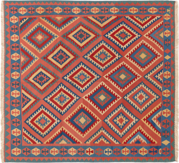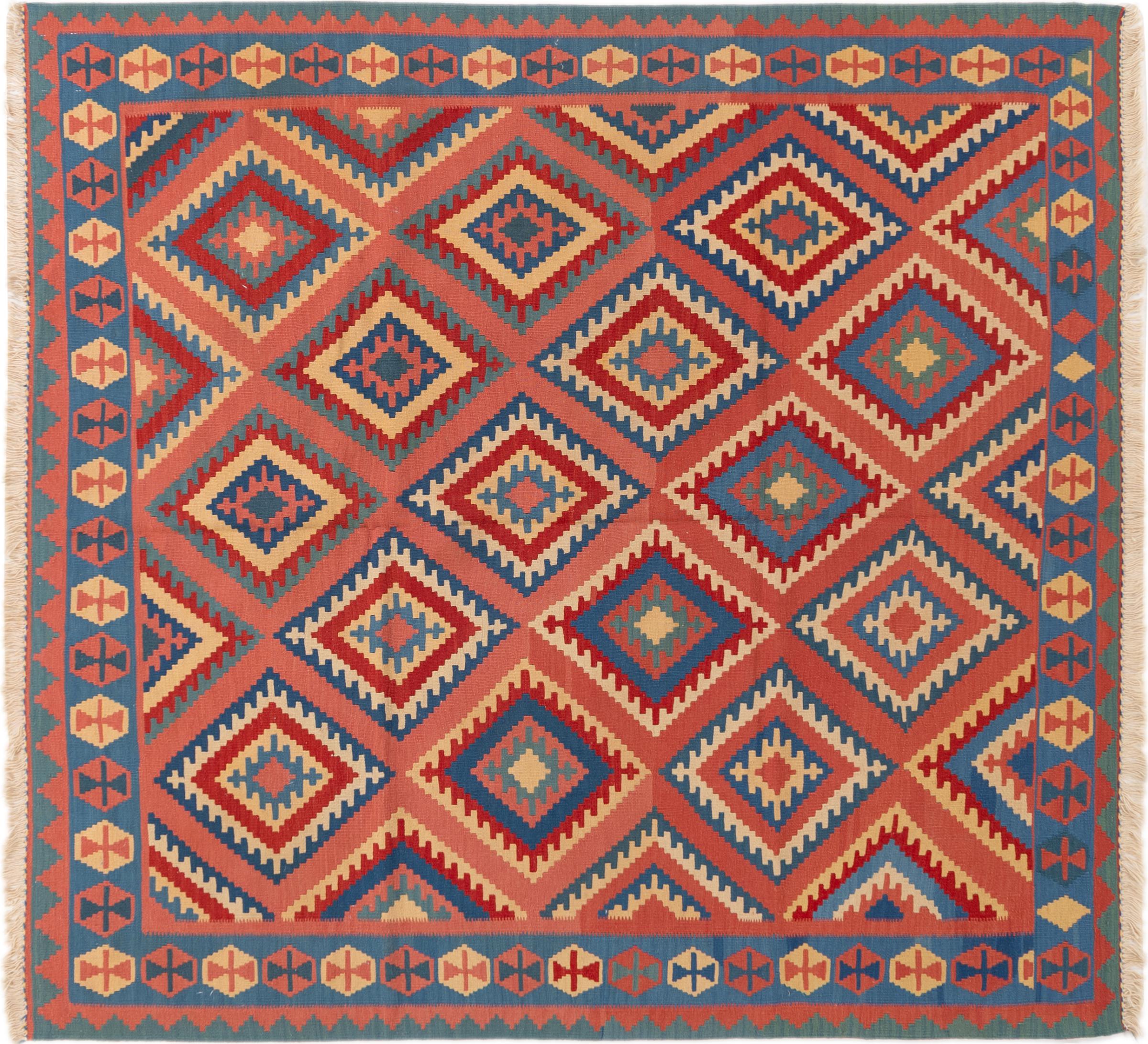 Tapijt ID: 297618004977 Grootte: 206x196 cm Dikte: ap. 4 mm Verwerking: Handgeweven Pool: Hand gesponnen wol Schering: Wol Oorsprong: Perzië / Iran Leeftijd: Nieuw Gewicht: ap. 6 kg Op voorraad: Uniek - Nog maar 1 op voorraad