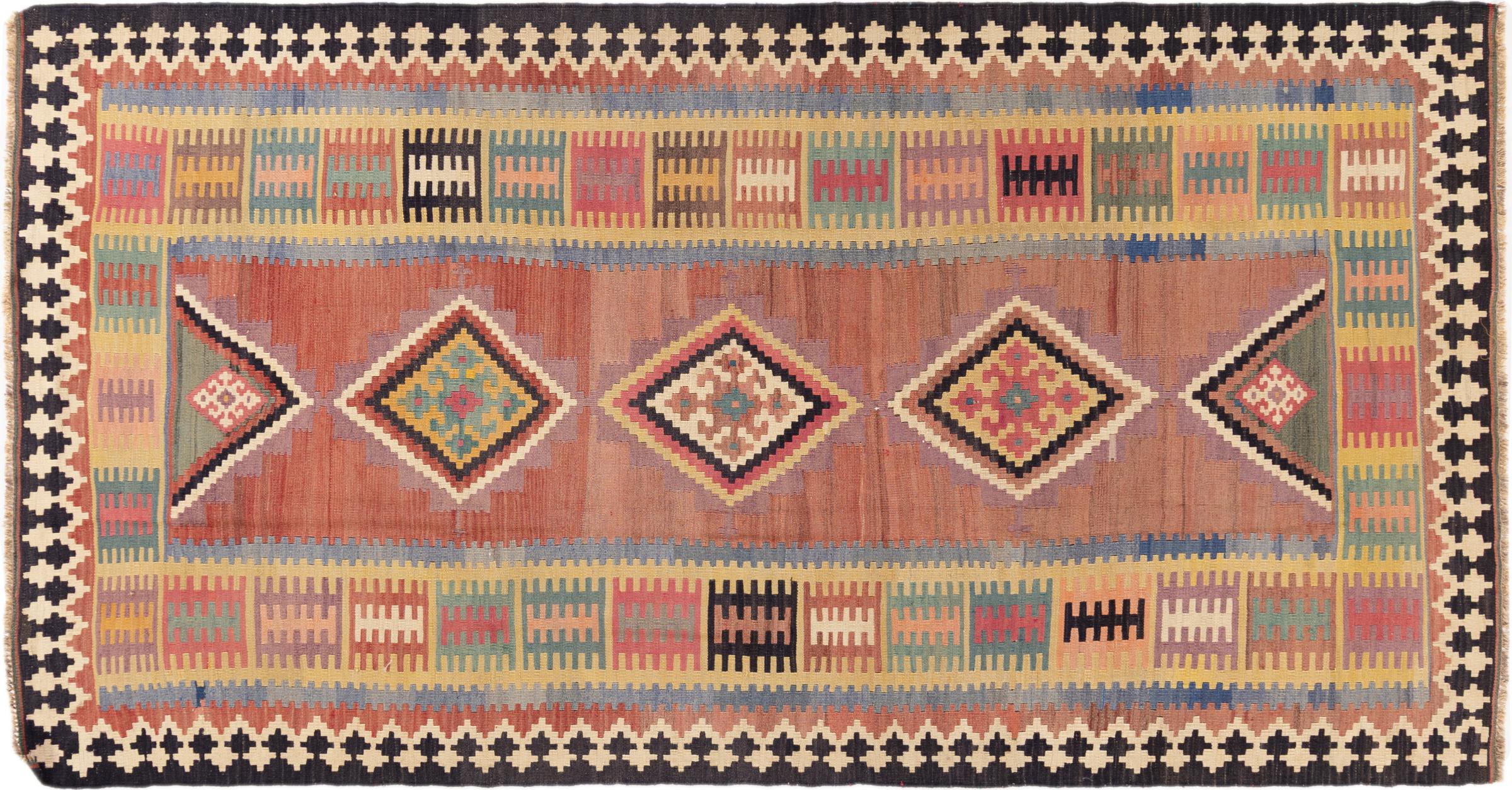 Deze handgeweven kilim fars combineert Perzische patronen en ornamenten met de traditie van platbindingen. Een geweldige en moderne combinatie van de meest populaire concepten van de Oriënt. Zo ontstaat een tapijt met een breed scala aan toepassingen. Of het nu gaat om sprei of als vloerkleed voor de bank - een Fars kelim maakt het mogelijk en is nu te vinden in de meest bekende interieurmagazines. Kelim Fars-tapijten worden met de hand geweven in Iran en behoren daarom tot de hoogste kwaliteit kelims.
