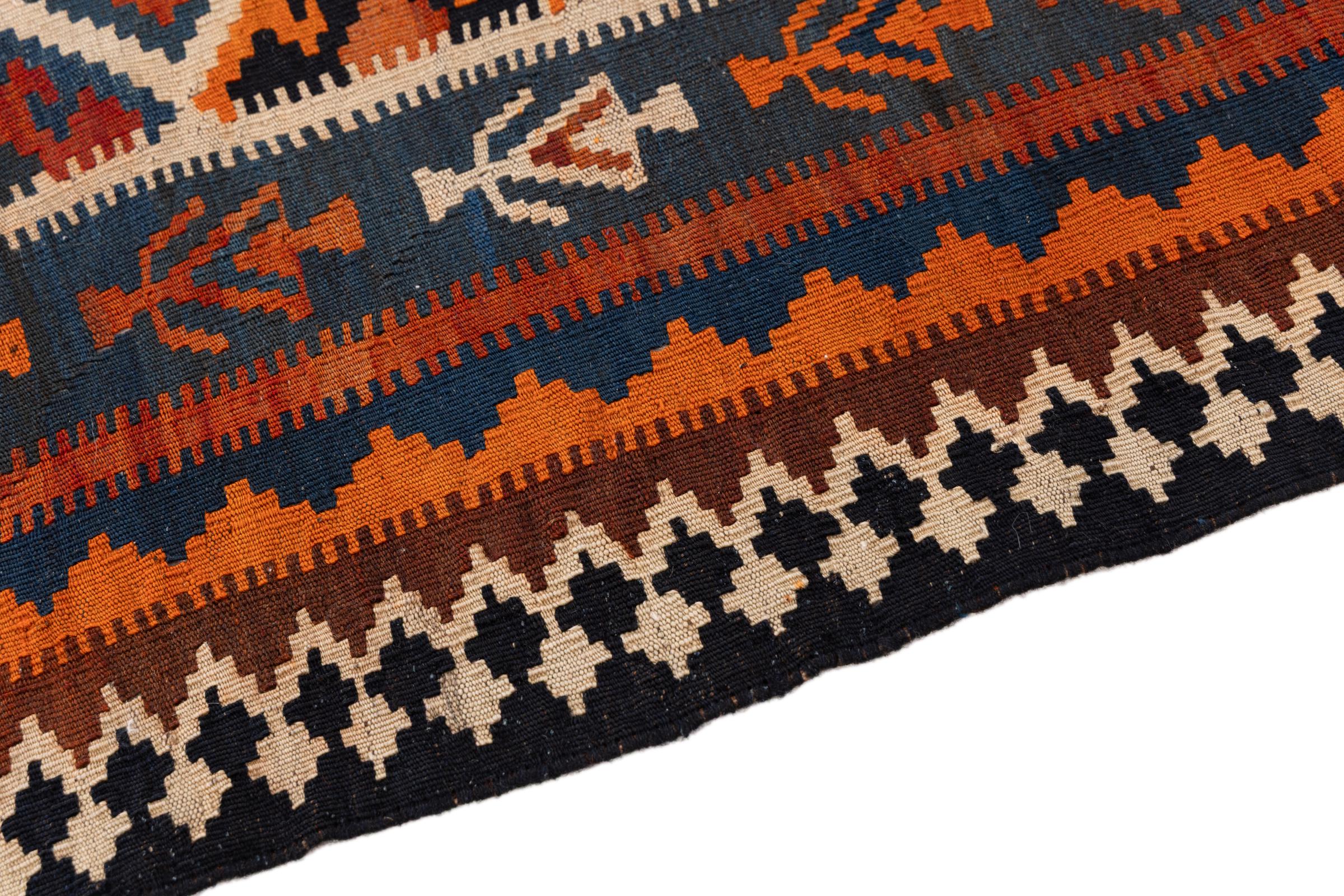 Deze handgeweven kilim fars combineert Perzische patronen en ornamenten met de traditie van platbindingen. Een geweldige en moderne combinatie van de meest populaire concepten van de Oriënt. Zo ontstaat een tapijt met een breed scala aan toepassingen. Of het nu gaat om sprei of als vloerkleed voor de bank - een Fars kelim maakt het mogelijk en is nu te vinden in de meest bekende interieurmagazines. Kelim Fars-tapijten worden met de hand geweven in Iran en behoren daarom tot de hoogste kwaliteit kelims.