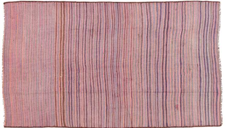 Dit tapijt is met de hand gemaakt op een weefgetouw als plat weefgetouw. Flatweave is de term die wordt gebruikt om tapijten zonder pool te beschrijven. Zoals de naam al belooft, zijn deze tapijten geweven en niet geknoopt. Dit resulteert in een vlak tapijt met een gestructureerd oppervlak. Platweefsels zijn niet zo zacht en meestal dunner dan geknoopte tapijten. Tegelijkertijd zijn ze veel minder complex te vervaardigen en kunnen ze meestal aan beide zijden (voor- en achterkant) worden gelegd. Hun patronen zijn meestal geometrisch, wat wordt bepaald door de stof.