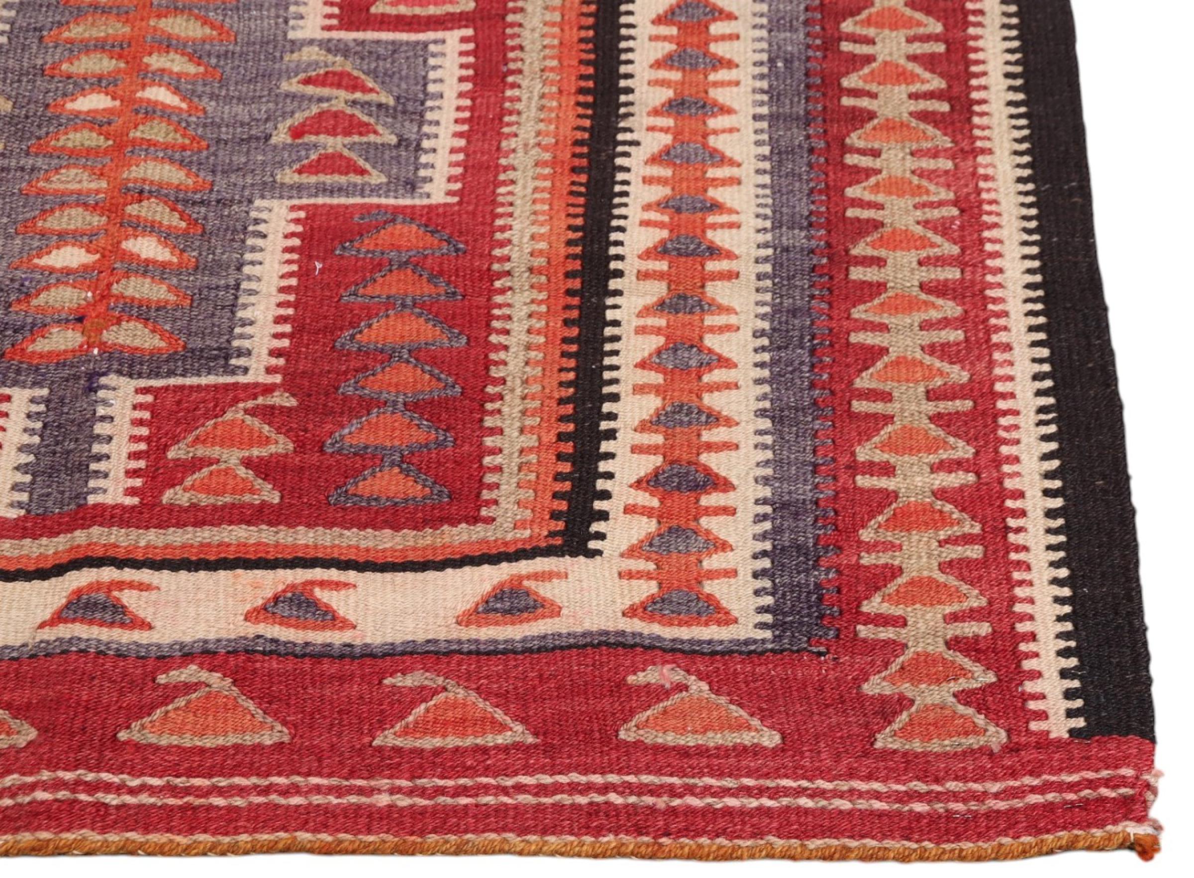 Deze handgeweven kilim fars combineert Perzische patronen en ornamenten met de traditie van platbindingen. Een geweldige en moderne combinatie van de meest populaire concepten van de Oriënt. Zo ontstaat een tapijt met een breed scala aan toepassingen. Of het nu gaat om sprei of als vloerkleed voor de bank - een Fars kelim maakt het mogelijk en is nu te vinden in de meest bekende interieurmagazines. Kelim Fars-tapijten worden met de hand geweven in Iran en behoren daarom tot de hoogste kwaliteit kelims.