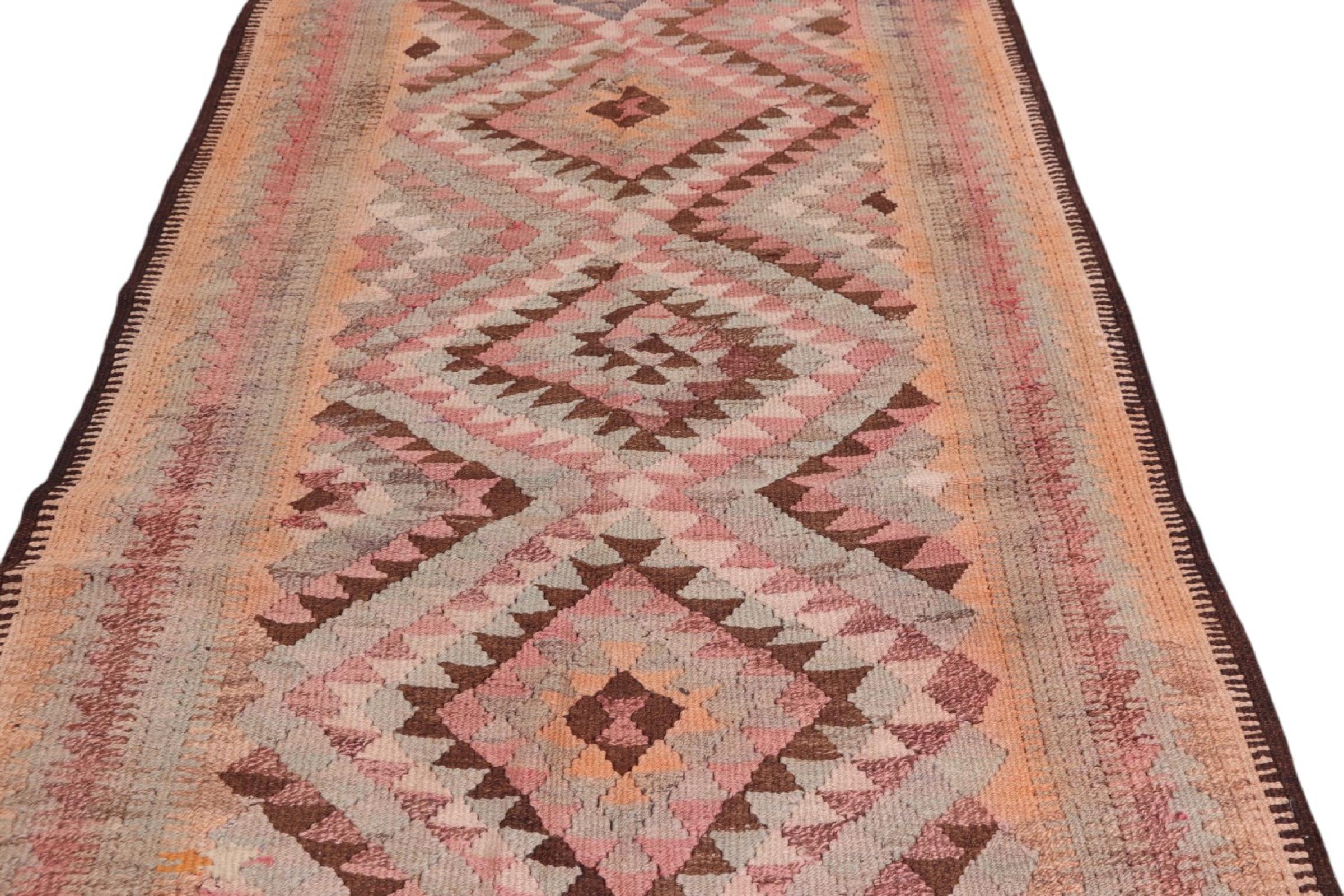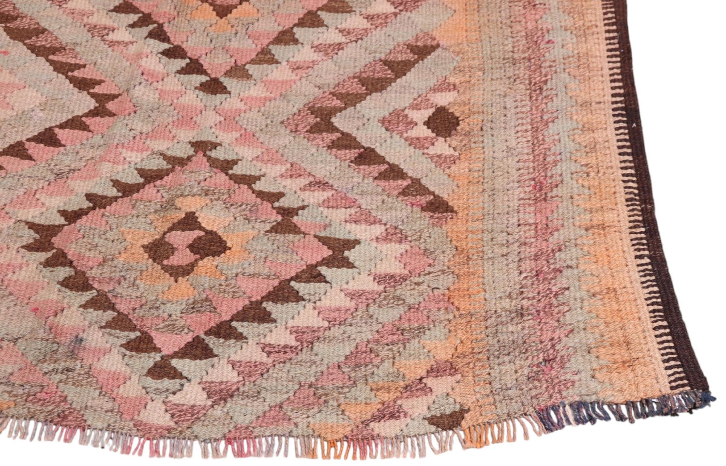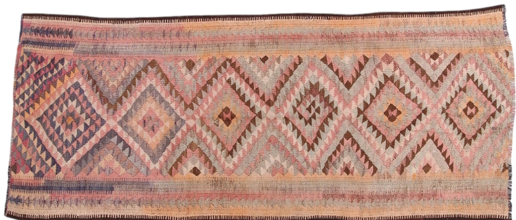 Dit tapijt is met de hand gemaakt op een weefgetouw als plat weefgetouw. Flatweave is de term die wordt gebruikt om tapijten zonder pool te beschrijven. Zoals de naam al belooft, zijn deze tapijten geweven en niet geknoopt. Dit resulteert in een vlak tapijt met een gestructureerd oppervlak. Platweefsels zijn niet zo zacht en meestal dunner dan geknoopte tapijten. Tegelijkertijd zijn ze veel minder complex te vervaardigen en kunnen ze meestal aan beide zijden (voor- en achterkant) worden gelegd. Hun patronen zijn meestal geometrisch, wat wordt bepaald door de stof.