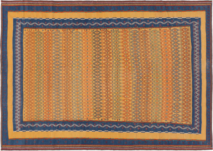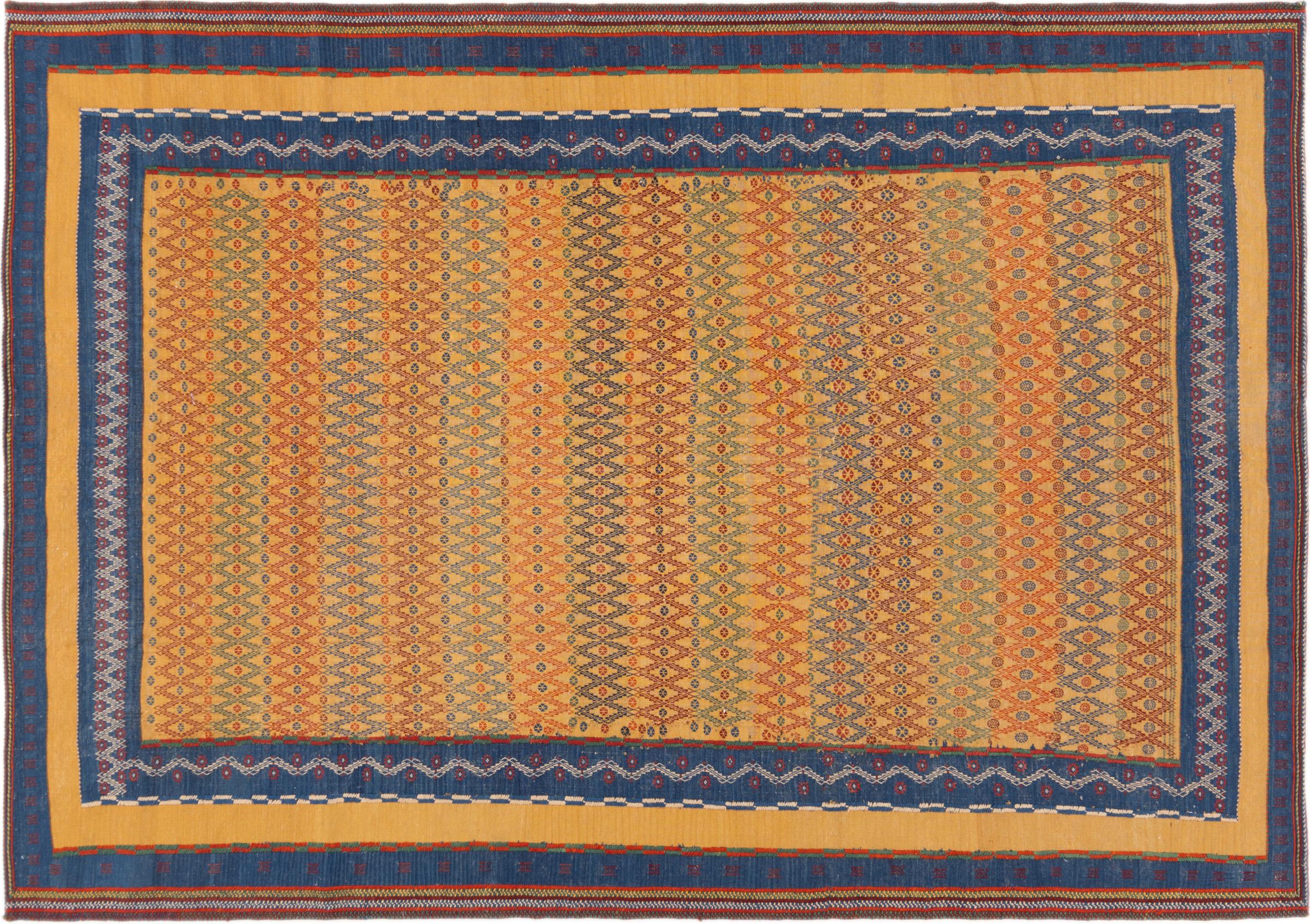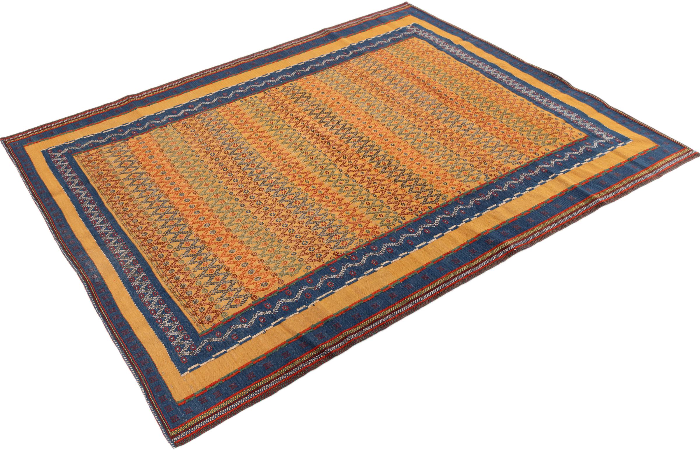Deze handgeweven kilim fars combineert Perzische patronen en ornamenten met de traditie van platbindingen. Een geweldige en moderne combinatie van de meest populaire concepten van de Oriënt. Zo ontstaat een tapijt met een breed scala aan toepassingen. Of het nu gaat om sprei of als vloerkleed voor de bank - een Fars kelim maakt het mogelijk en is nu te vinden in de meest bekende interieurmagazines. Kelim Fars-tapijten worden met de hand geweven in Iran en behoren daarom tot de hoogste kwaliteit kelims.