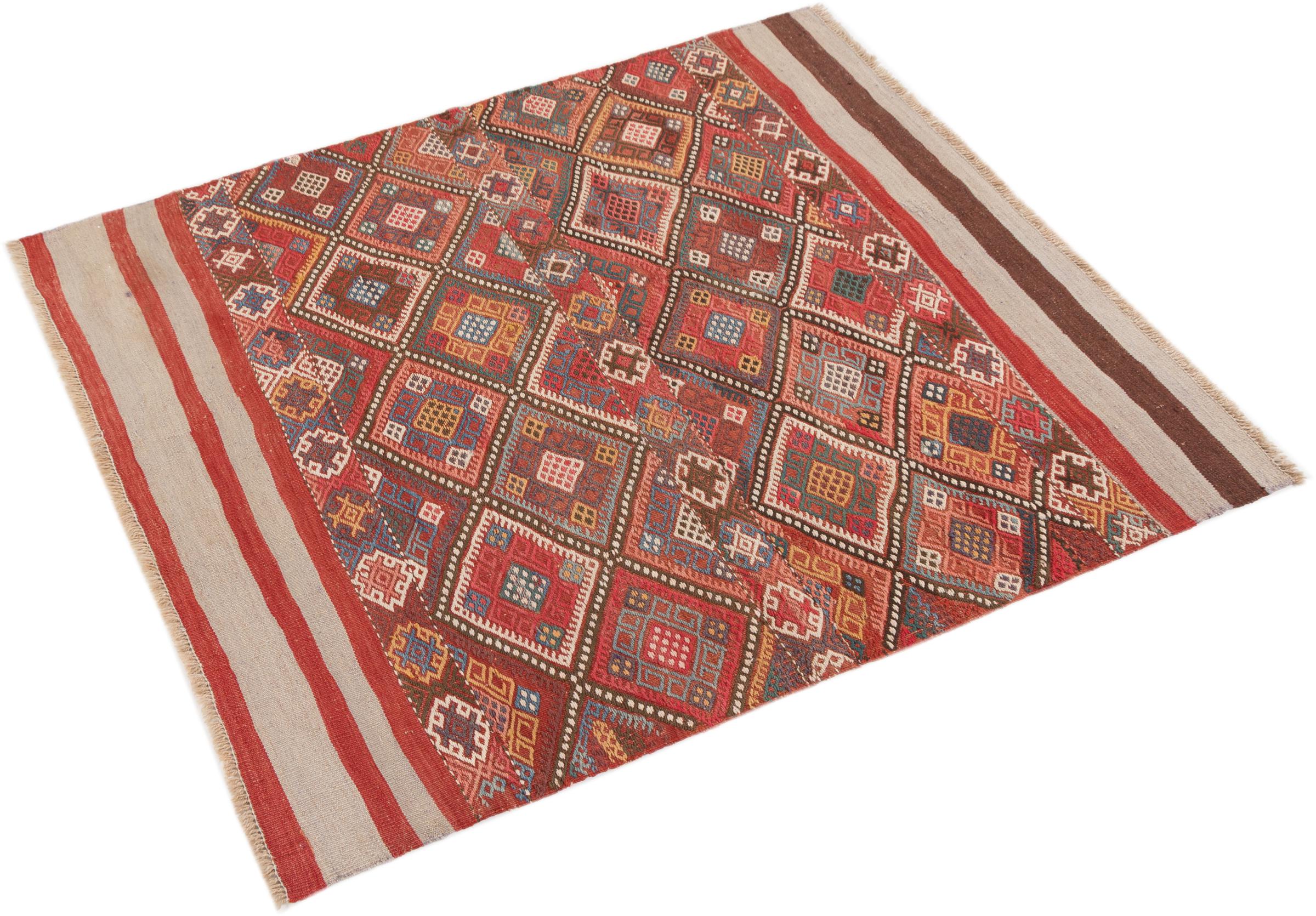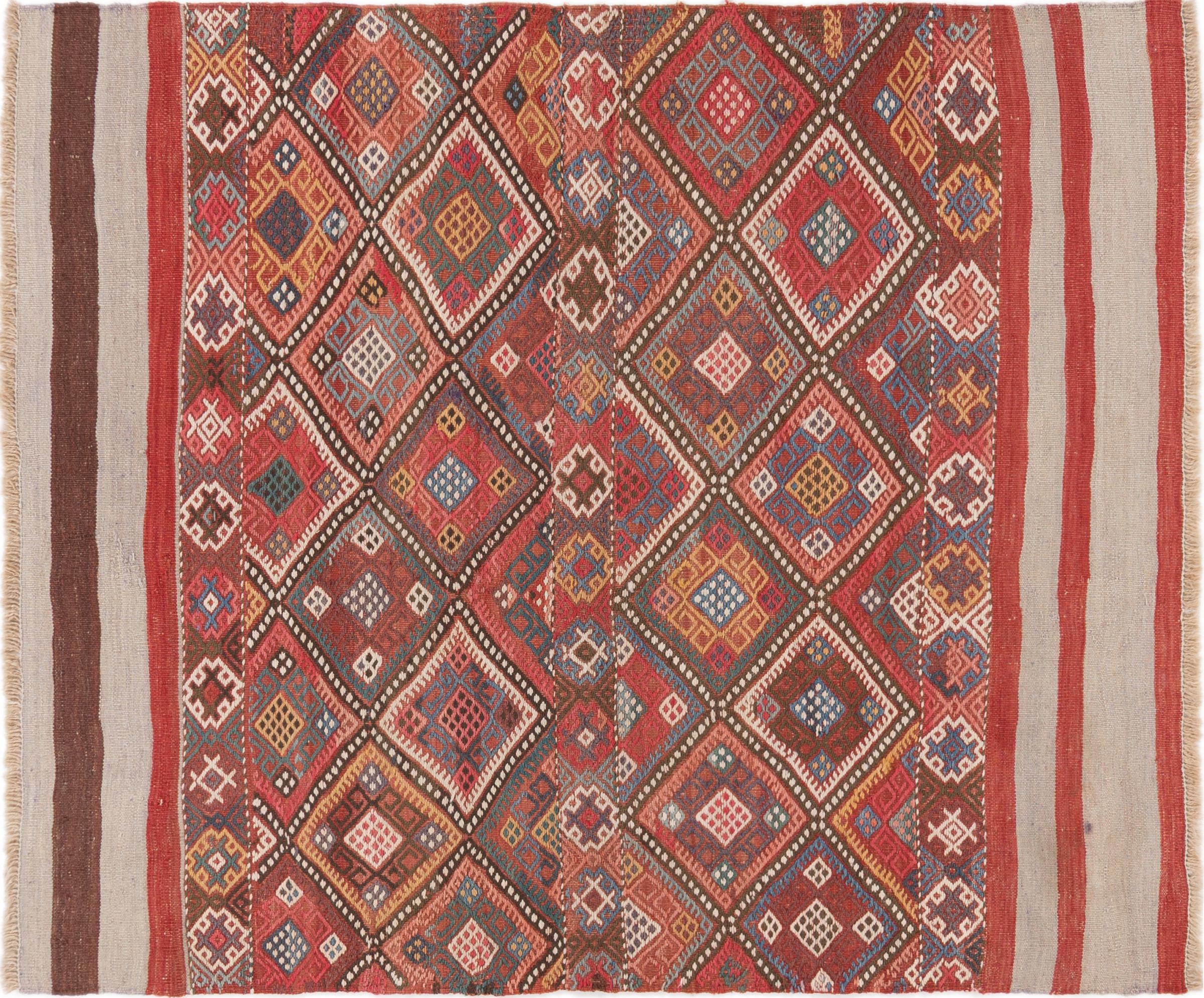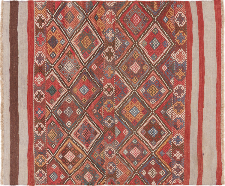 Deze handgeweven kilim fars combineert Perzische patronen en ornamenten met de traditie van platbindingen. Een geweldige en moderne combinatie van de meest populaire concepten van de Oriënt. Zo ontstaat een tapijt met een breed scala aan toepassingen. Of het nu gaat om sprei of als vloerkleed voor de bank - een Fars kelim maakt het mogelijk en is nu te vinden in de meest bekende interieurmagazines. Kelim Fars-tapijten worden met de hand geweven in Iran en behoren daarom tot de hoogste kwaliteit kelims.