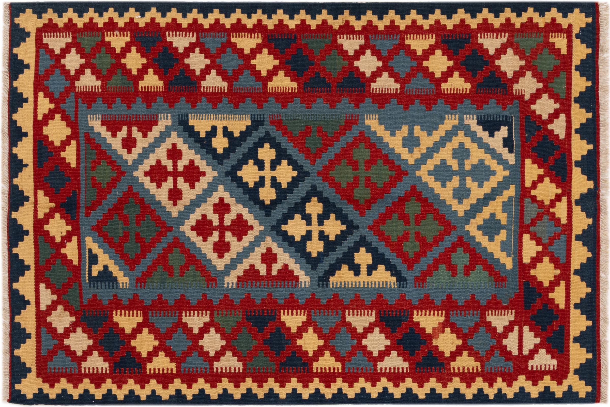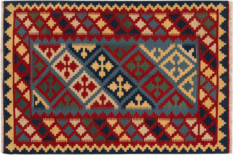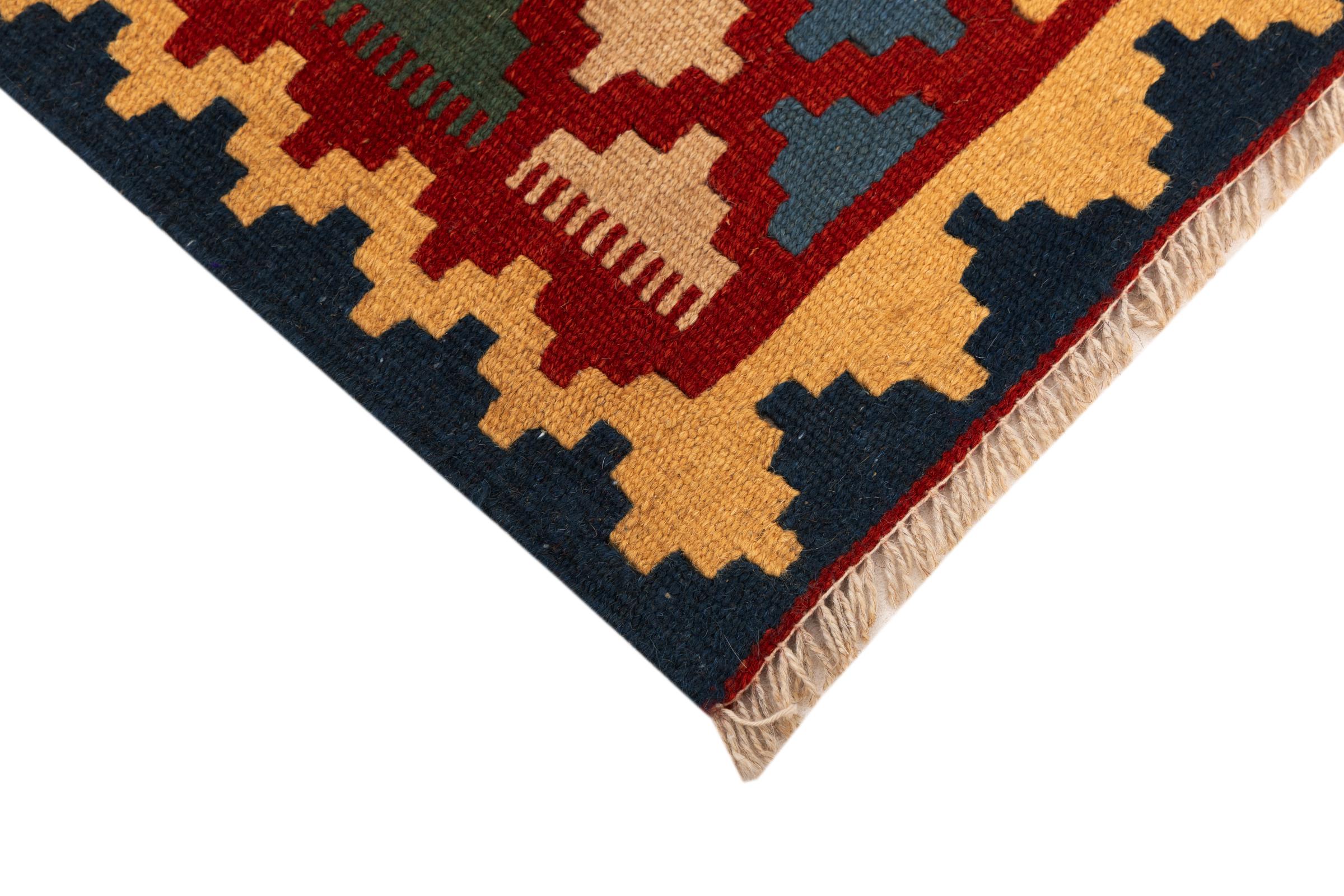 Dit tapijt is met de hand gemaakt op een weefgetouw als plat weefgetouw. Flatweave is de term die wordt gebruikt om tapijten zonder pool te beschrijven. Zoals de naam al belooft, zijn deze tapijten geweven en niet geknoopt. Dit resulteert in een vlak tapijt met een gestructureerd oppervlak. Platweefsels zijn niet zo zacht en meestal dunner dan geknoopte tapijten. Tegelijkertijd zijn ze veel minder complex te vervaardigen en kunnen ze meestal aan beide zijden (voor- en achterkant) worden gelegd. Hun patronen zijn meestal geometrisch, wat wordt bepaald door de stof.