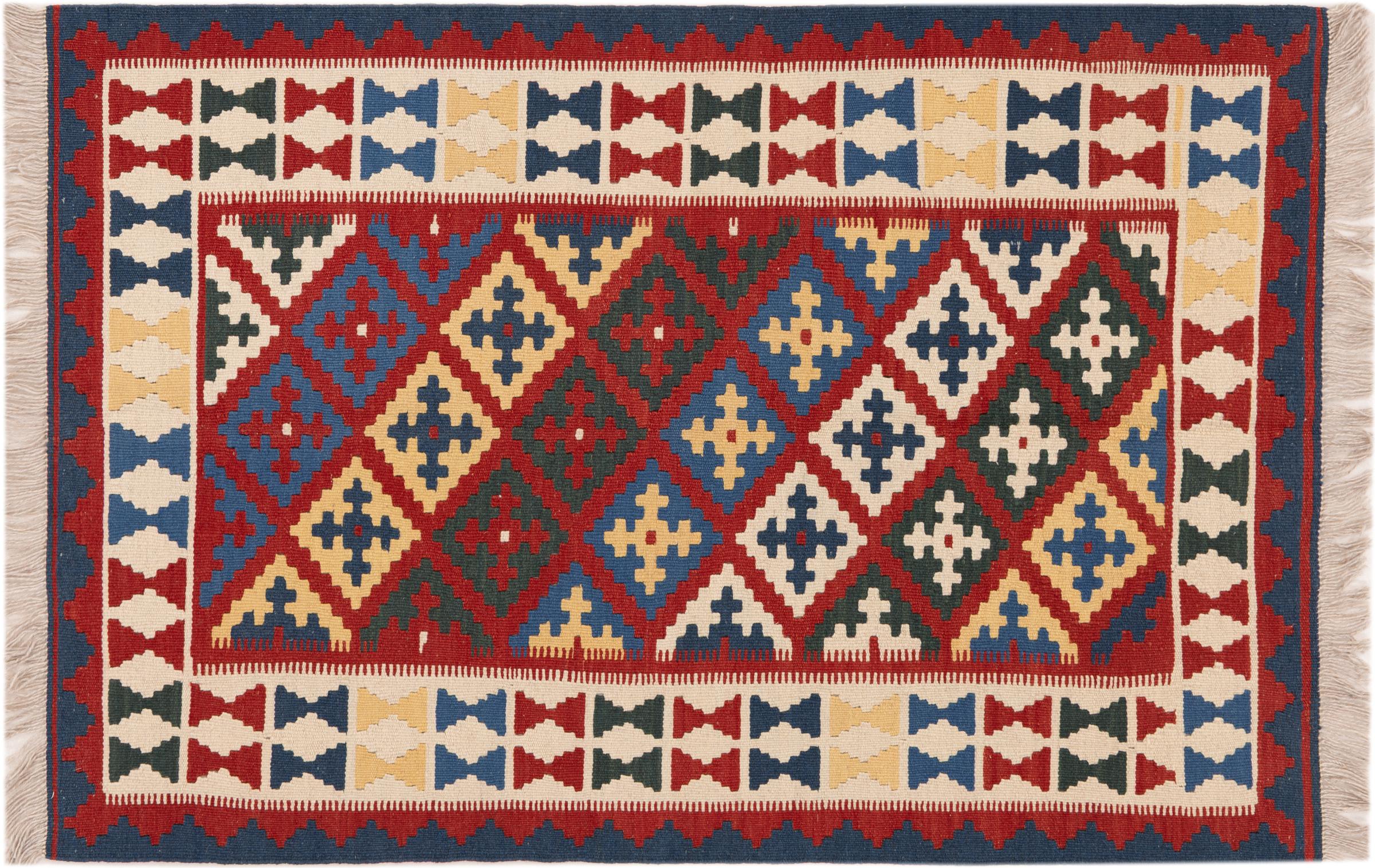Dit tapijt is met de hand gemaakt op een weefgetouw als plat weefgetouw. Flatweave is de term die wordt gebruikt om tapijten zonder pool te beschrijven. Zoals de naam al belooft, zijn deze tapijten geweven en niet geknoopt. Dit resulteert in een vlak tapijt met een gestructureerd oppervlak. Platweefsels zijn niet zo zacht en meestal dunner dan geknoopte tapijten. Tegelijkertijd zijn ze veel minder complex te vervaardigen en kunnen ze meestal aan beide zijden (voor- en achterkant) worden gelegd. Hun patronen zijn meestal geometrisch, wat wordt bepaald door de stof.