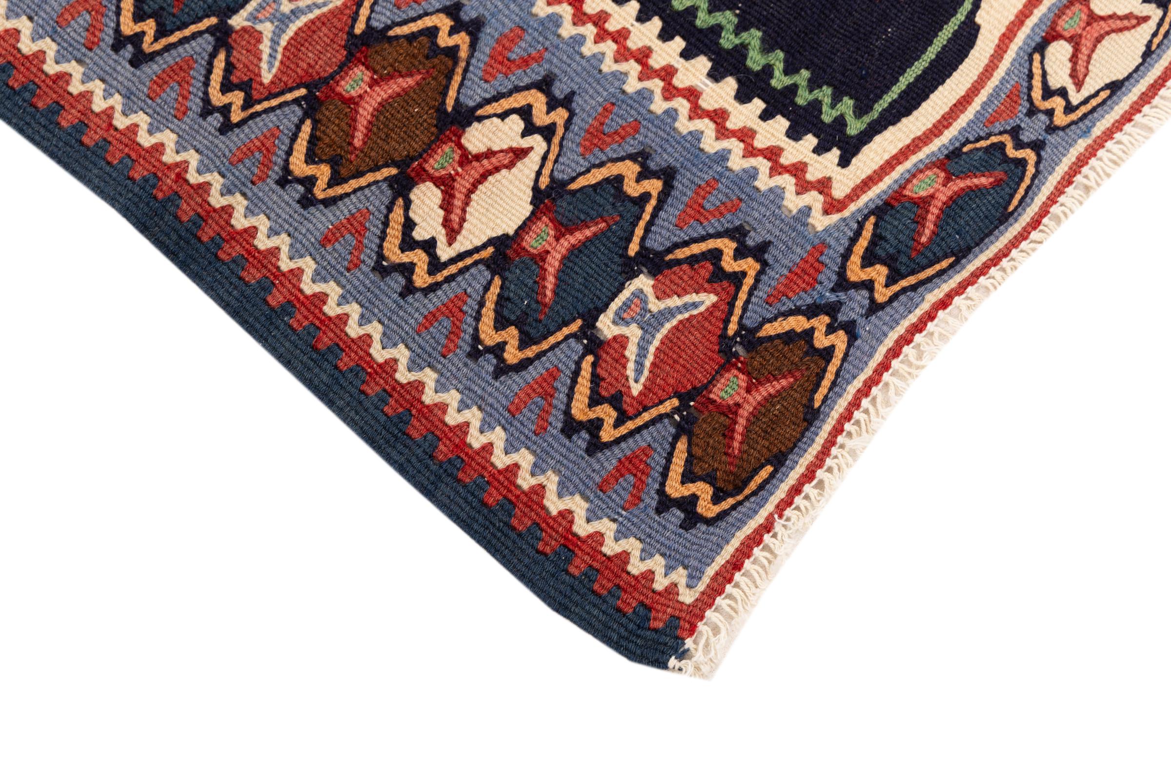 Dit Senneh tapijt is geknoopt in de provincie Koerdistan, in het westen van Iran. Dit unieke handgemaakte stuk is gemaakt van robuuste natuurlijke wol en is extreem duurzaam. Met zijn stevige structuur en rijk gedetailleerde ontwerp is dit Senneh tapijt geschikt als indrukwekkend en duurzaam decoratief element in drukbezochte ruimtes zoals de gang en woonkamer.