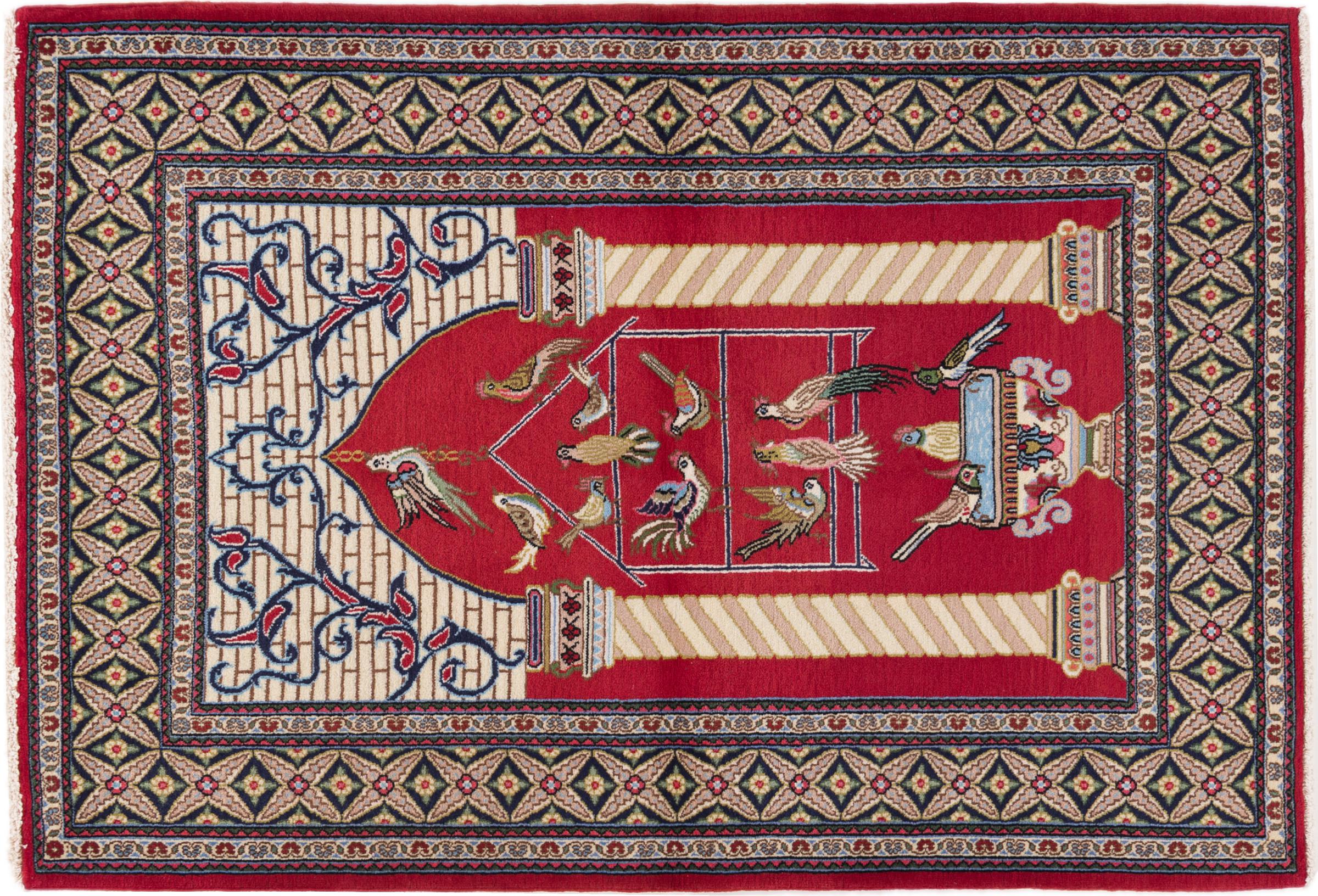 Tapijt ID: 29818700304 Grootte: 156x107 cm Dikte: ap. 10 mm Knoopdichtheid: 320 000 - 360 000 / m² Verwerking: Handgeknoopte Pool: Kurkwol met zijde Schering: Katoen Oorsprong: Perzië / Iran Leeftijd: Nieuw Gewicht: ap. 6 kg Op voorraad: Uniek - Nog maar 1 op voorraad