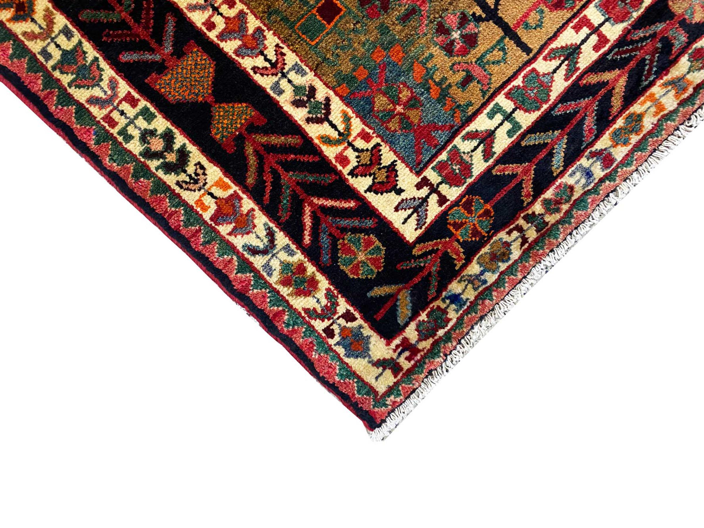 Dit tapijt behoort tot de dorps- en nomadentapijten uit Iran, het vroegere Perzië. Dit type tapijt wordt met de hand geknoopt in kleinere steden en dorpen in de oude traditie. Zelfs nomaden knopen nog steeds Perzische tapijten in de open lucht. De tapijten worden geknoopt zonder patroon en volledig vanaf de kop. Ze worden gekenmerkt door klassieke ornamenten, die in rechte en geometrische patronen zijn gerangschikt. Dankzij hun cultureel-traditionele oorsprong hebben deze tapijten een uniek karakter dat het oude Perzië belichaamt.