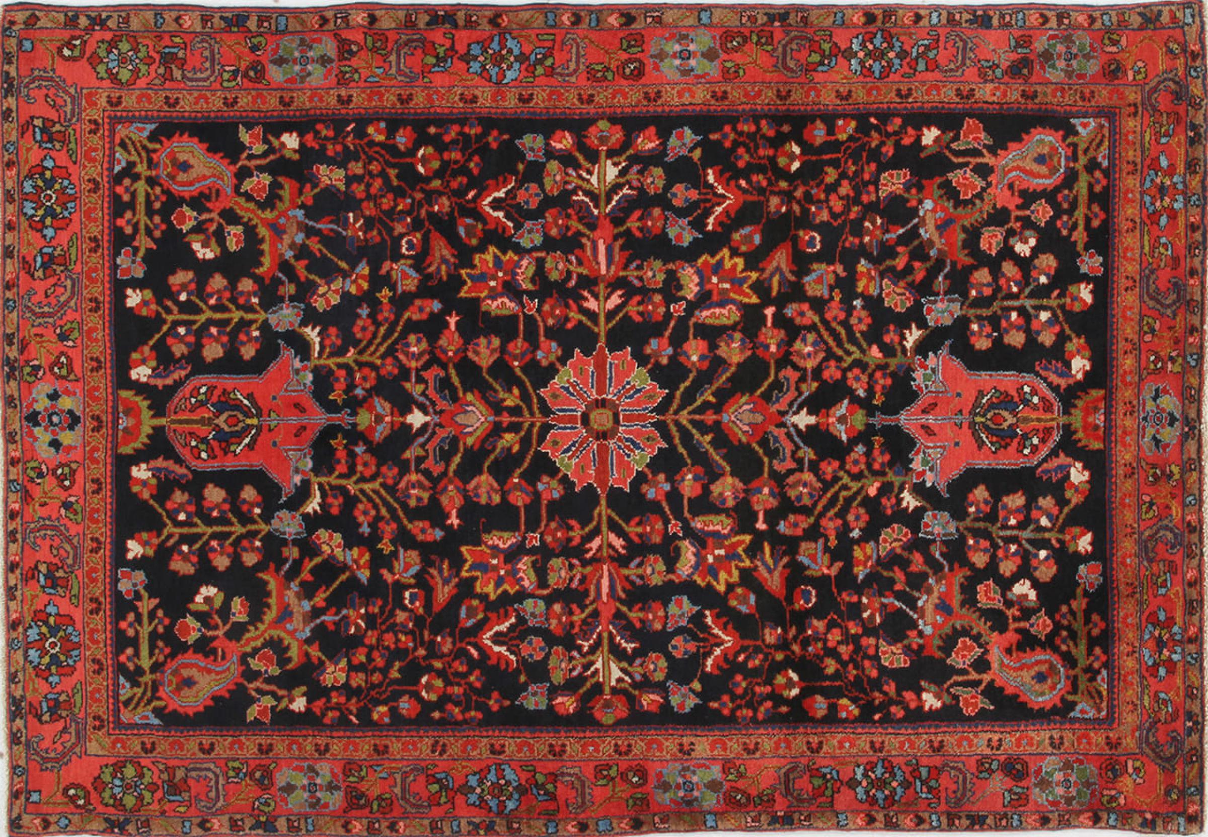Tapijt ID: 309975007697465 Grootte: 204x138 cm Dikte: ap. 8 mm Knoopdichtheid: 200 000 - 250 000 / m² Verwerking: Handgeknoopte Pool: Hand gesponnen wol Schering: Katoen Conditie / Conservering Perfect Oorsprong: Perzië / Iran Leeftijd: Antiek, boven 80 jaar Gewicht: ap. 10 kg Op voorraad: Uniek - Nog maar 1 op voorraad