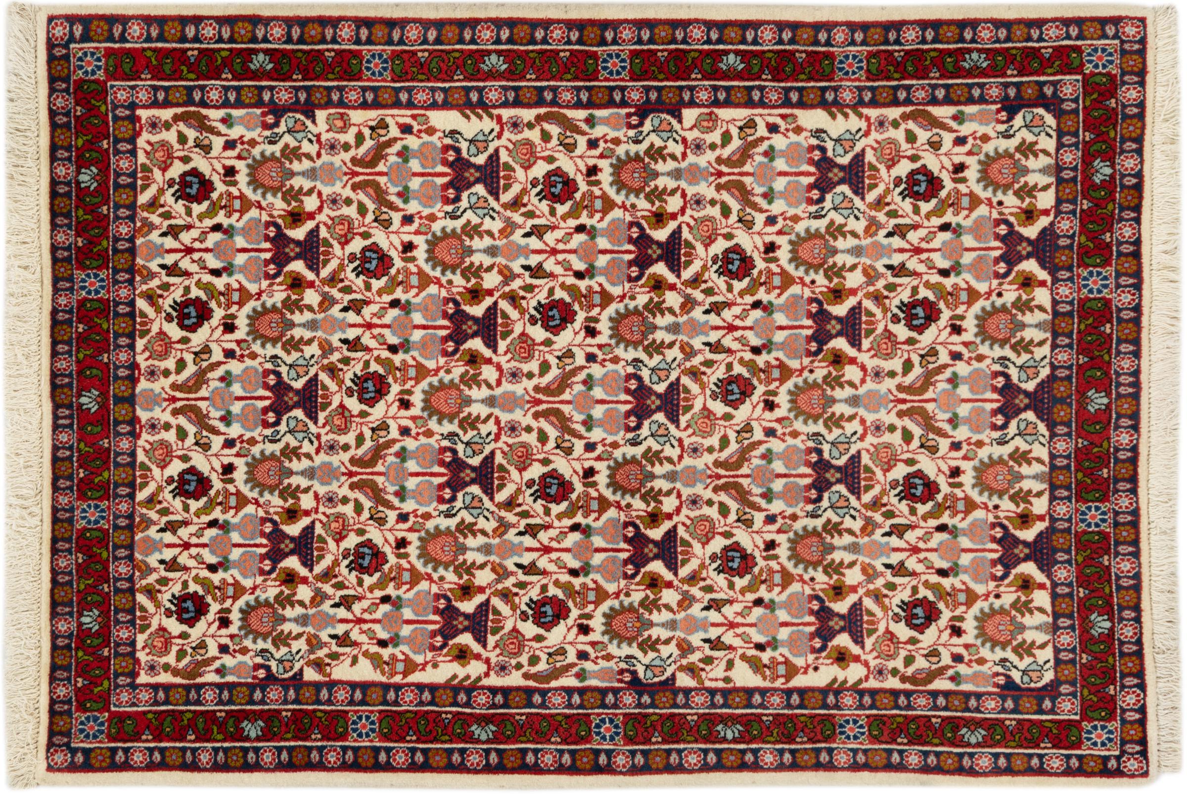 Tapijt ID: 296988001396969 Grootte: 148x106 cm Dikte: ap. 12 mm Knoopdichtheid: 200 000 - 250 000 / m² Verwerking: Handgeknoopte Pool: Wol Schering: Katoen Oorsprong: Perzië / Iran Leeftijd: 20-30 jaar (Nieuw) Gewicht: ap. 5 kg Ook wel bekend als Huseinabad Op voorraad: Uniek - Nog maar 1 op voorraad