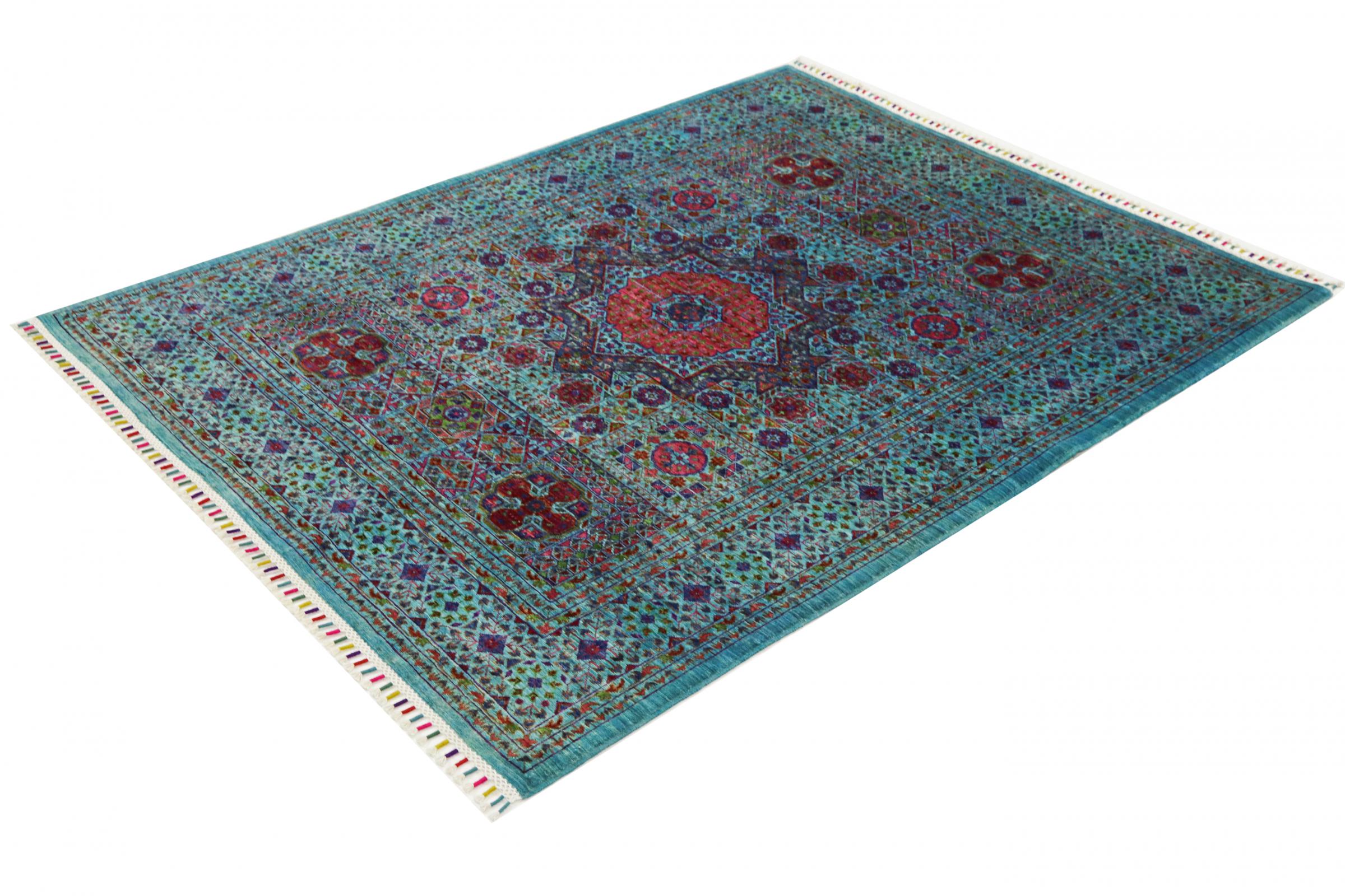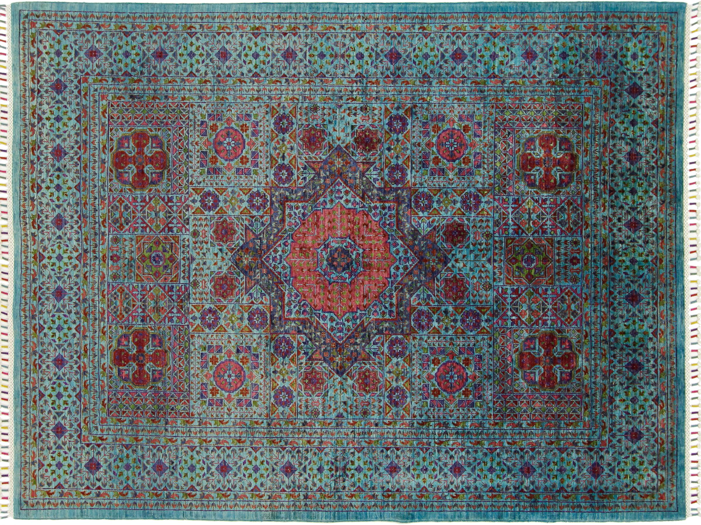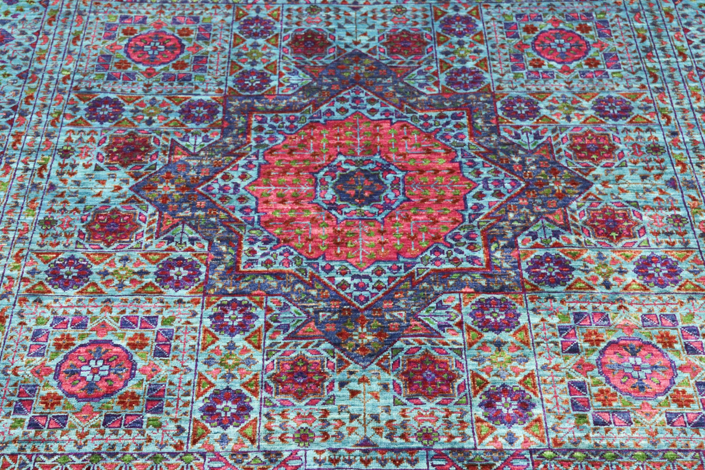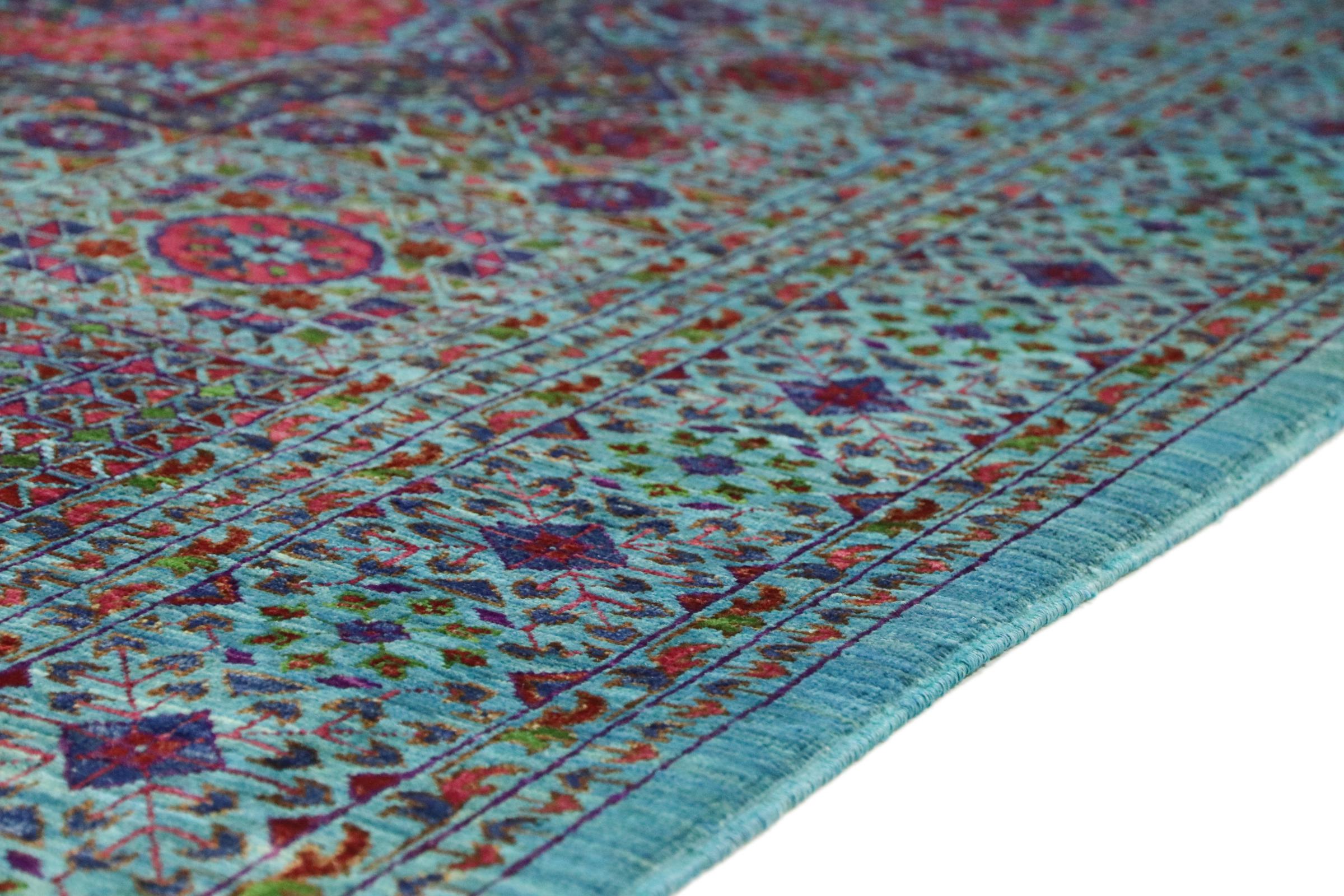 Deze Mamluk is met de hand geknoopt en maakt indruk met zijn opwindende elegantie. Het ontwerp is extravagant en uniek, maar niet erg bekend. De kleuren van het oosterse tapijt zijn modieus gecombineerd en de unieke motieven brengen gegarandeerd leven en bewondering in uw kamer.