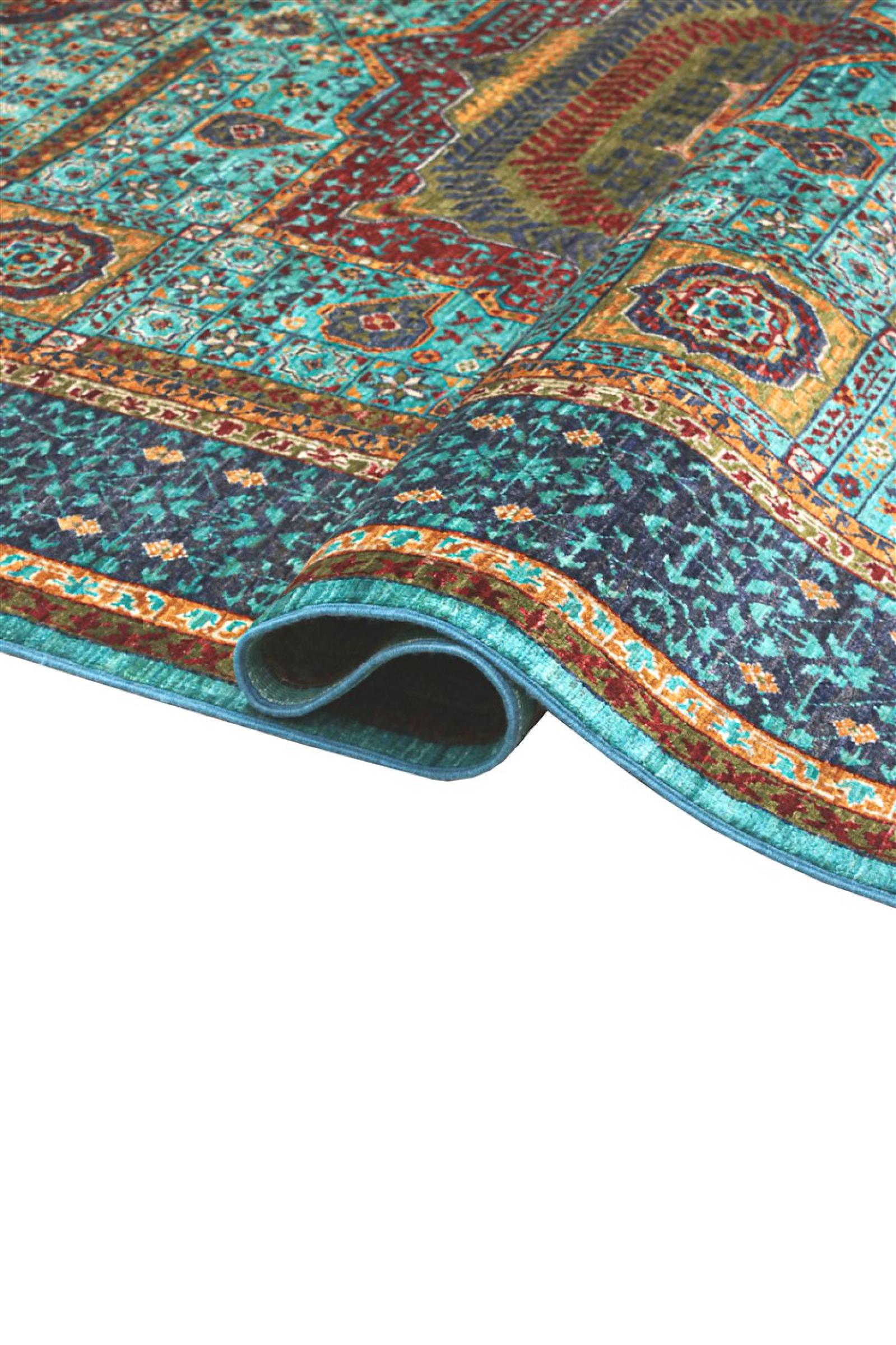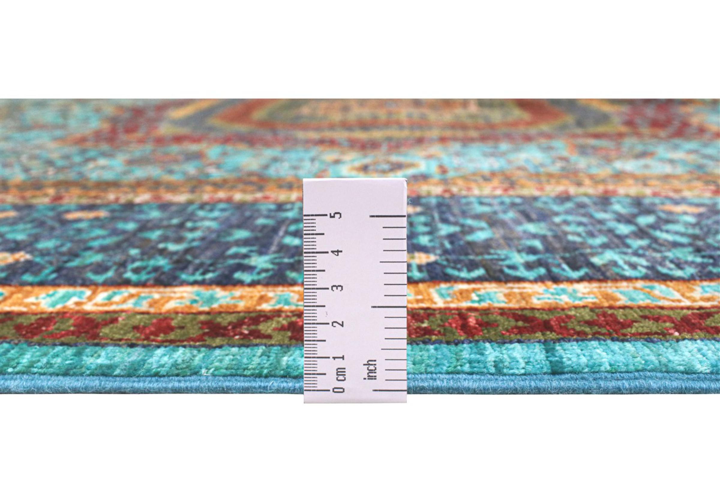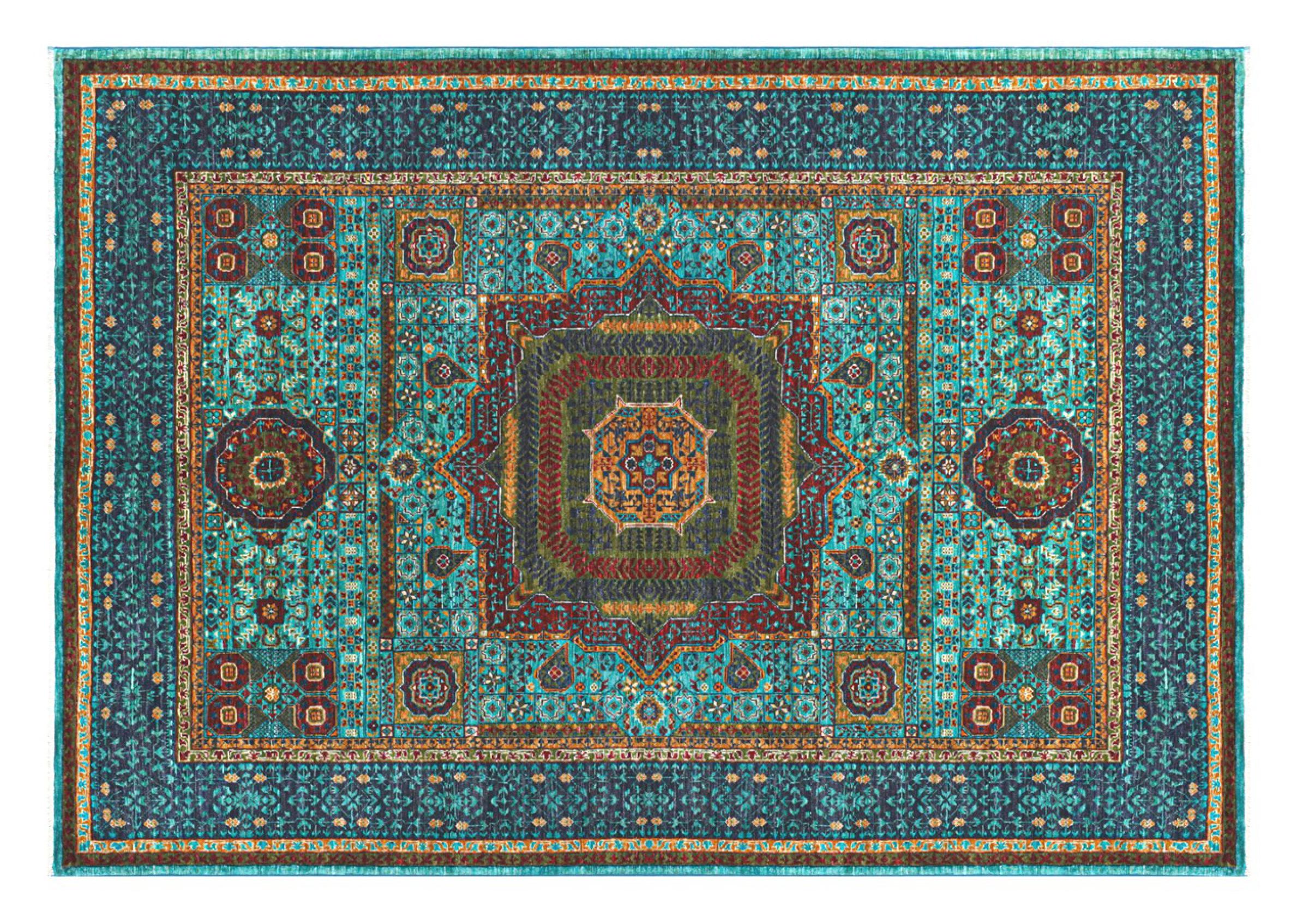 Deze Mamluk is met de hand geknoopt en maakt indruk met zijn opwindende elegantie. Het ontwerp is extravagant en uniek, maar niet erg bekend. De kleuren van het oosterse tapijt zijn modieus gecombineerd en de unieke motieven brengen gegarandeerd leven en bewondering in uw kamer.