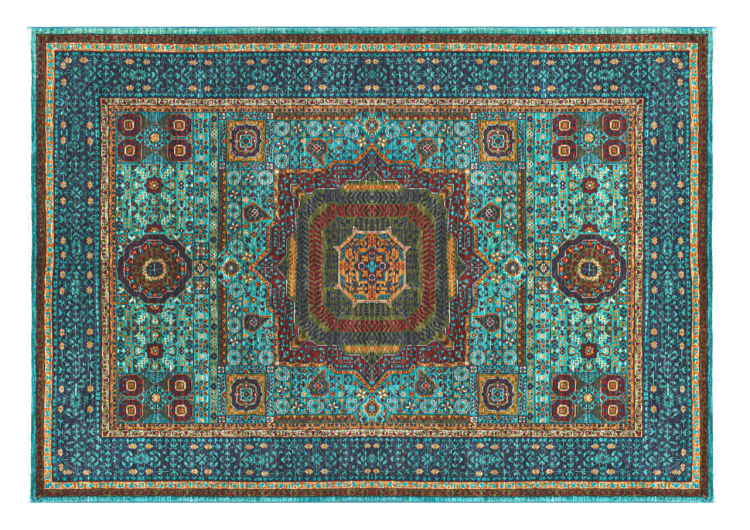Dit tapijt is gemaakt van handgesponnen schapenwol van de hoogste kwaliteit. Vooral in Iran (voormalig Perzië), Afghanistan en Pakistan wordt de wol nog met de hand gesponnen voordat het eigenlijke knopen van het tapijt begint. Wol heeft zich door de eeuwen heen bewezen als een natuurlijk en extreem slijtvast materiaal. Het heeft onder andere vuilafstotende en warmte-isolerende eigenschappen. Tegelijkertijd is wol onvergelijkbaar zacht en heeft het een natuurlijke glans.