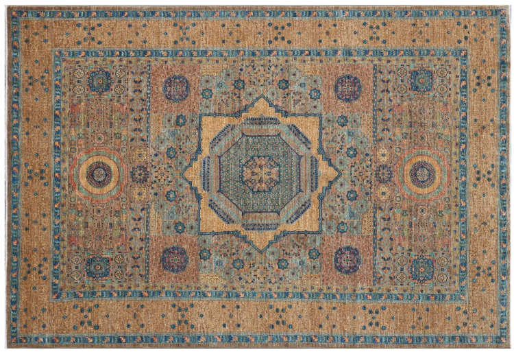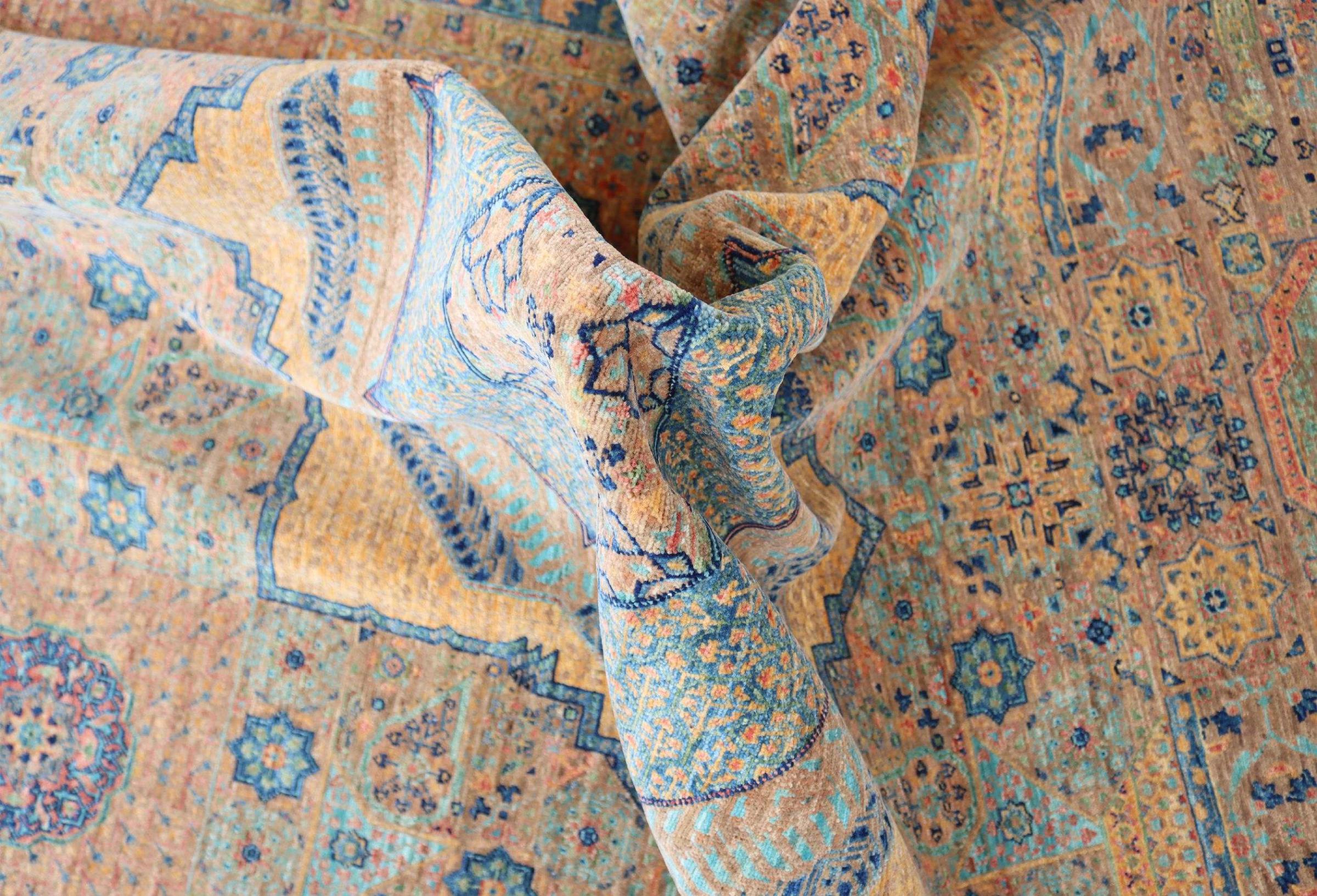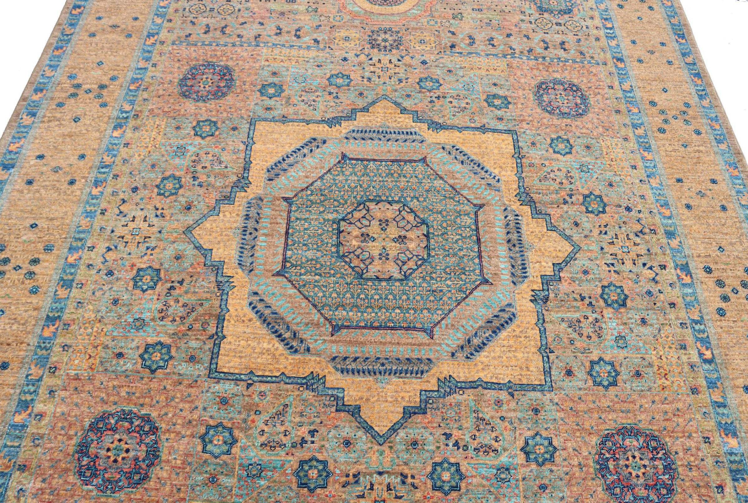 Deze Mamluk is met de hand geknoopt en maakt indruk met zijn opwindende elegantie. Het ontwerp is extravagant en uniek, maar niet erg bekend. De kleuren van het oosterse tapijt zijn modieus gecombineerd en de unieke motieven brengen gegarandeerd leven en bewondering in uw kamer.