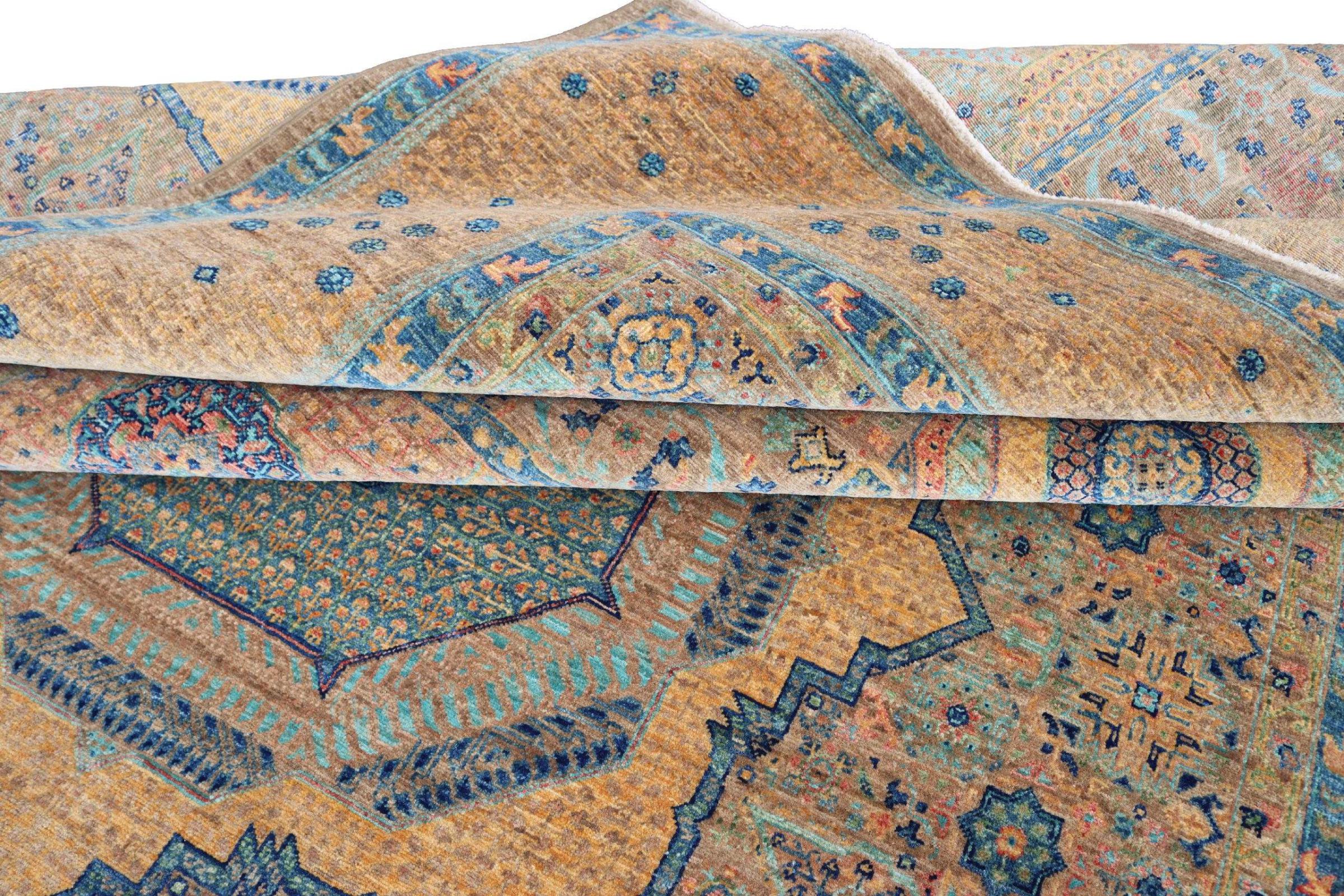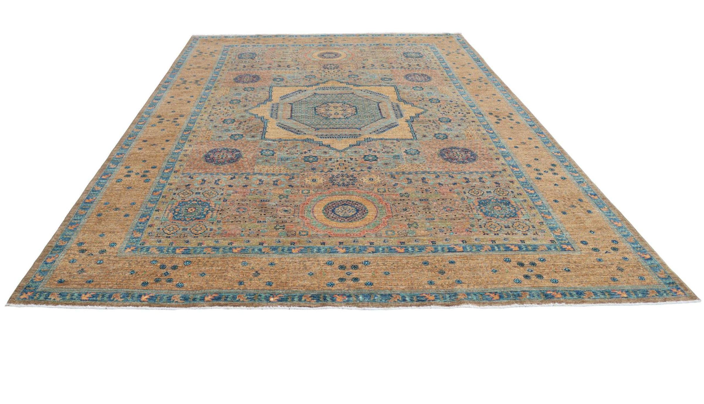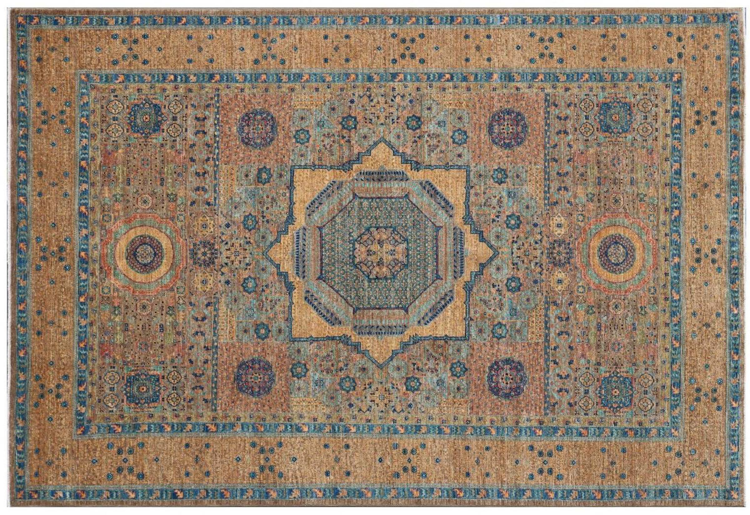 Deze Mamluk is met de hand geknoopt en maakt indruk met zijn opwindende elegantie. Het ontwerp is extravagant en uniek, maar niet erg bekend. De kleuren van het oosterse tapijt zijn modieus gecombineerd en de unieke motieven brengen gegarandeerd leven en bewondering in uw kamer.