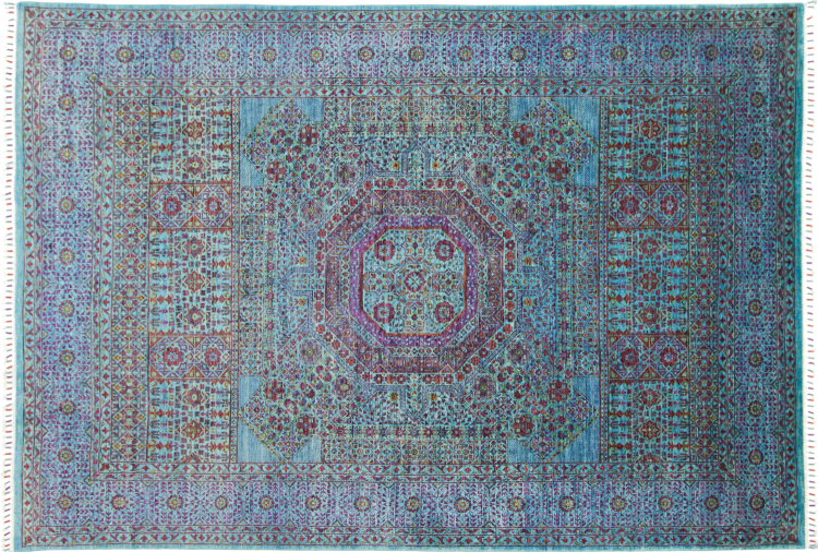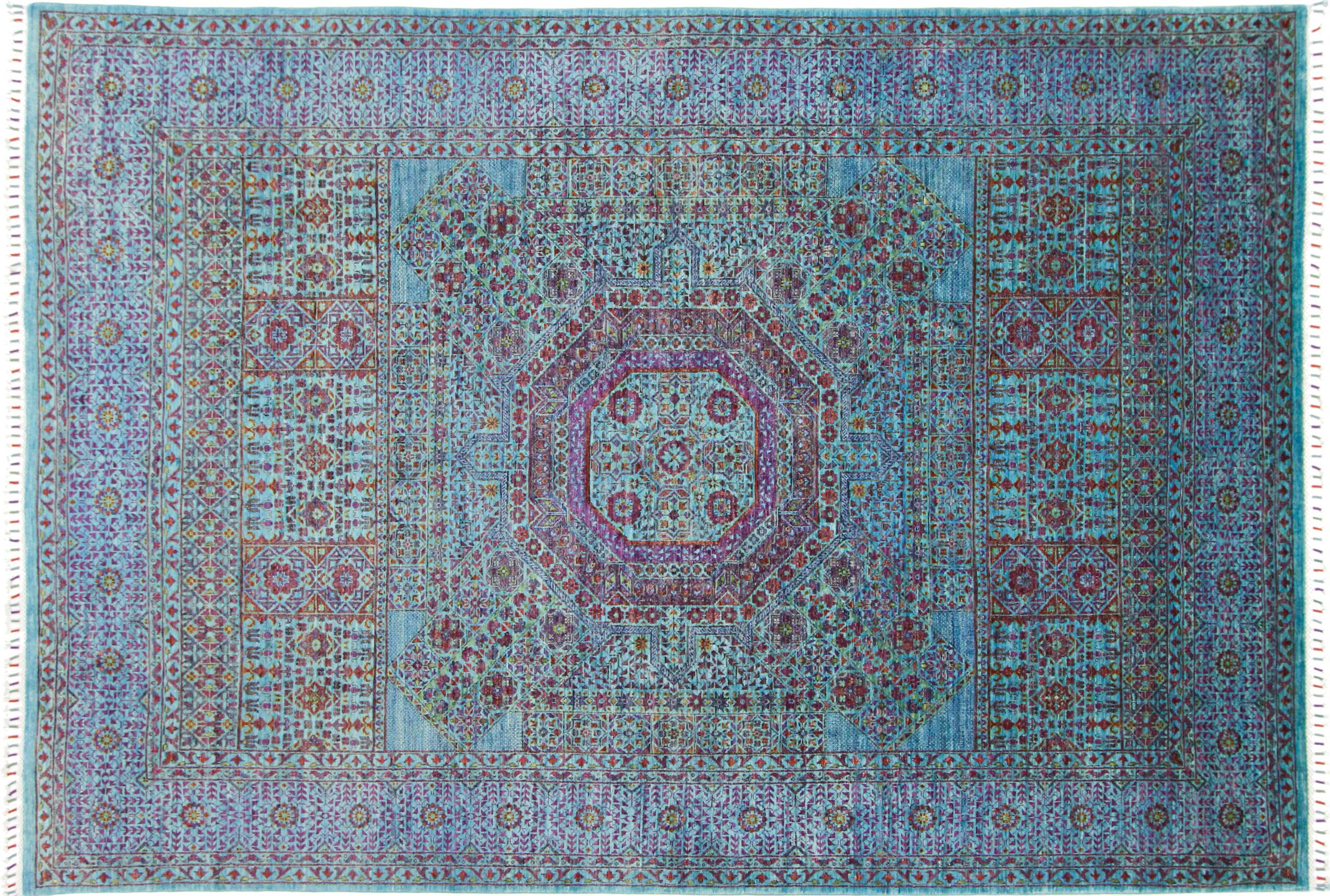 Deze Mamluk is met de hand geknoopt en maakt indruk met zijn opwindende elegantie. Het ontwerp is extravagant en uniek, maar niet erg bekend. De kleuren van het oosterse tapijt zijn modieus gecombineerd en de unieke motieven brengen gegarandeerd leven en bewondering in uw kamer.