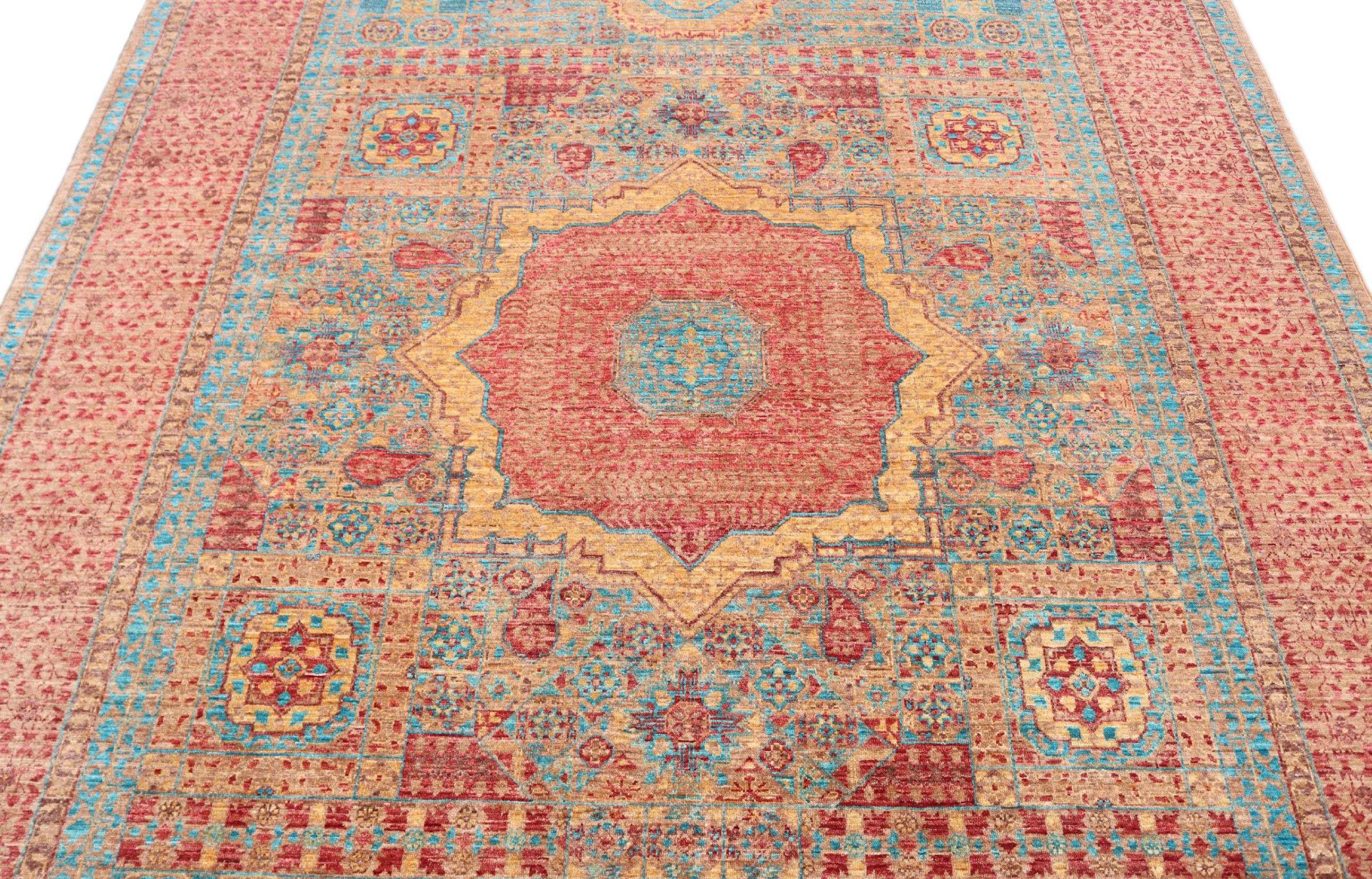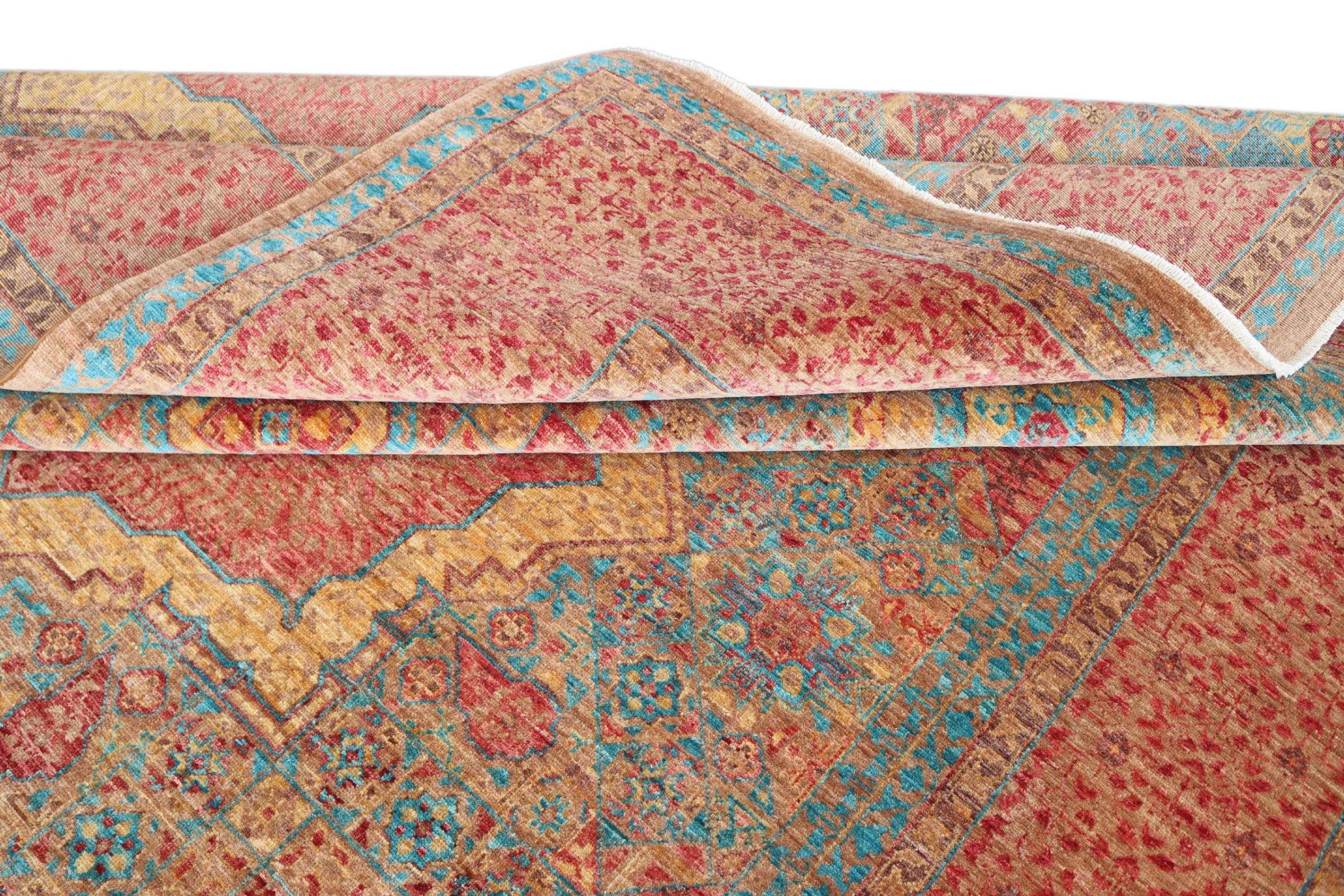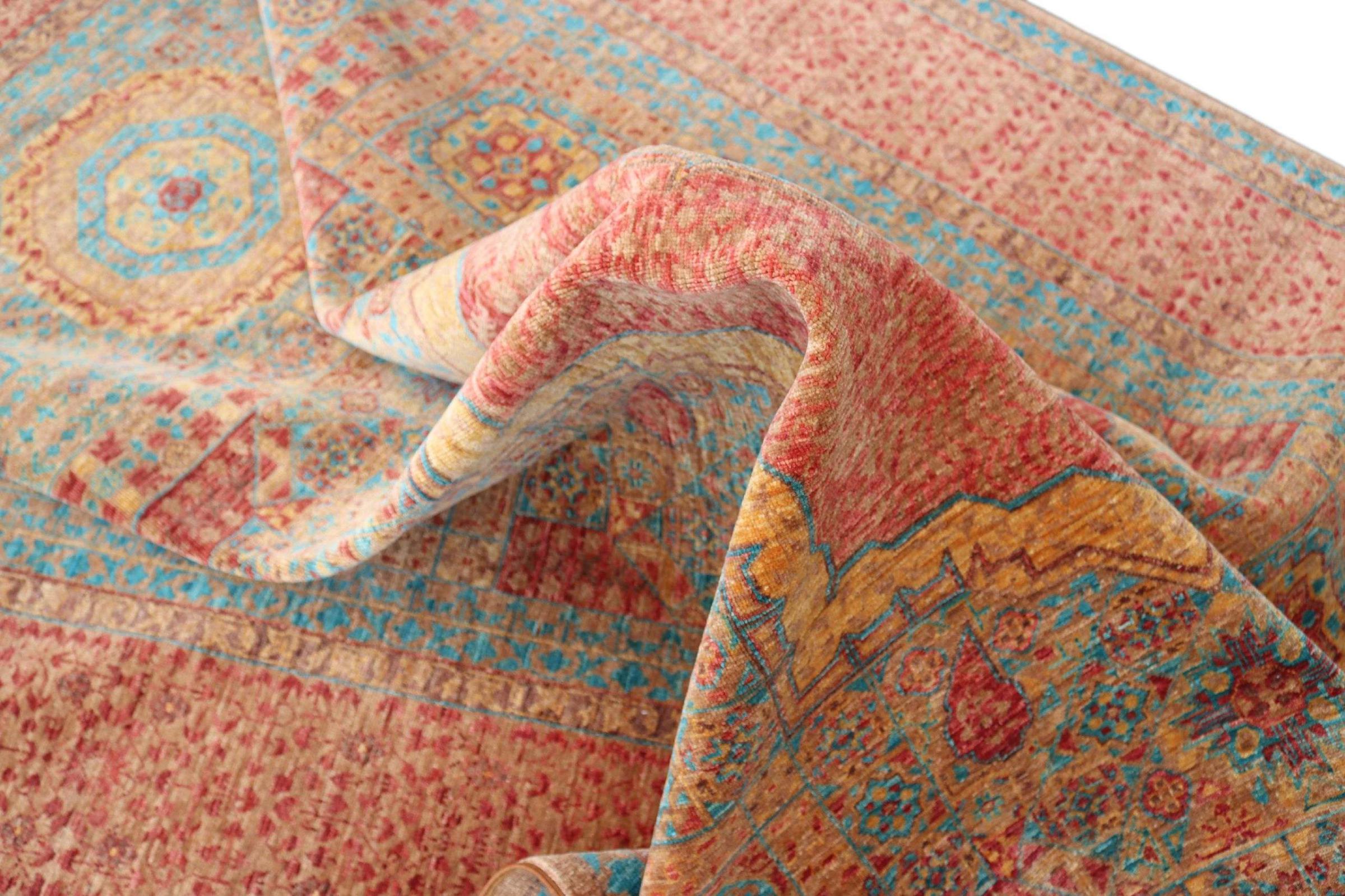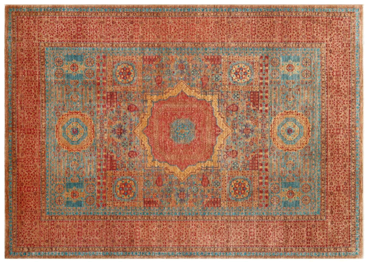 Deze Mamluk is met de hand geknoopt en maakt indruk met zijn opwindende elegantie. Het ontwerp is extravagant en uniek, maar niet erg bekend. De kleuren van het oosterse tapijt zijn modieus gecombineerd en de unieke motieven brengen gegarandeerd leven en bewondering in uw kamer.