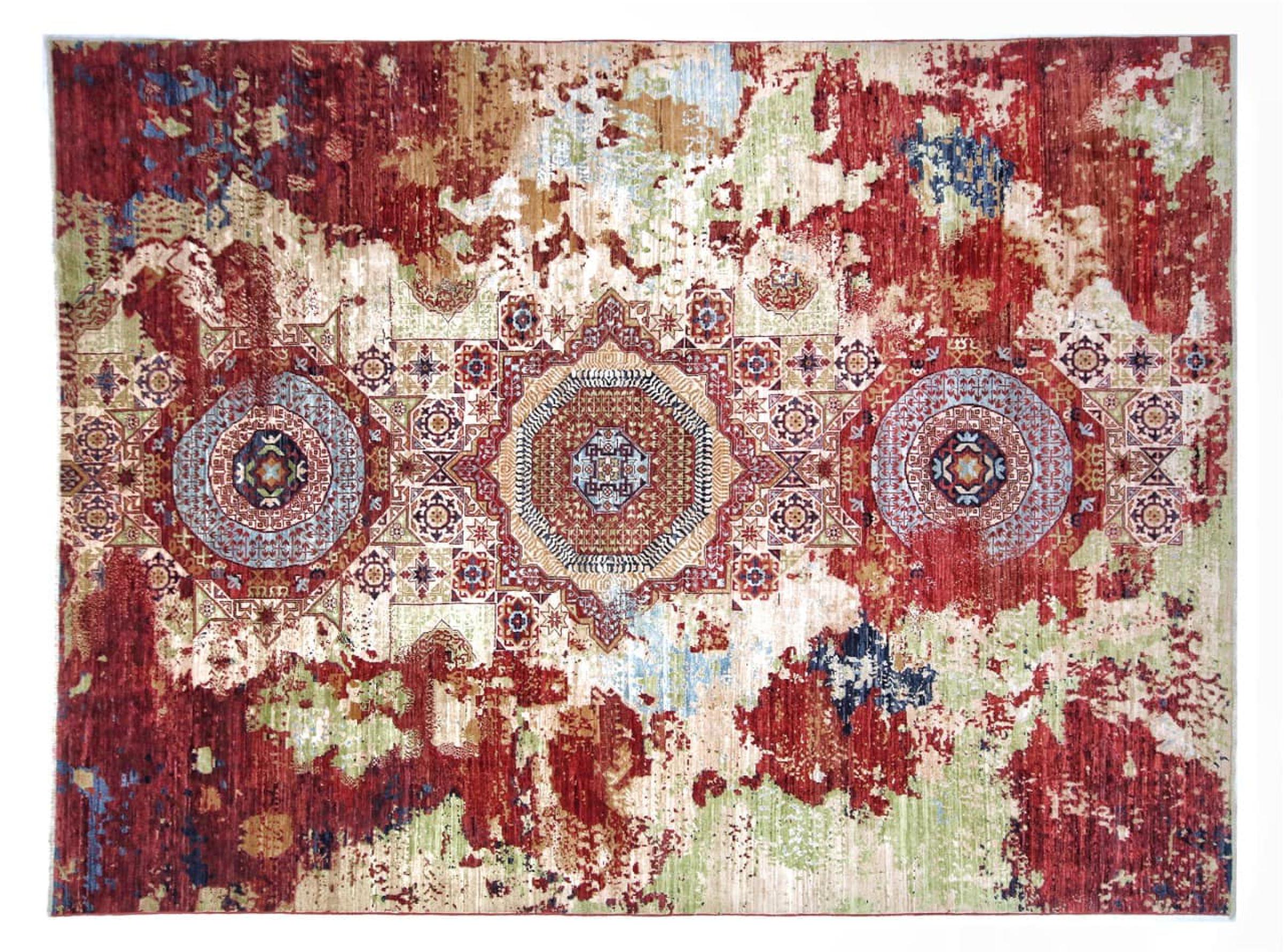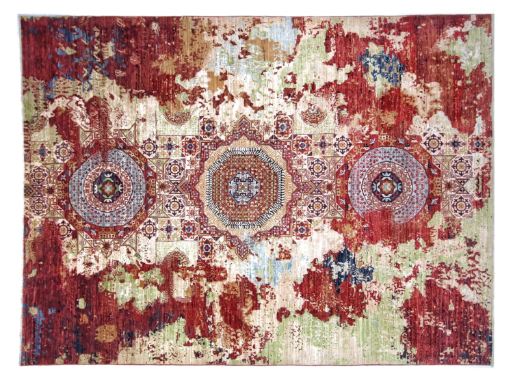 Deze Mamluk is met de hand geknoopt en maakt indruk met zijn opwindende elegantie. Het ontwerp is extravagant en uniek, maar niet erg bekend. De kleuren van het oosterse tapijt zijn modieus gecombineerd en de unieke motieven brengen gegarandeerd leven en bewondering in uw kamer.