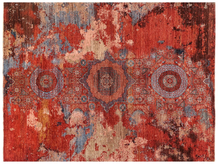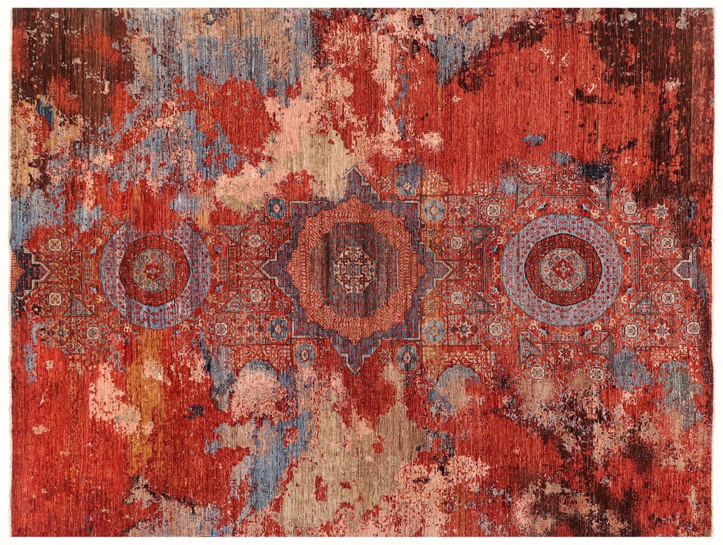 Deze Mamluk is met de hand geknoopt en maakt indruk met zijn opwindende elegantie. Het ontwerp is extravagant en uniek, maar niet erg bekend. De kleuren van het oosterse tapijt zijn modieus gecombineerd en de unieke motieven brengen gegarandeerd leven en bewondering in uw kamer.