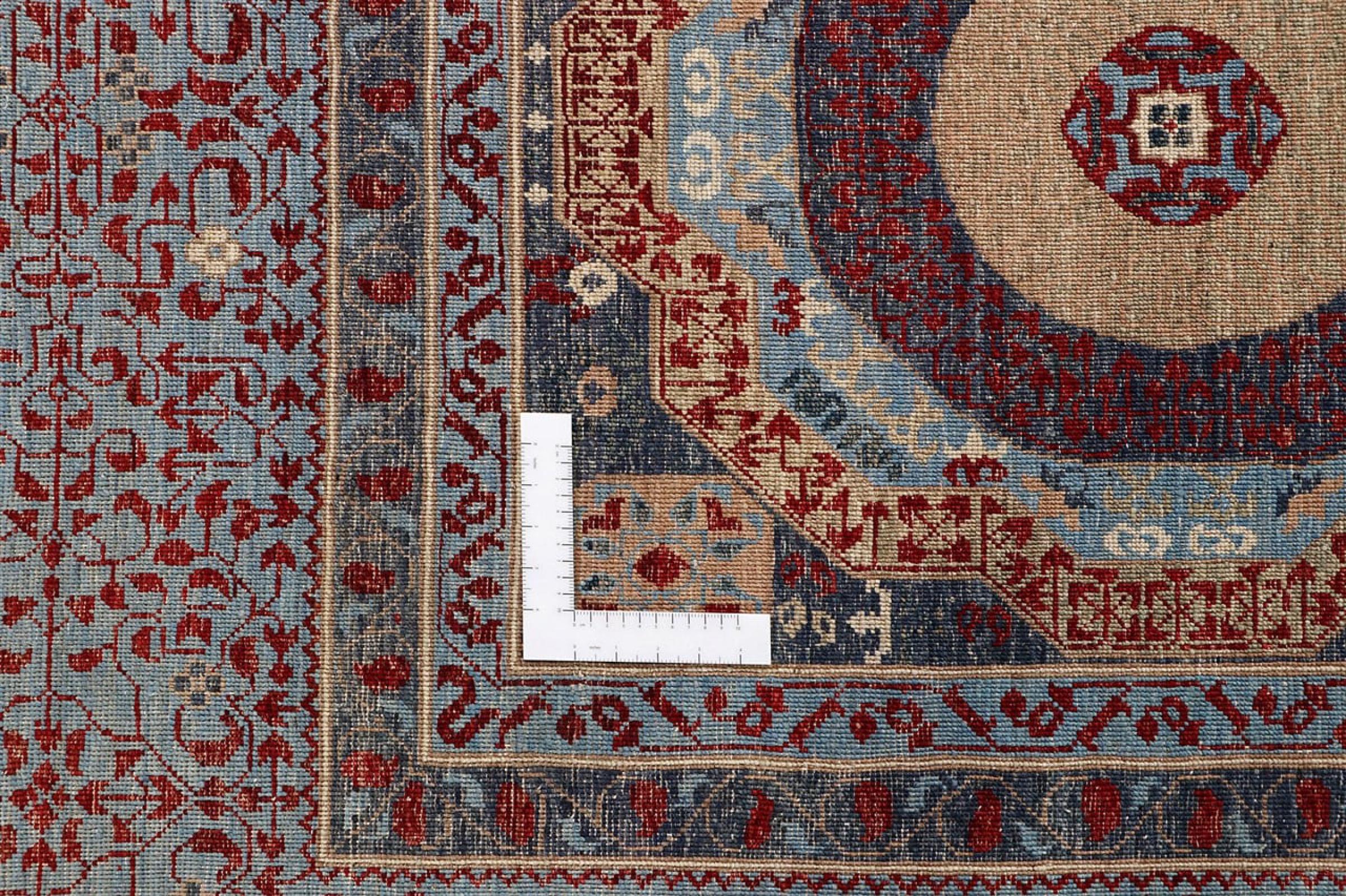 Deze Mamluk is met de hand geknoopt en maakt indruk met zijn opwindende elegantie. Het ontwerp is extravagant en uniek, maar niet erg bekend. De kleuren van het oosterse tapijt zijn modieus gecombineerd en de unieke motieven brengen gegarandeerd leven en bewondering in uw kamer.