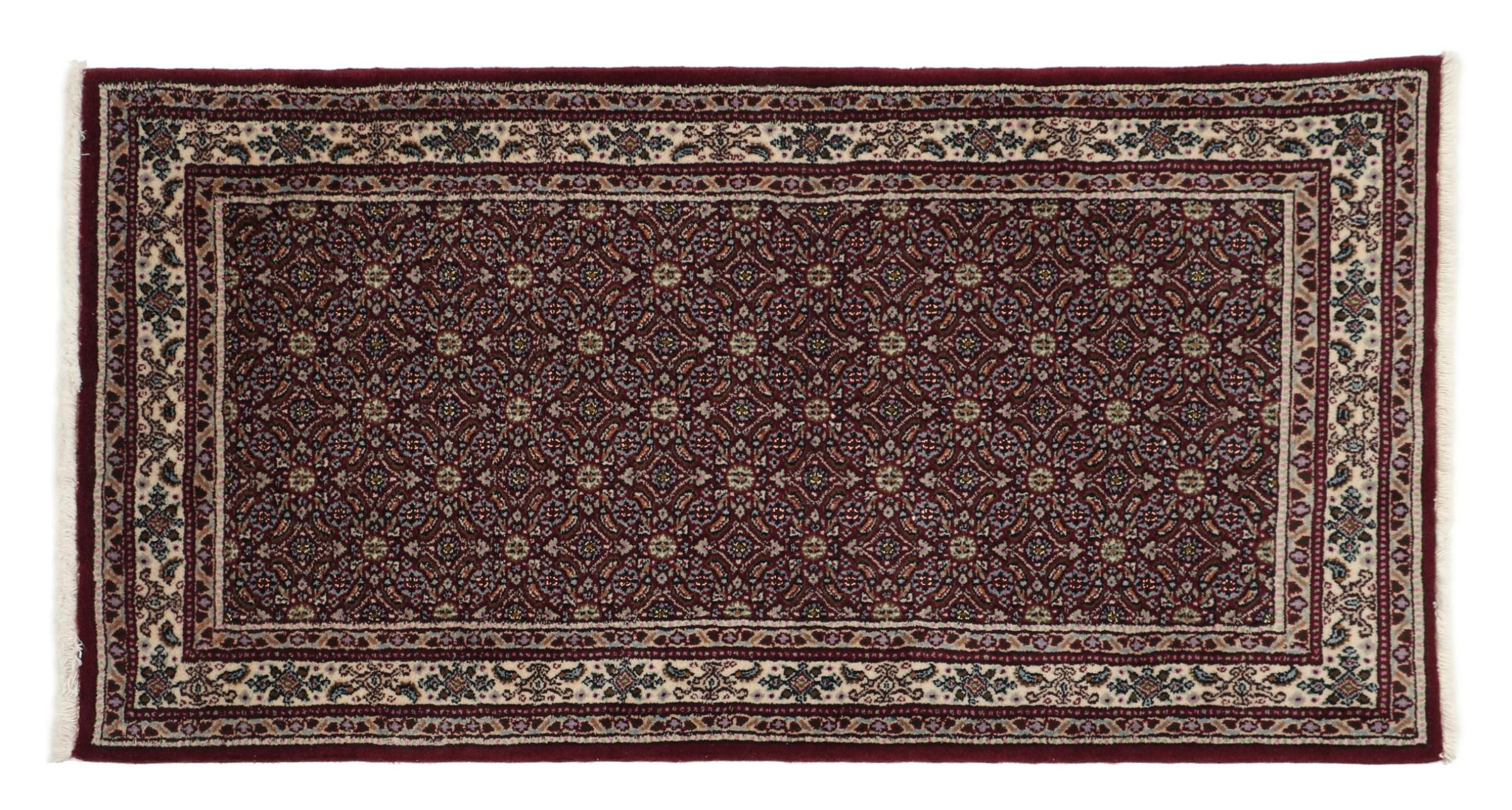 Tapijt ID: 308925001674141 Grootte: 136x71 cm Dikte: ap. 12 mm Knoopdichtheid: 320 000 - 360 000 / m² Verwerking: Handgeknoopte Pool: Hand gesponnen wol Schering: Katoen Oorsprong: Perzië / Iran Leeftijd: Nieuw Gewicht: ap. 3 kg Op voorraad: Uniek - Nog maar 1 op voorraad