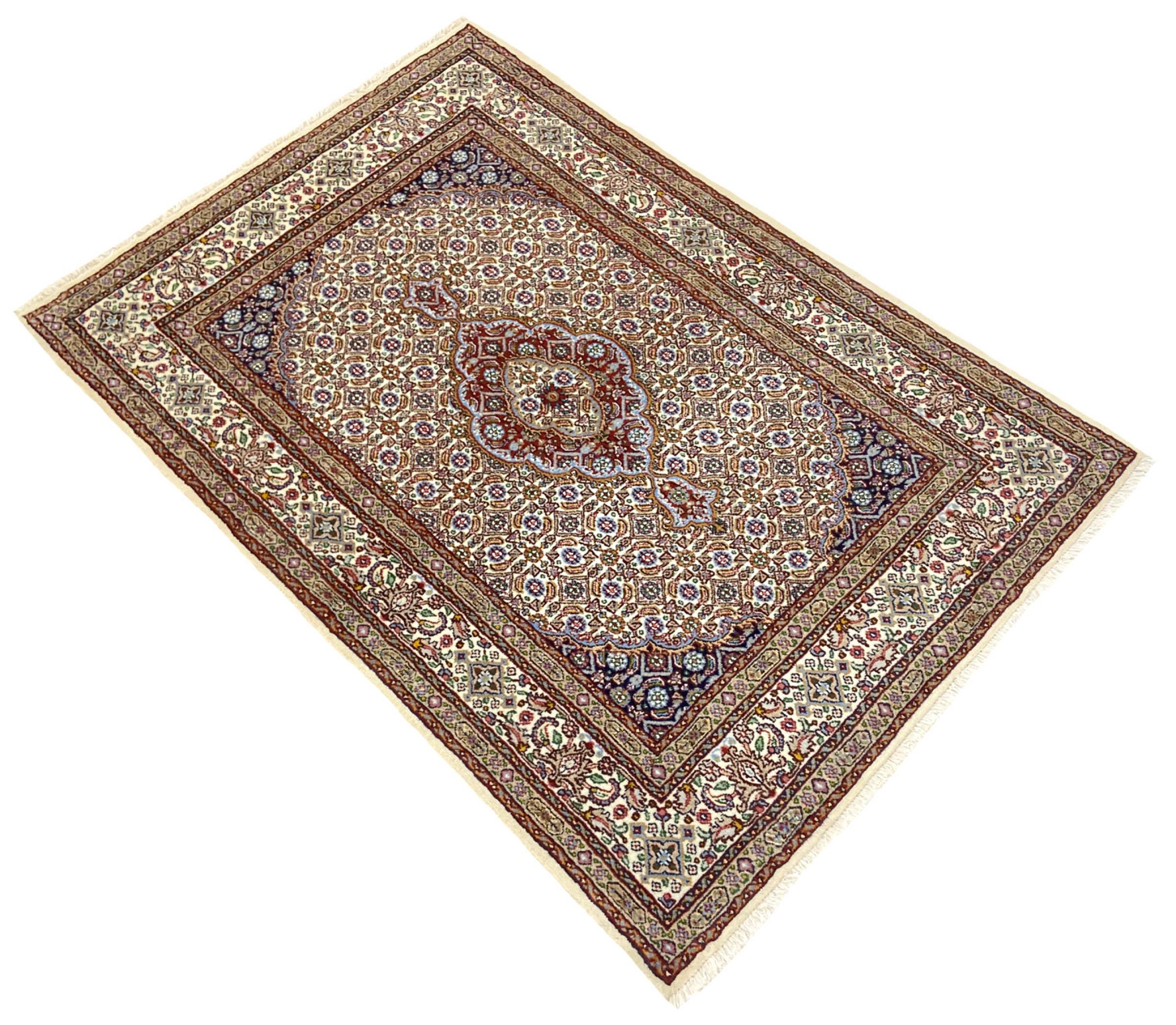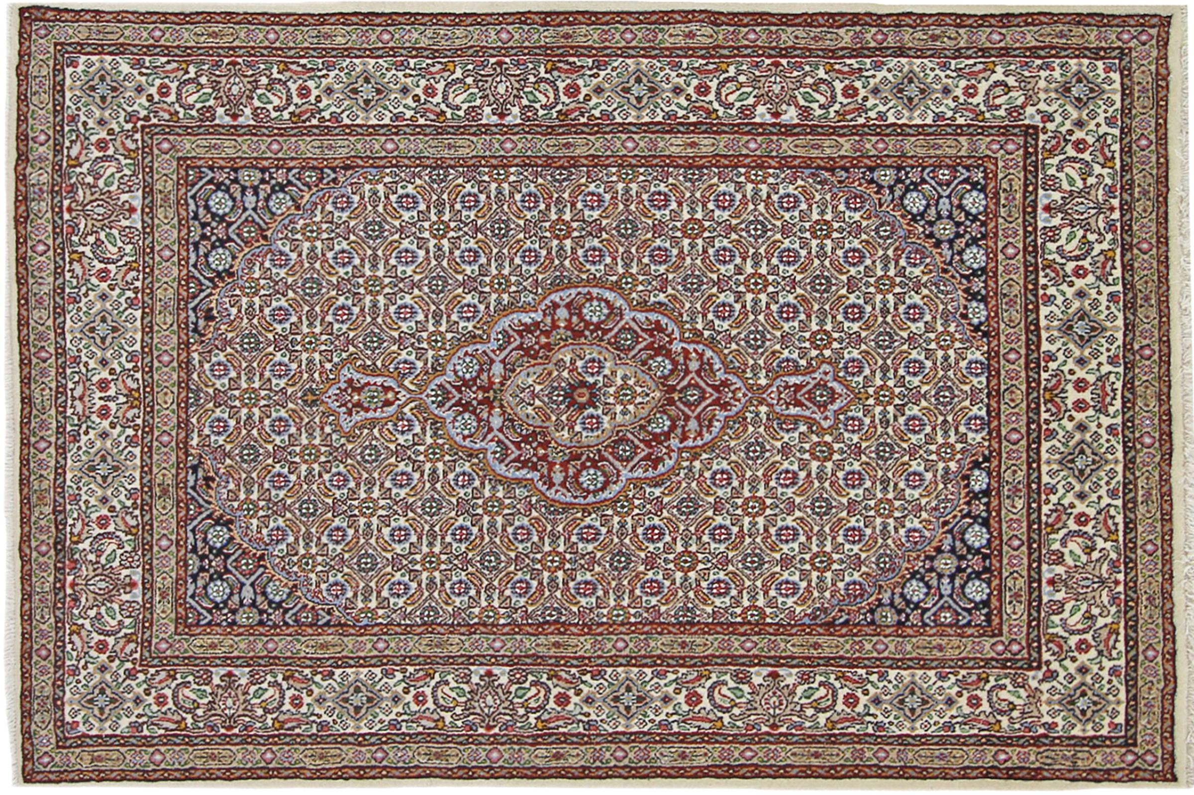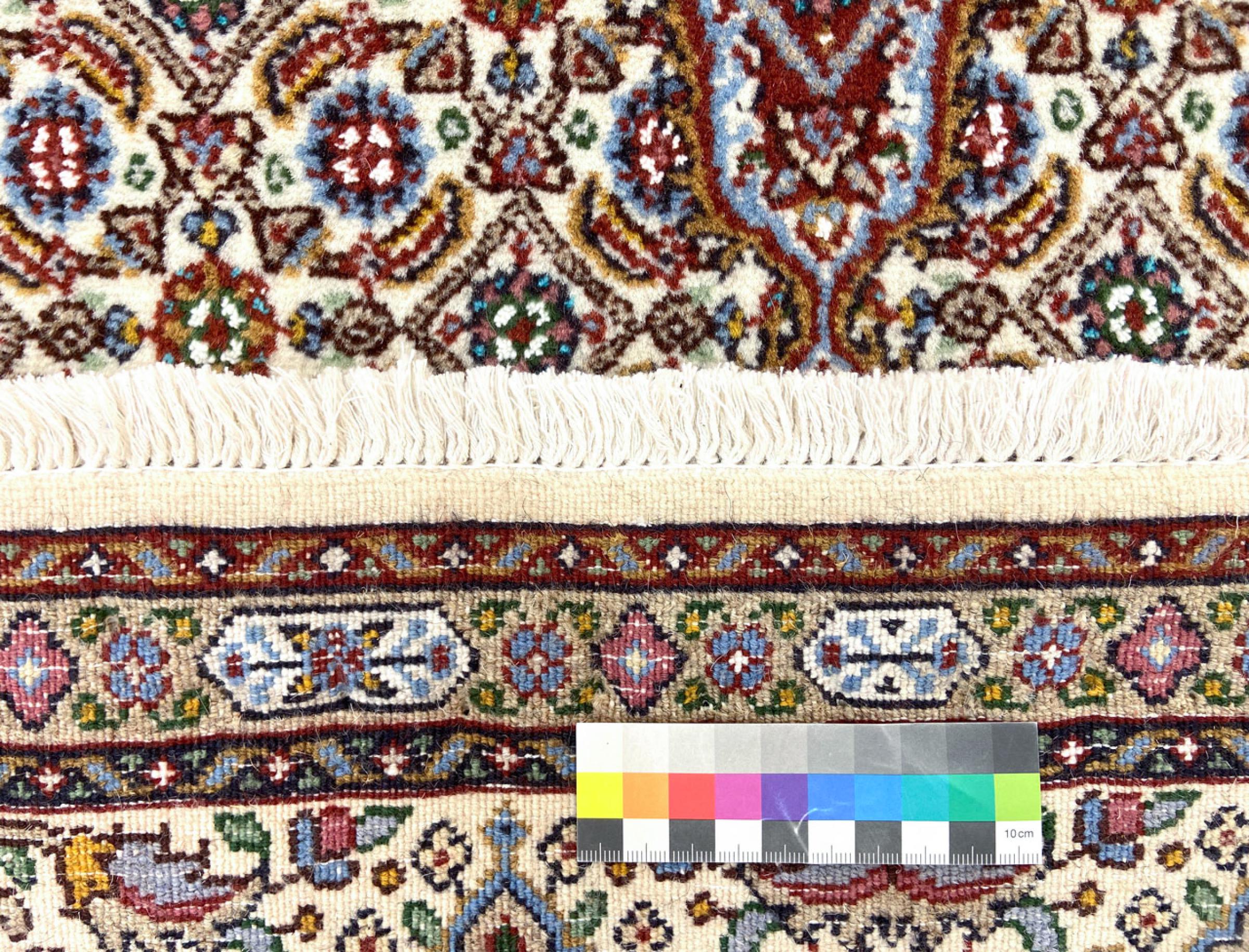 Dit tapijt uit Moud, een stadje 300 km ten zuiden van Mashhad, is op het eerste gezicht indrukwekkend. Het typische Herati-patroon of tuindessin wordt gewaardeerd door kenners en liefhebbers van echte Perzische tapijten. Als u op zoek bent naar een handgemaakt tapijt van fijne kwaliteit met een zeer uniek en onderscheidend ontwerp, dan is dit type tapijt absoluut iets voor u.