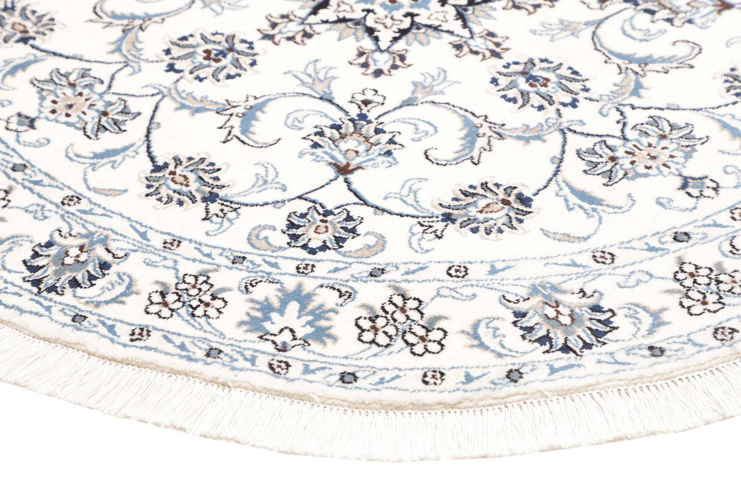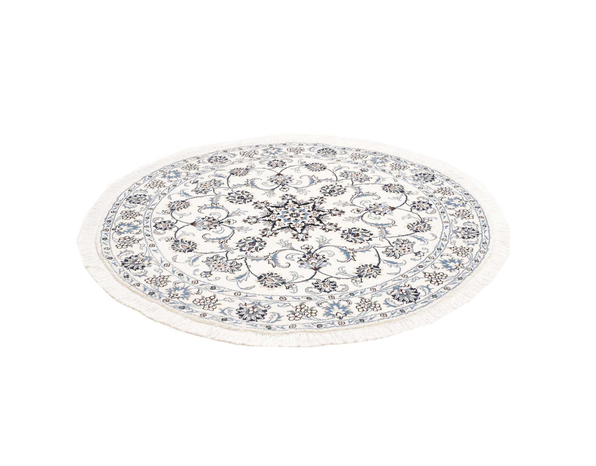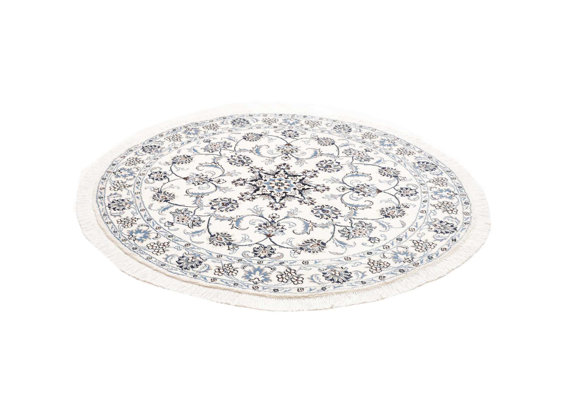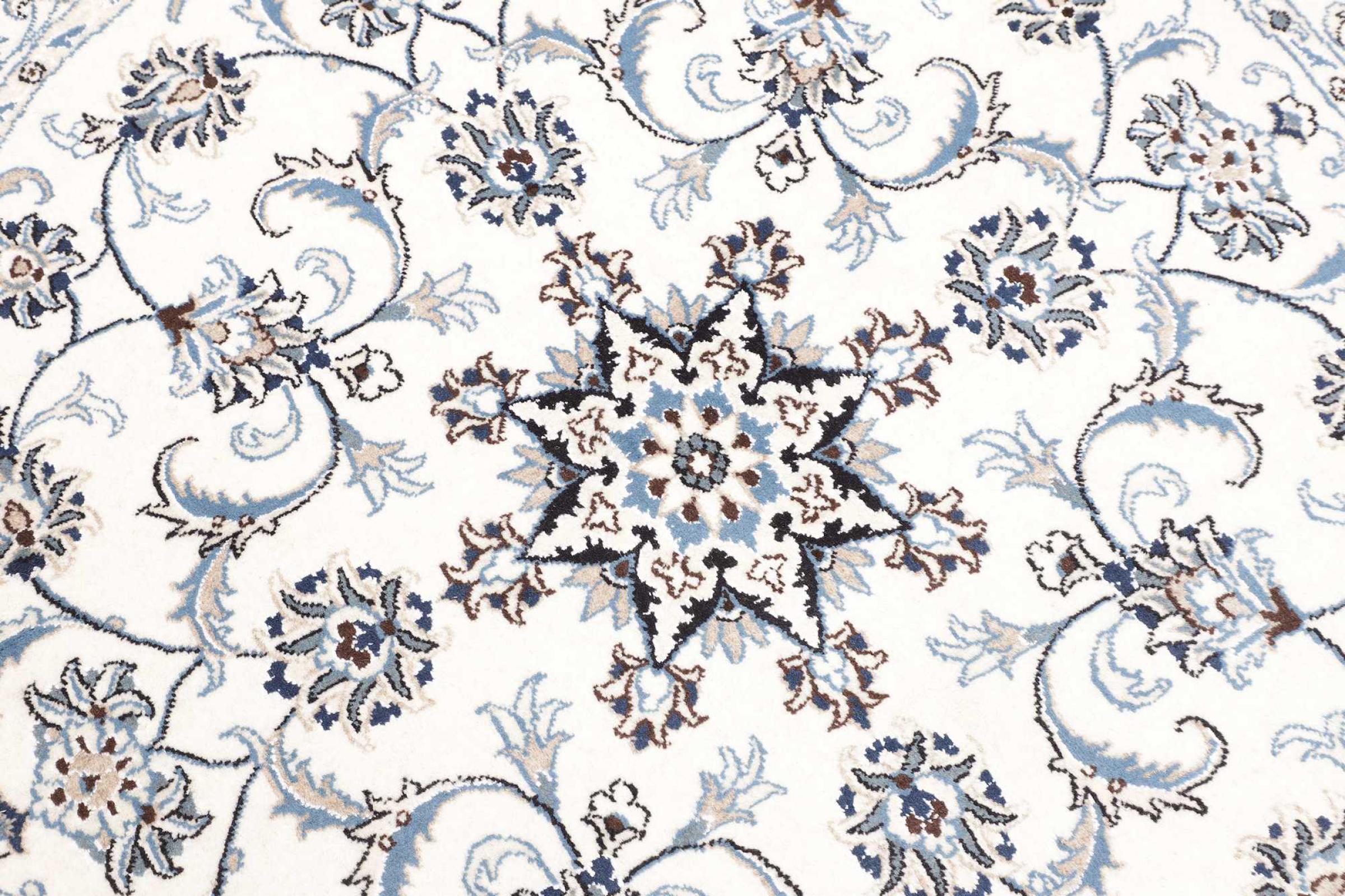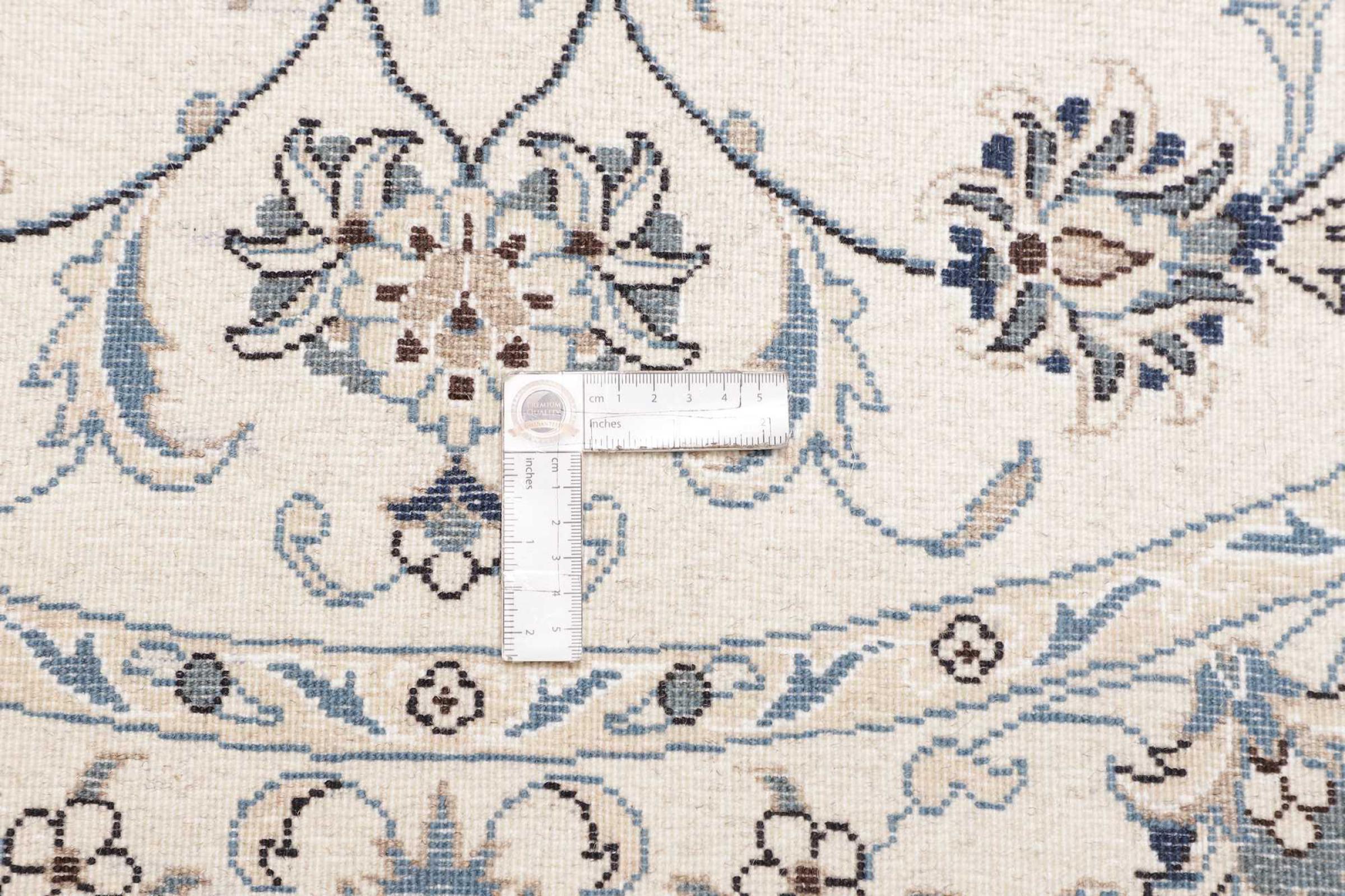 Dit Nain tapijt is geclassificeerd als 12La. Het heeft een elegante en verfijnde look met zijn typische Nain-kleuring. Dit Perzische tapijt werd met de hand geknoopt in de stad Nain, gelegen aan het westelijke uiteinde van de Dasht-e-Kavir woestijn, uit wol van hoge kwaliteit en natuurlijke zijde. Met zijn grootte van 12La is het niet zo fijn gedetailleerd met ornamenten als een Nain 9La of 6La.