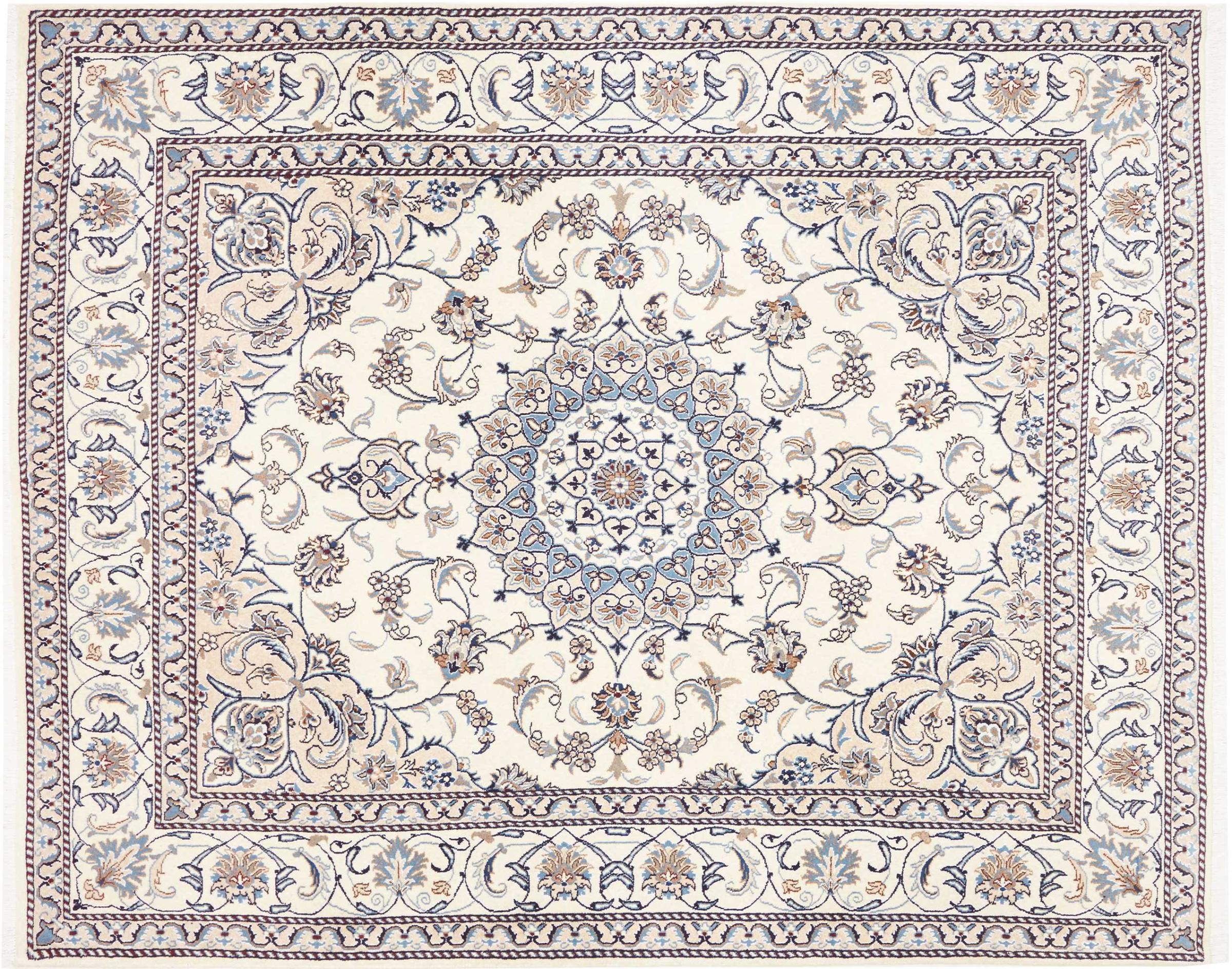 Tapijt ID: 300737001948991 Grootte: 247x193 cm Dikte: ap. 12 mm Knoopdichtheid: 160 000 - 200 000 / m² Verwerking: Handgeknoopte Pool: Wol met zijde Schering: Katoen Oorsprong: Perzië / Iran Leeftijd: Nieuw Gewicht: ap. 17 kg Op voorraad: Uniek - Nog maar 1 op voorraad