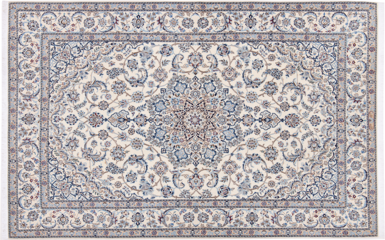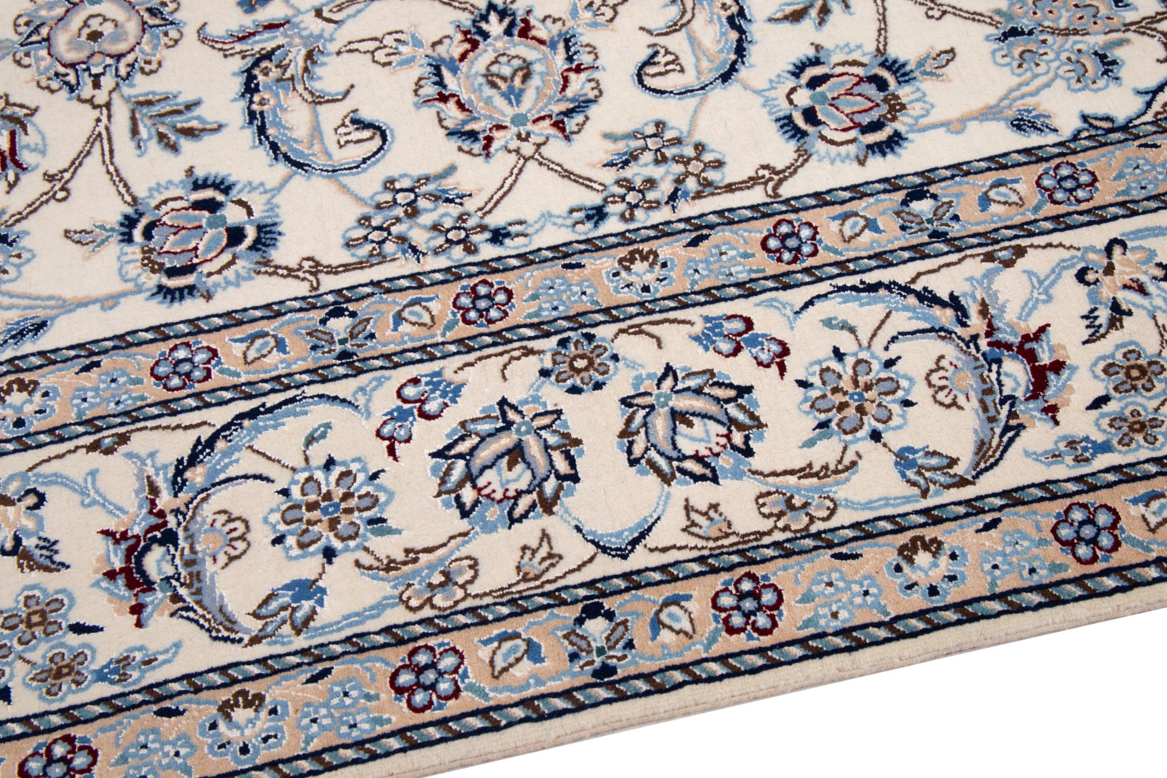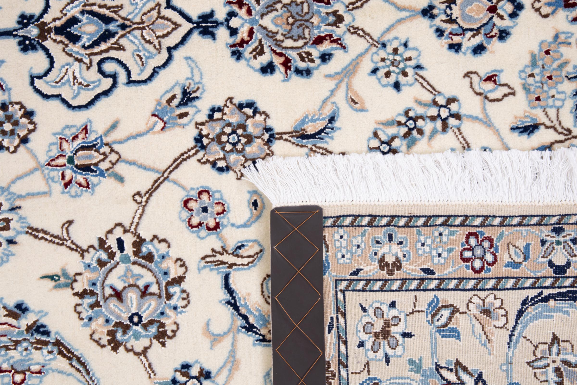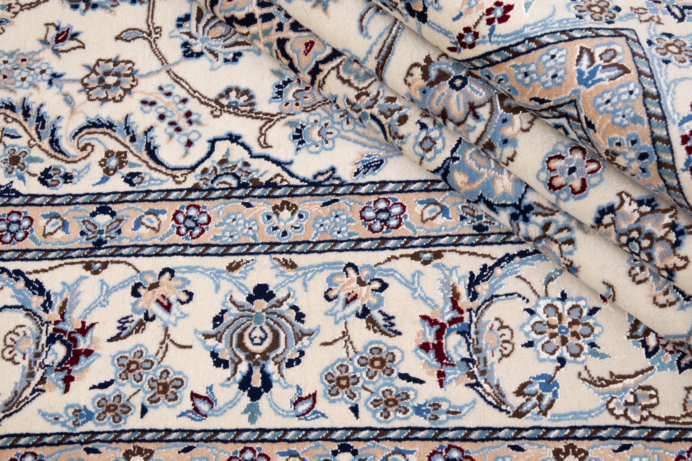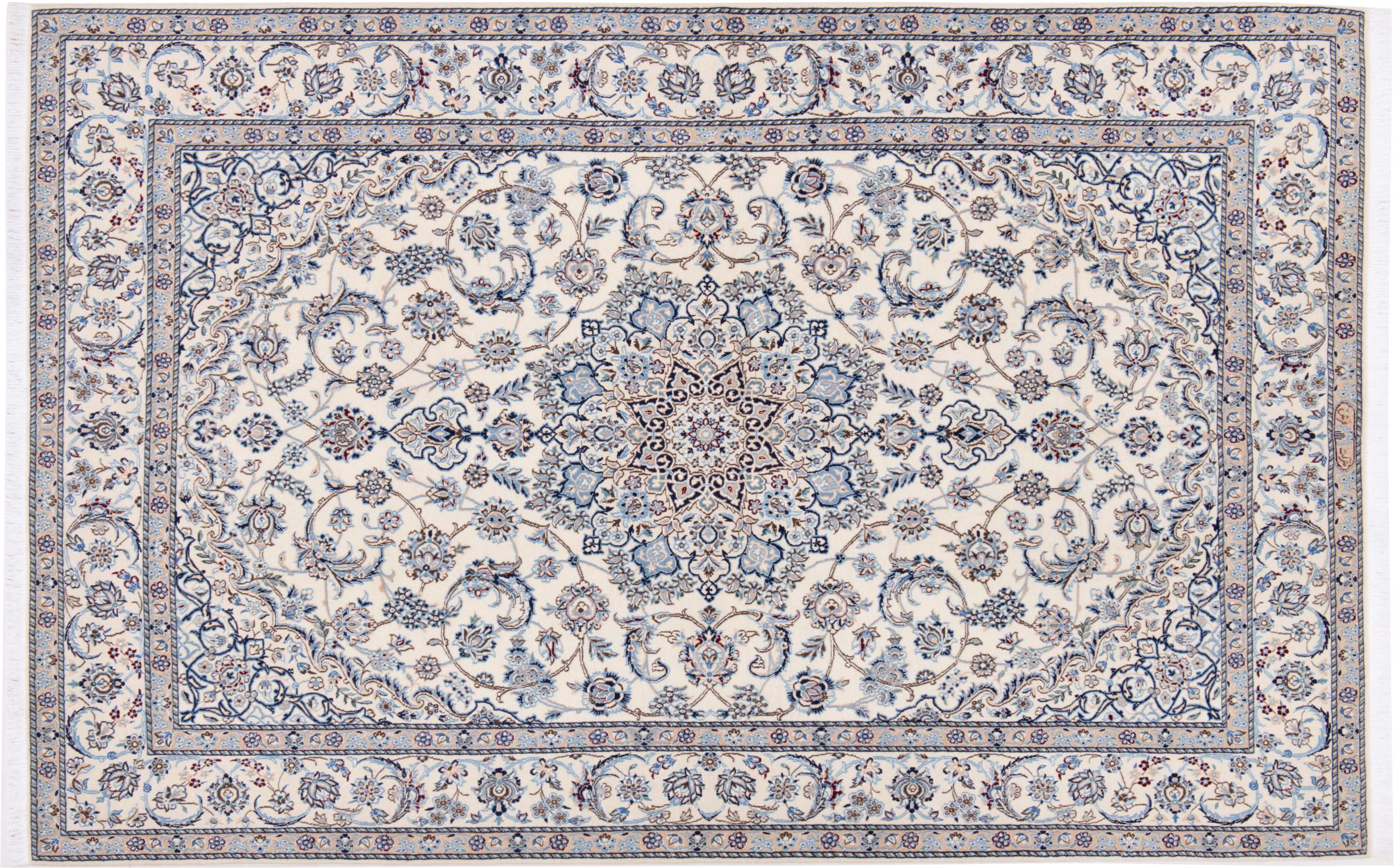 Dit Nain-tapijt heeft een beoordeling van 9La. De uitstekende kwaliteit en het prachtige oosterse ontwerp met zijn ronde patronen zullen elke koper bekoren. Dit Perzische tapijt is handgemaakt in de stad Nain, gelegen aan de westelijke rand van de Dasht-e-Kavir-woestijn, van hoogwaardige wol en natuurlijke zijde. 9La Nain zijn duidelijk dunner dan een 12La en laten al mooie details zien.