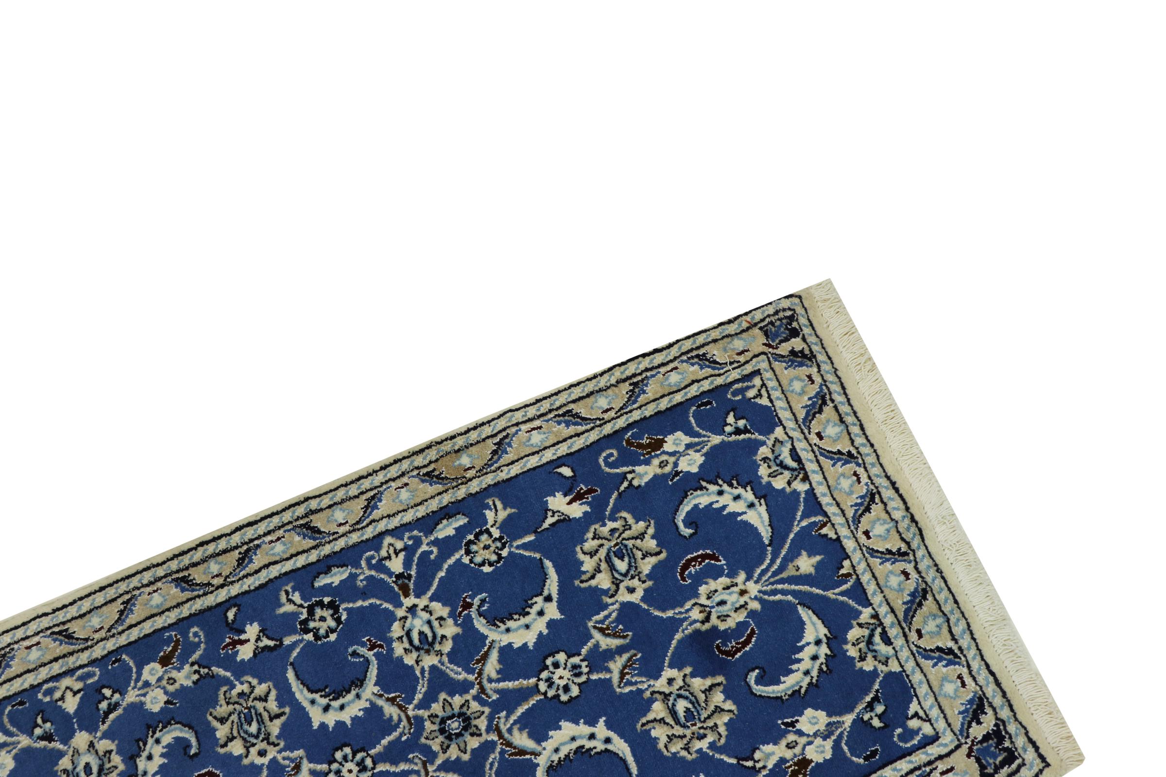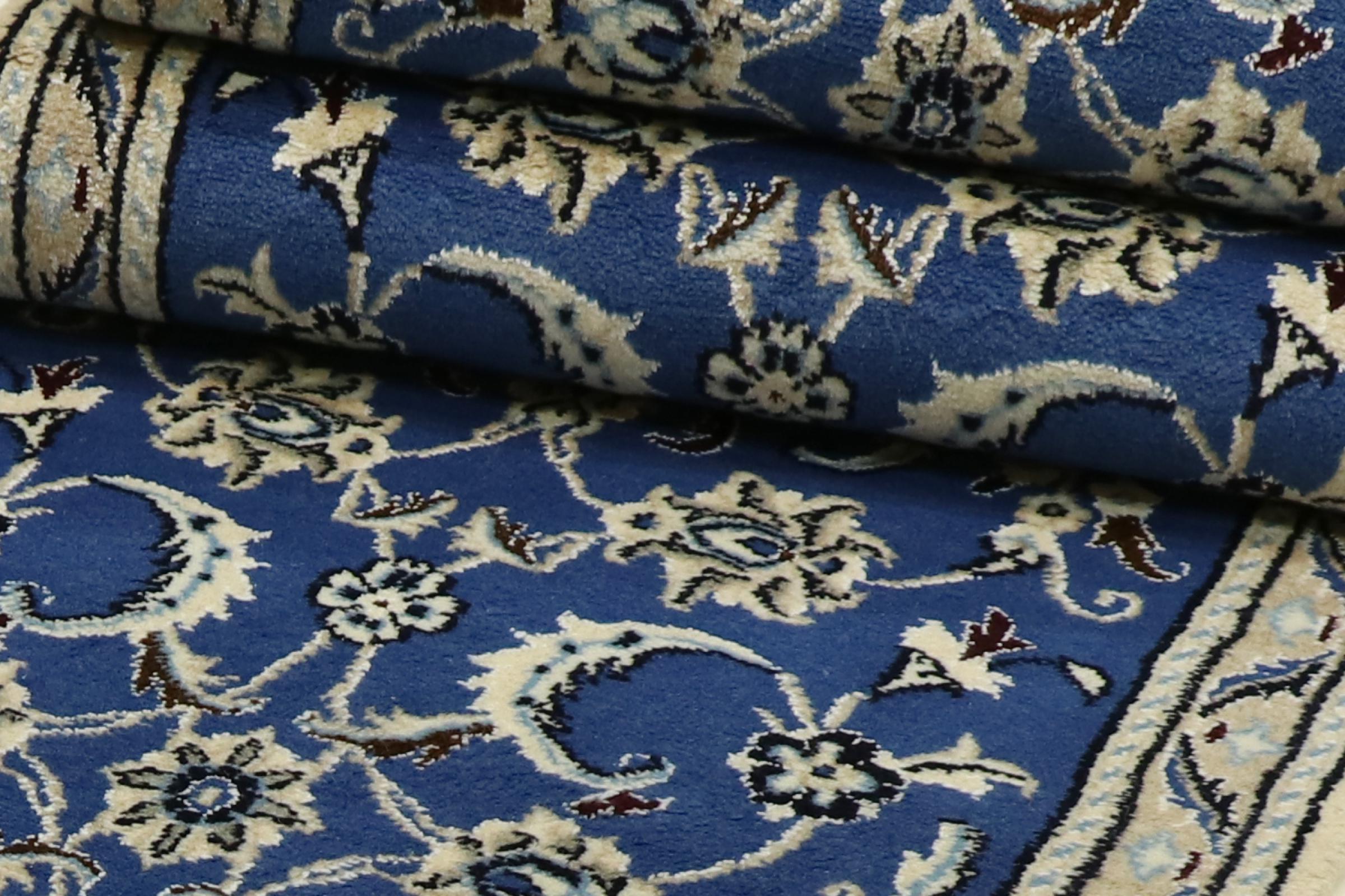 Dit Nain tapijt is geclassificeerd als 12La. Het heeft een elegante en verfijnde look met zijn typische Nain-kleuring. Dit Perzische tapijt werd met de hand geknoopt in de stad Nain, gelegen aan het westelijke uiteinde van de Dasht-e-Kavir woestijn, uit wol van hoge kwaliteit en natuurlijke zijde. Met zijn grootte van 12La is het niet zo fijn gedetailleerd met ornamenten als een Nain 9La of 6La.