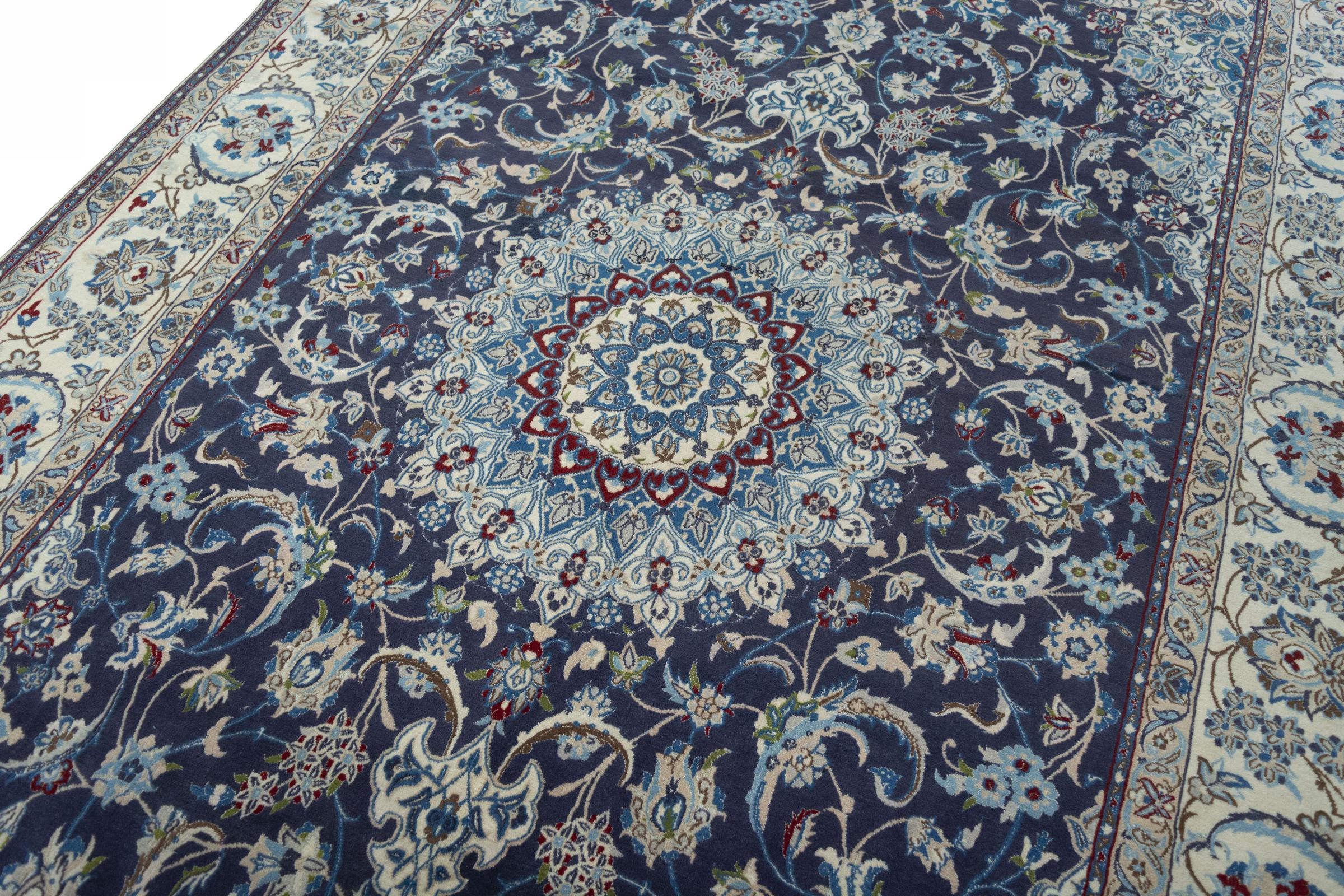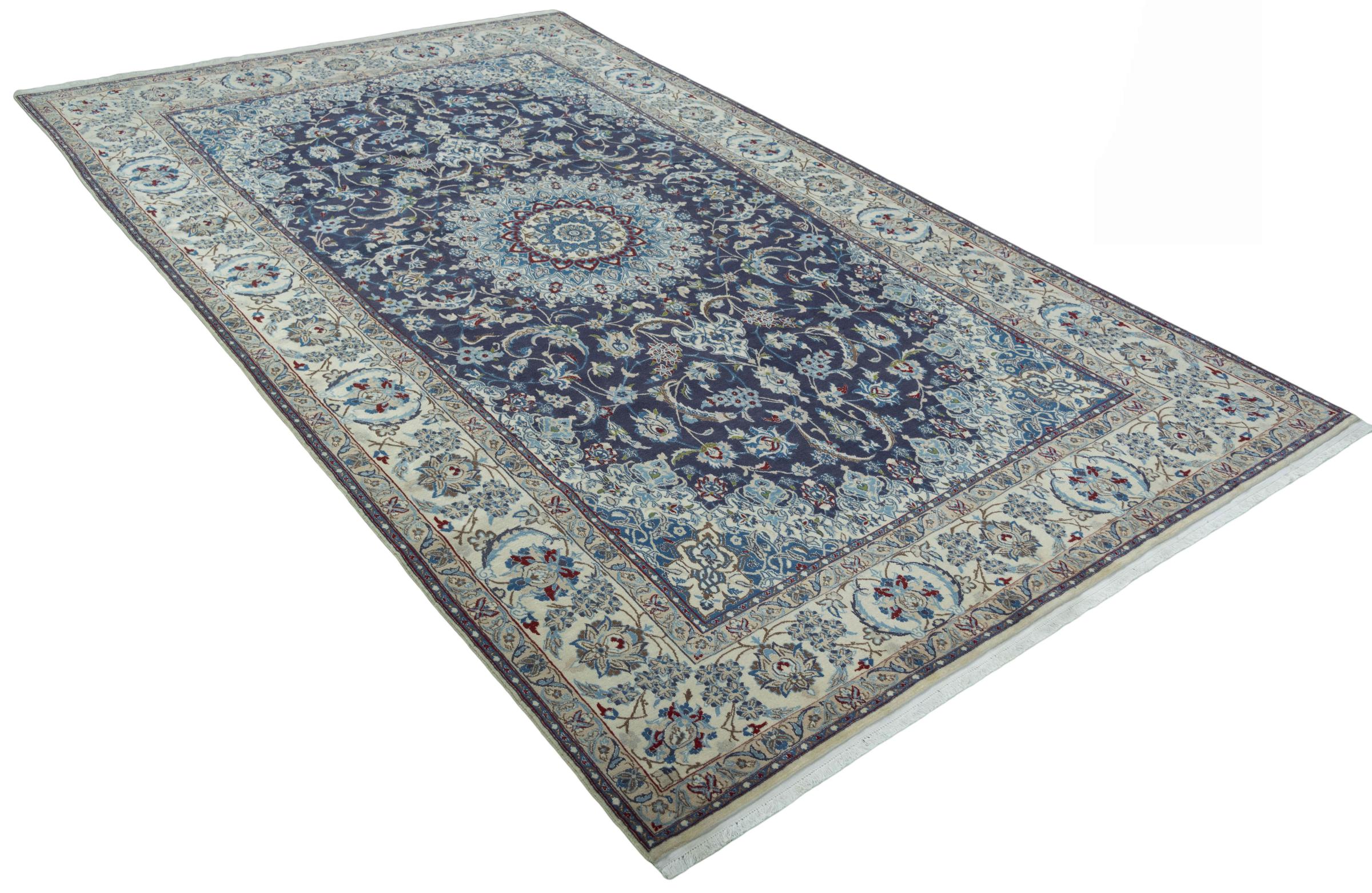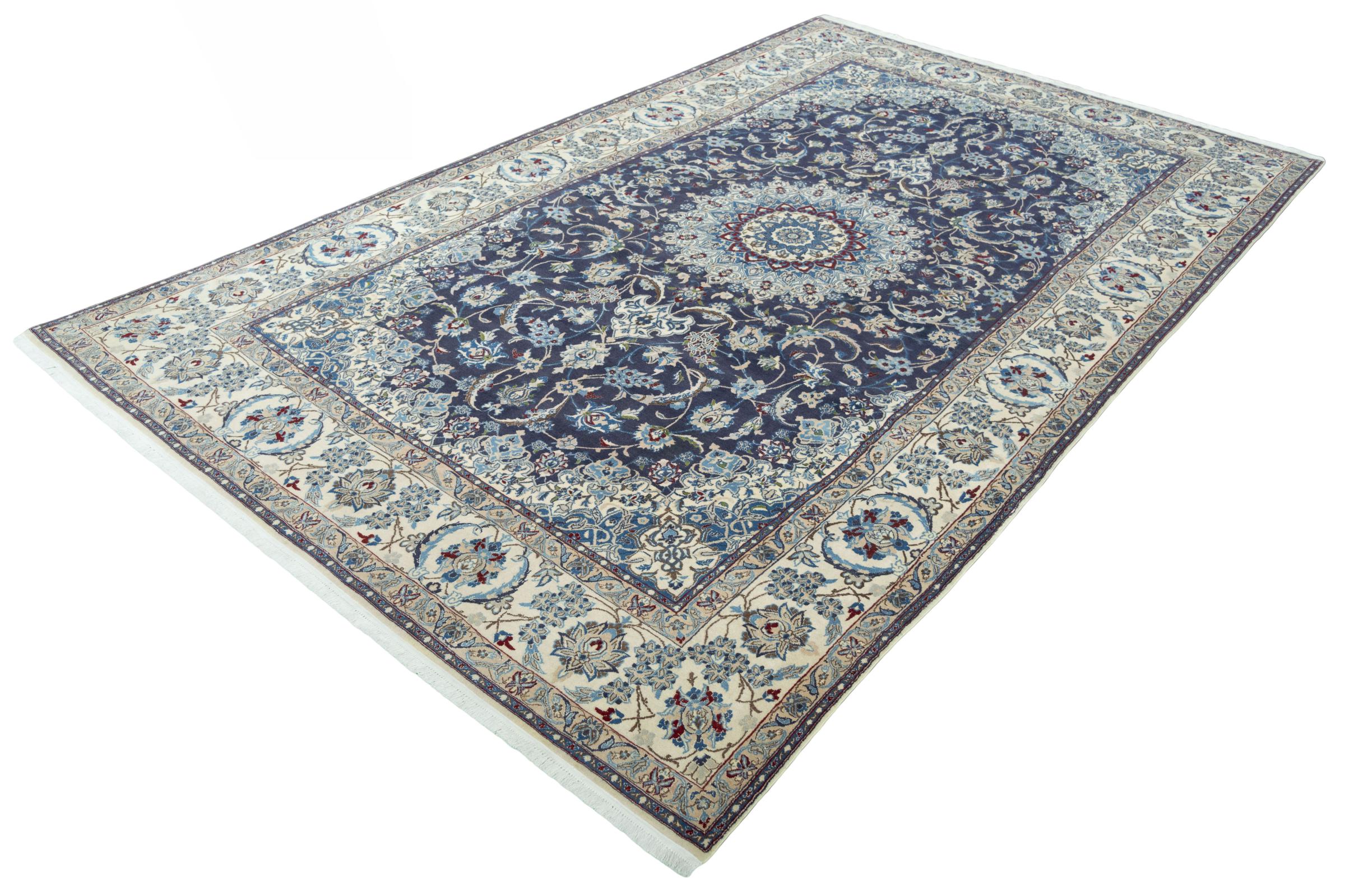 Dit Nain-tapijt heeft een beoordeling van 9La. De uitstekende kwaliteit en het prachtige oosterse ontwerp met zijn ronde patronen zullen elke koper bekoren. Dit Perzische tapijt is handgemaakt in de stad Nain, gelegen aan de westelijke rand van de Dasht-e-Kavir-woestijn, van hoogwaardige wol en natuurlijke zijde. 9La Nain zijn duidelijk dunner dan een 12La en laten al mooie details zien.