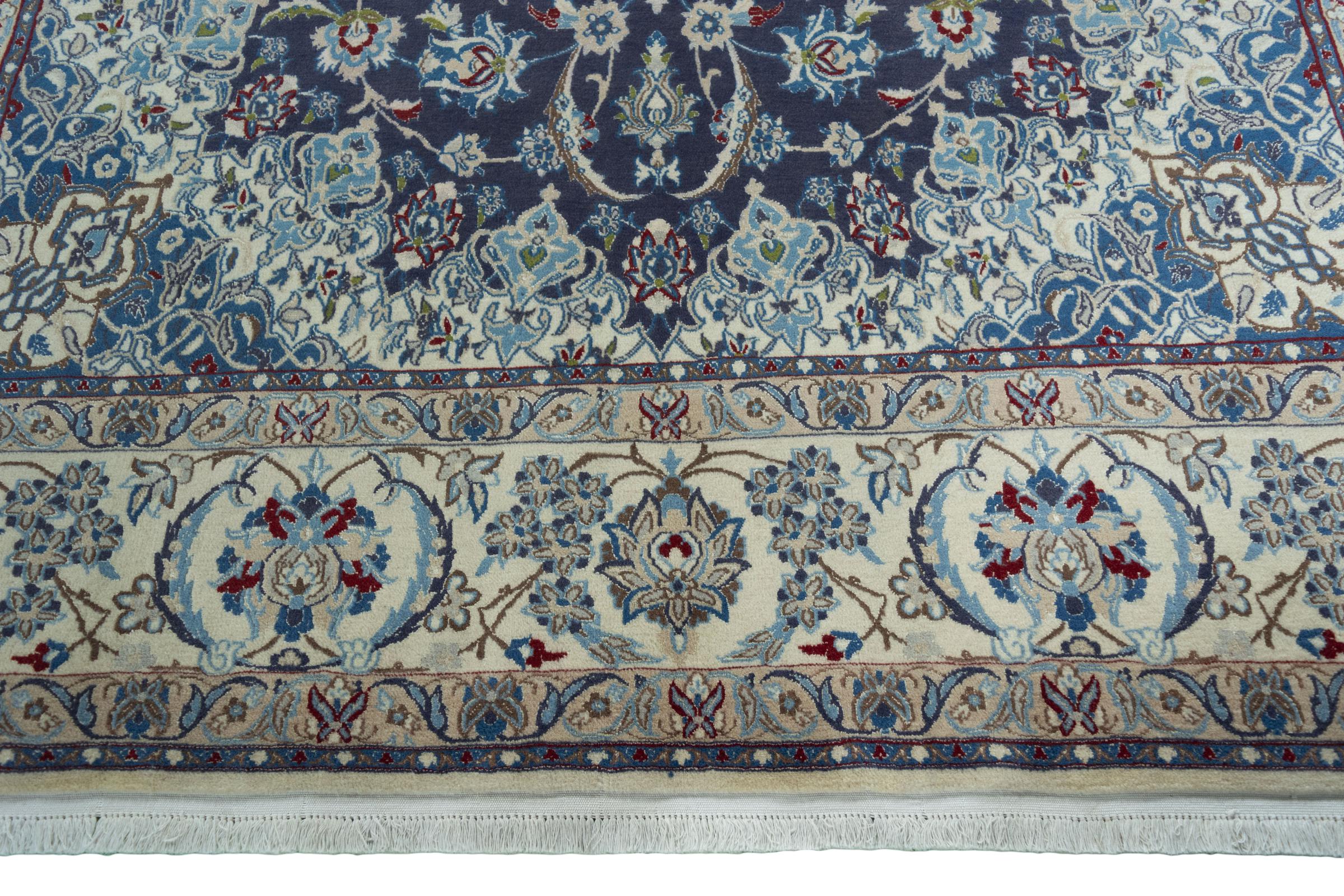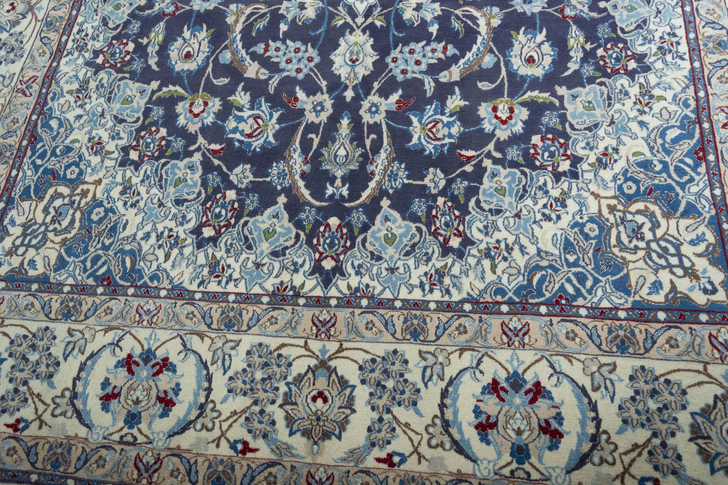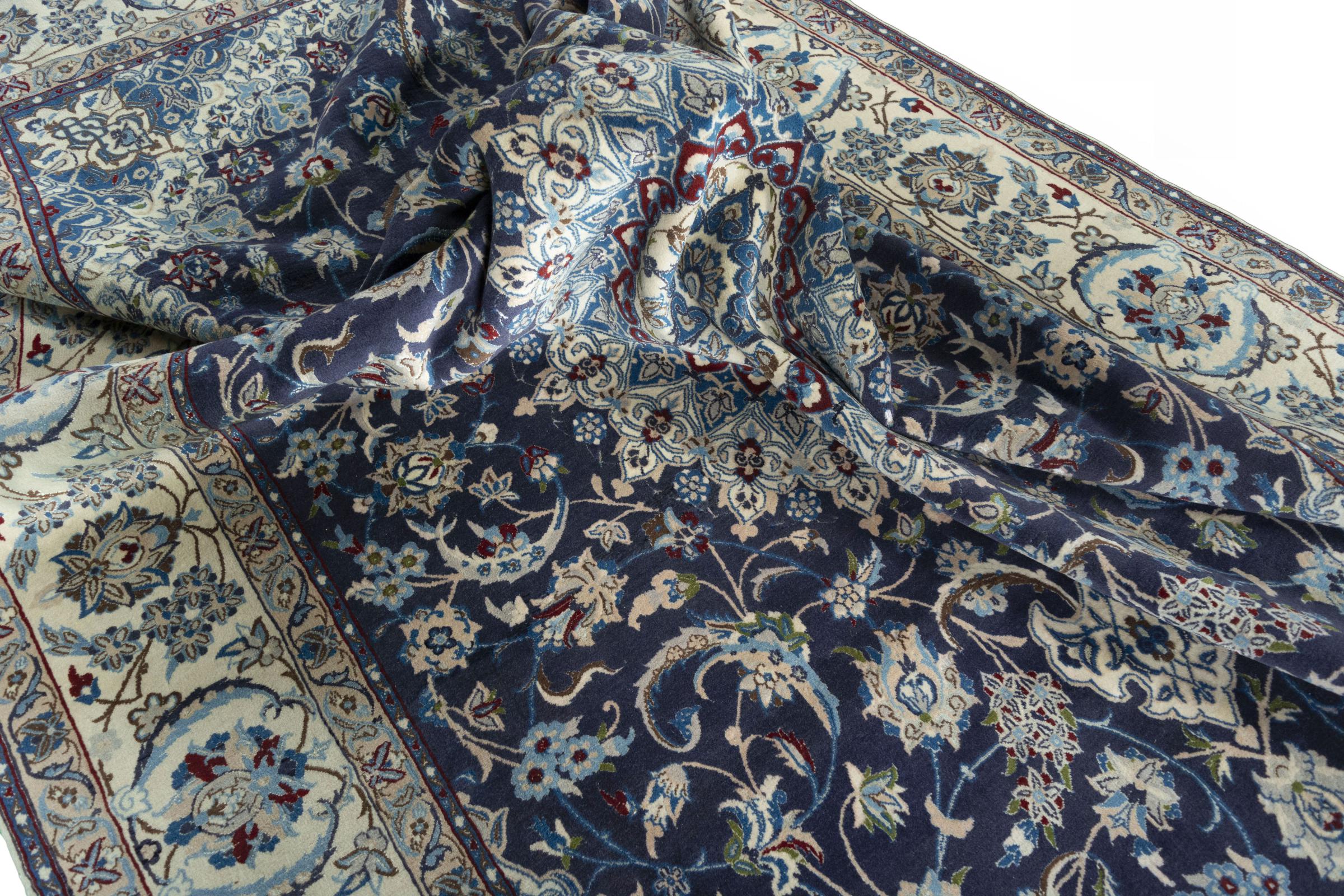 Dit Nain-tapijt heeft een beoordeling van 9La. De uitstekende kwaliteit en het prachtige oosterse ontwerp met zijn ronde patronen zullen elke koper bekoren. Dit Perzische tapijt is handgemaakt in de stad Nain, gelegen aan de westelijke rand van de Dasht-e-Kavir-woestijn, van hoogwaardige wol en natuurlijke zijde. 9La Nain zijn duidelijk dunner dan een 12La en laten al mooie details zien.