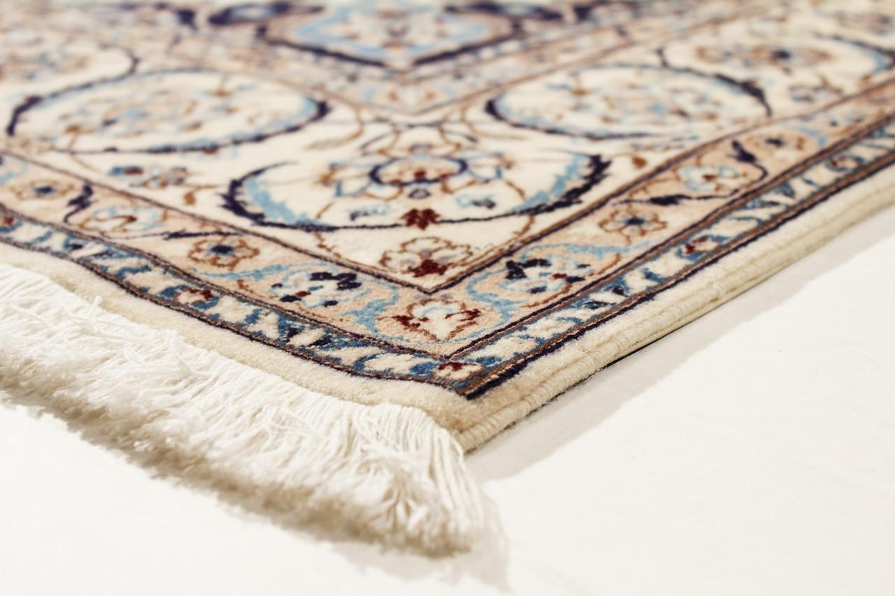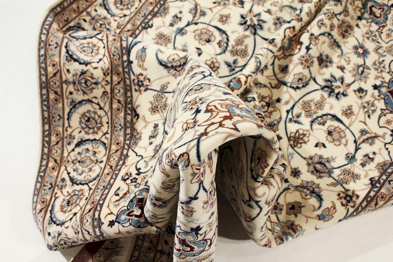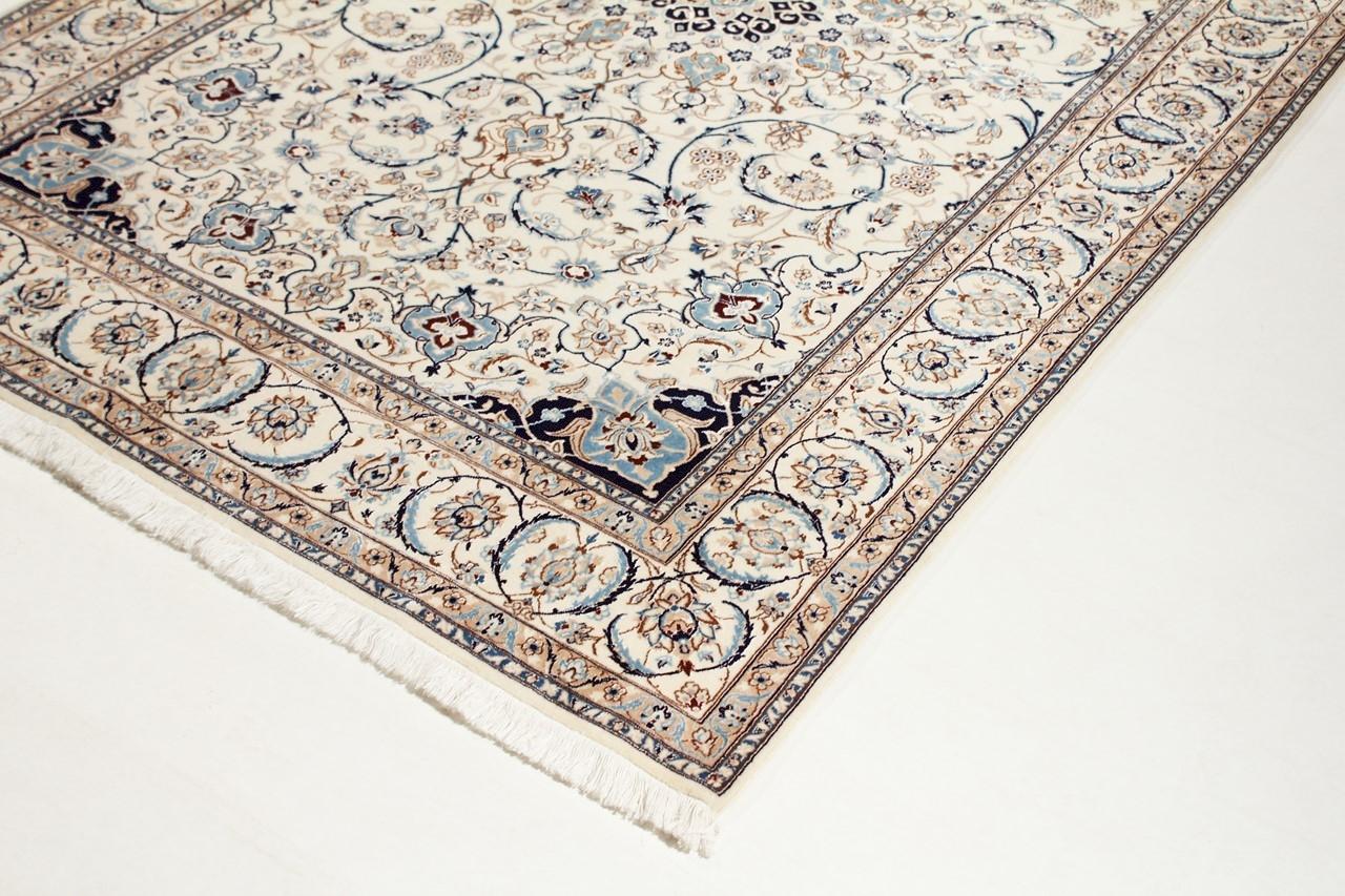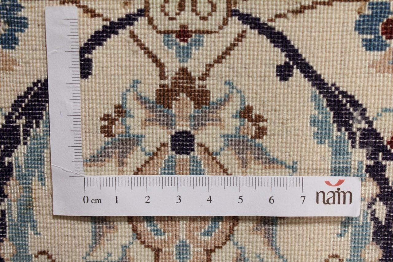 Dit Nain tapijt combineert kwaliteit, traditie en een onmiskenbaar design. Het werd met de hand geknoopt in het gelijknamige woestijnstadje Nain, van hoogwaardige kurkwol en natuurlijke zijde. Liefhebbers van waardevolle tapijten uit Iran zullen dit Perzische tapijt waarderen. Met Nain tapijten van de classificatie 6La en 4La heb je een echt kunstwerk met een ongelooflijk detailniveau waarin je letterlijk kunt verdwalen. Nain 4La-tapijten zijn tegenwoordig moeilijk te vinden omdat ze uiterst complex zijn om te produceren.