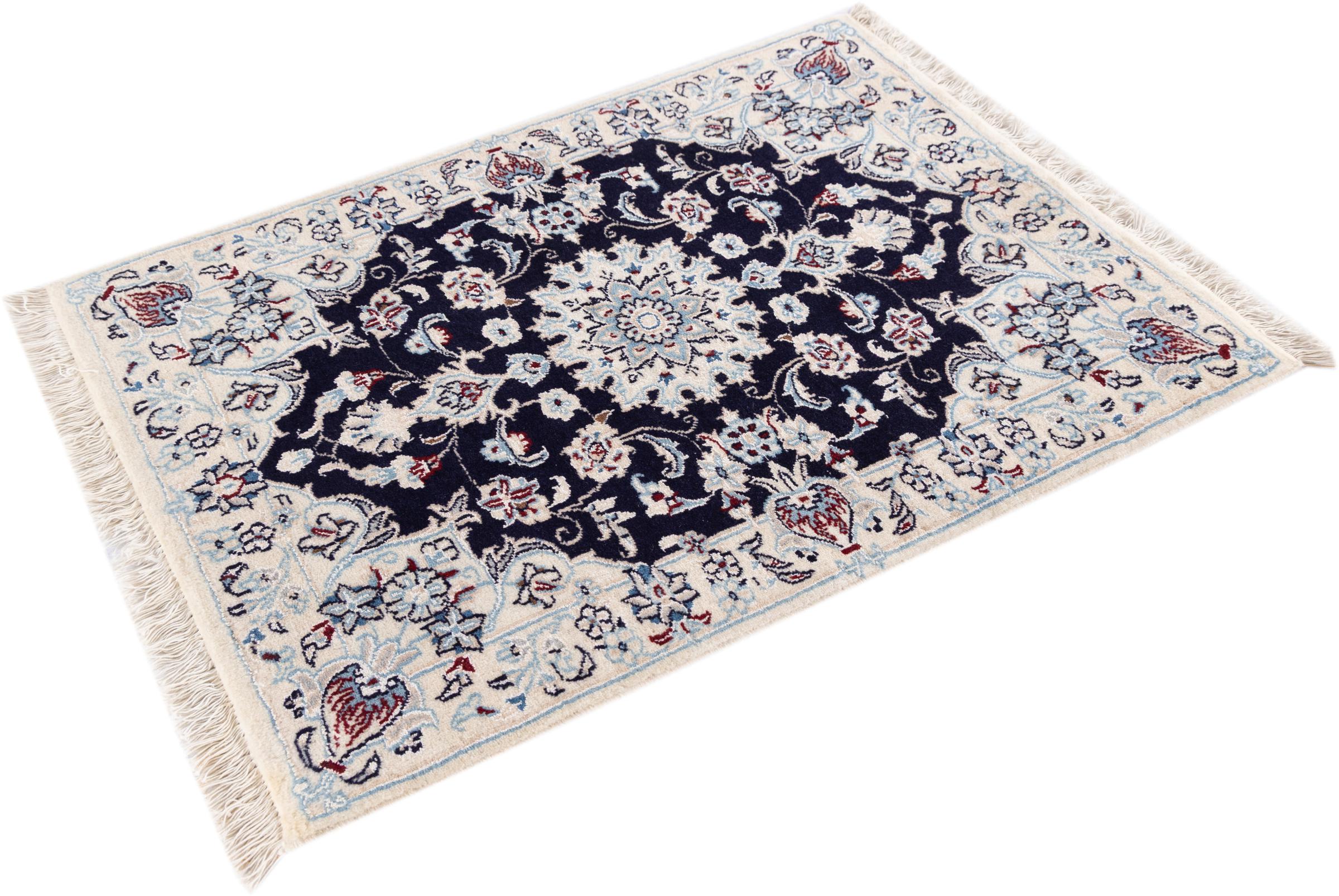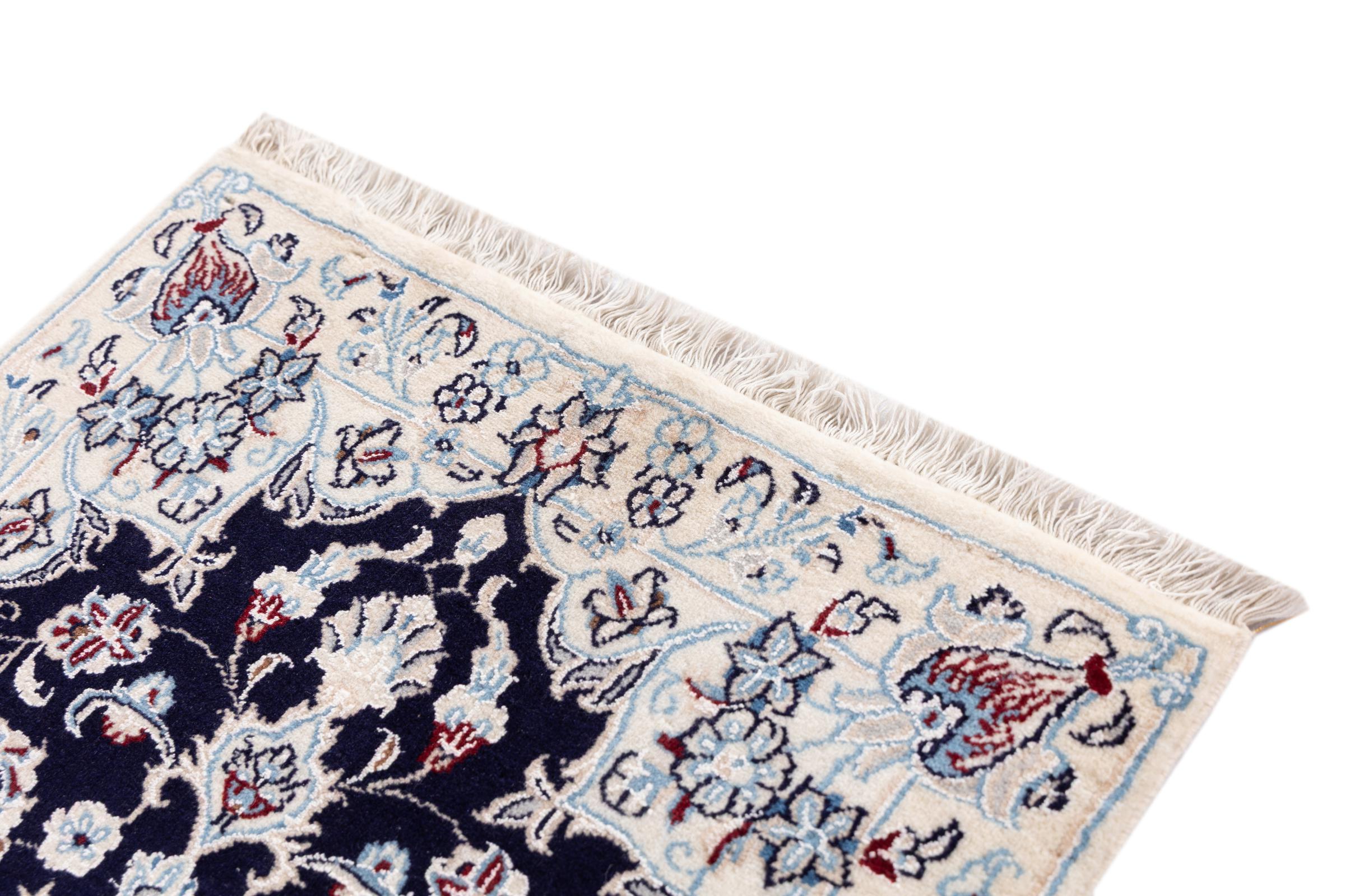 Dit Nain-tapijt heeft een beoordeling van 9La. De uitstekende kwaliteit en het prachtige oosterse ontwerp met zijn ronde patronen zullen elke koper bekoren. Dit Perzische tapijt is handgemaakt in de stad Nain, gelegen aan de westelijke rand van de Dasht-e-Kavir-woestijn, van hoogwaardige wol en natuurlijke zijde. 9La Nain zijn duidelijk dunner dan een 12La en laten al mooie details zien.