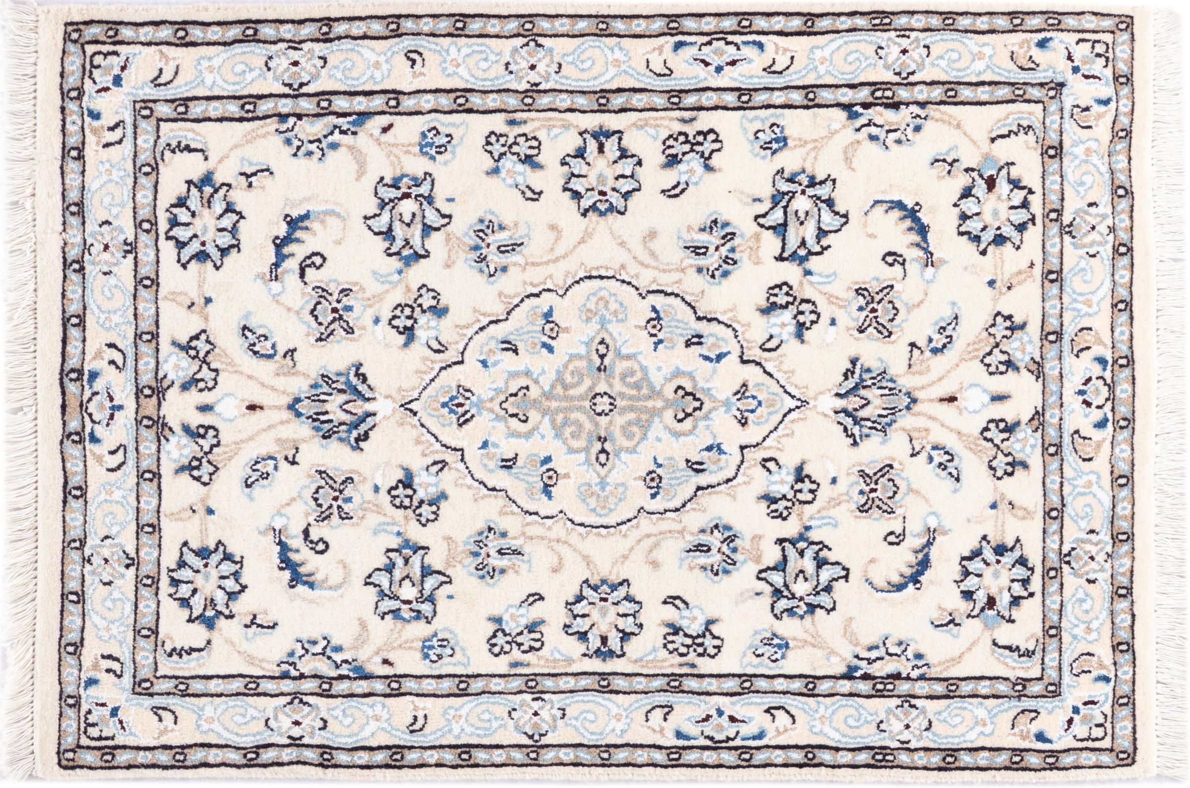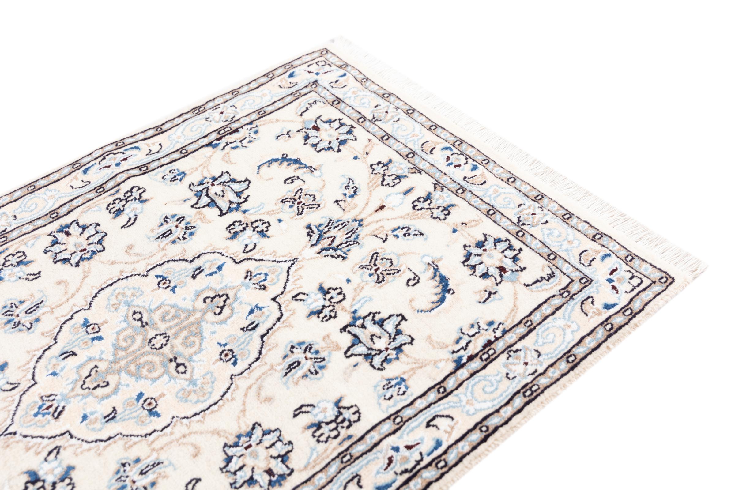 Dit Nain-tapijt heeft een beoordeling van 9La. De uitstekende kwaliteit en het prachtige oosterse ontwerp met zijn ronde patronen zullen elke koper bekoren. Dit Perzische tapijt is handgemaakt in de stad Nain, gelegen aan de westelijke rand van de Dasht-e-Kavir-woestijn, van hoogwaardige wol en natuurlijke zijde. 9La Nain zijn duidelijk dunner dan een 12La en laten al mooie details zien.